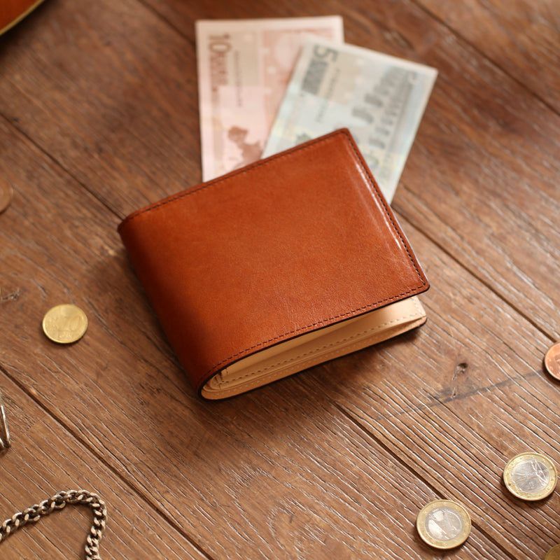 自分だけの表情を楽しめる「マットーネ&ヌメ革」シリーズ。2つとして同じものが存在しない天然皮革の魅力が凝縮されている。イタリア産最高級のバケッタレザーは、天然の風合いをダイレクトに持ち主に伝えてくれる革。アクティブに軽やかに動くに、ピッタリのレザーです。どんな場所でも、どんな服装でも新しい自分を見つけられます。マルチパースはクラシカルタイプの2つ折り財布です。紳士の定番として、お札、小銭、カードを収納できます。定番だけに、使い勝手は良く、とてもバランスの良いデザイン・機能性です。| 外寸 | 縦9.3cm×横11cm×厚さ3.5cm |