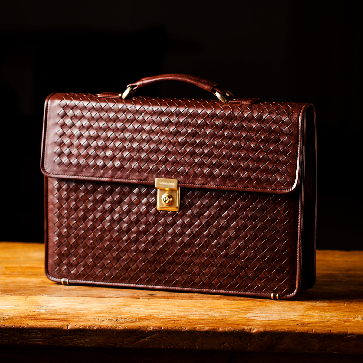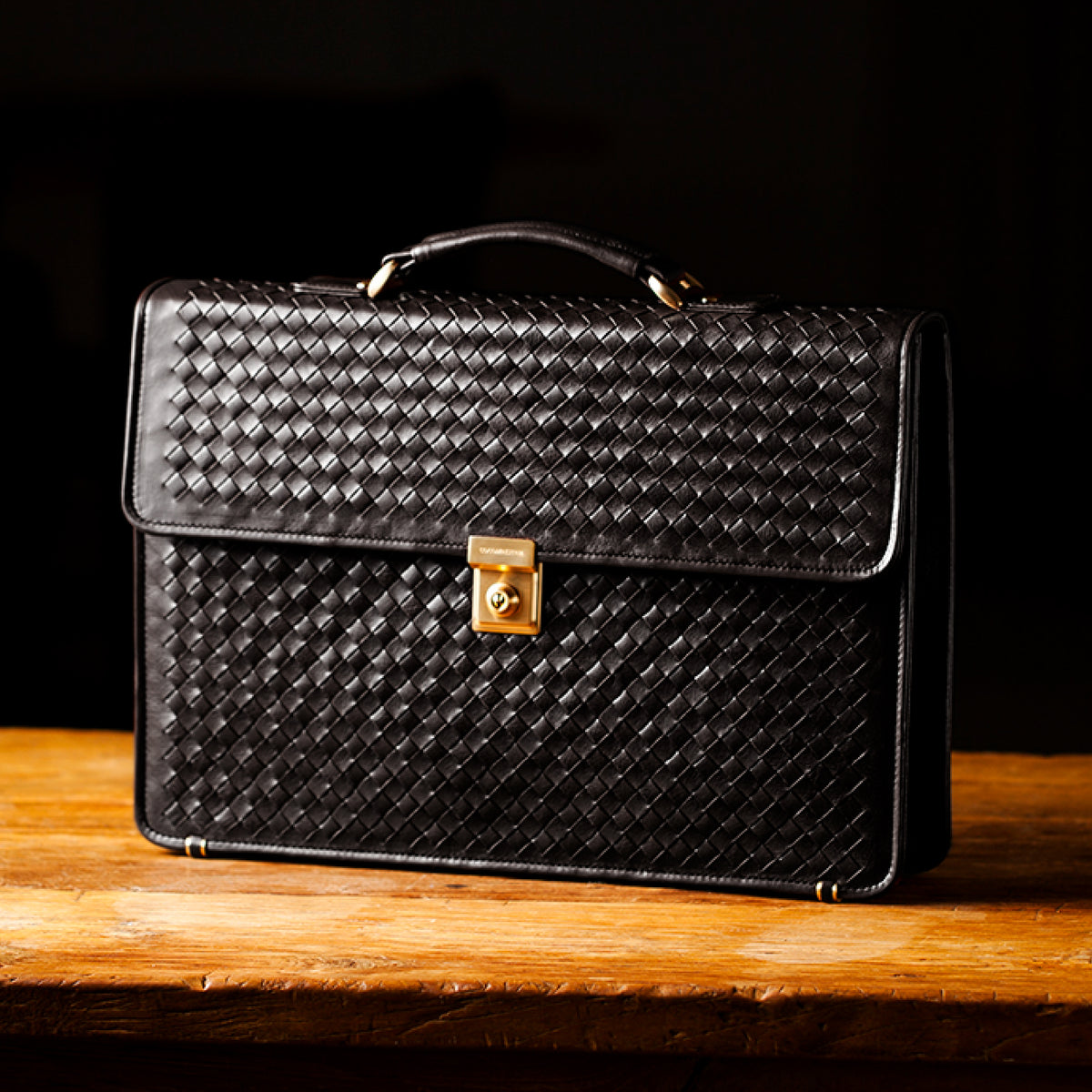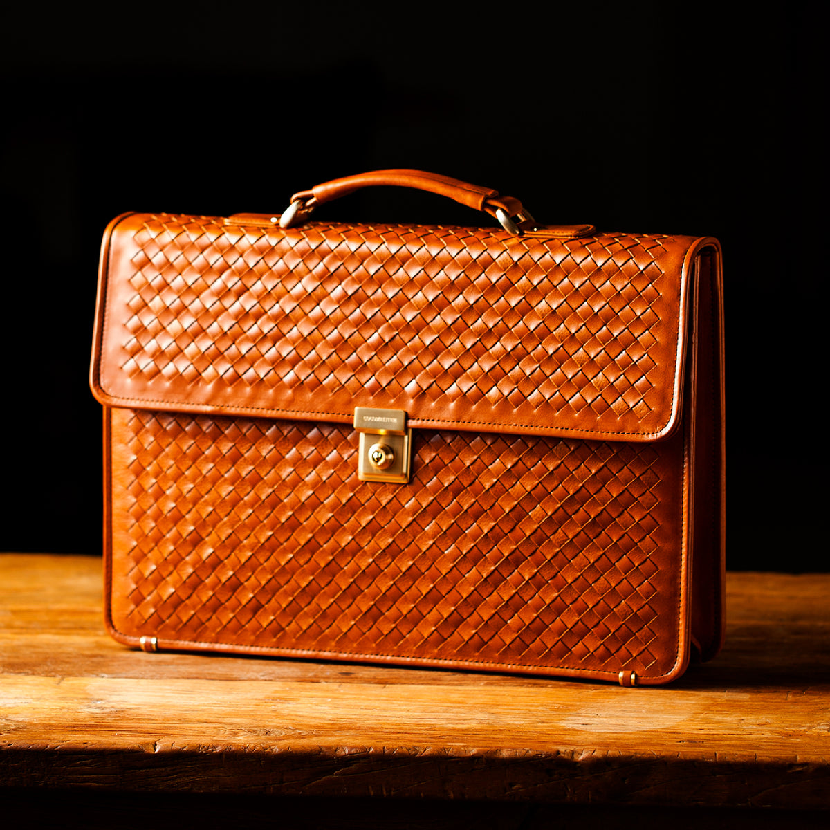 革好きを魅了するイタリア皮革であるマットーネを使用したビジネスバッグ。編み込まれたイタリアンレザーを、昔ながらのクラシカルなデザインで楽しむ。硬派でありながら、イタリアならではの陽気さも感じさせる鞄は、使い込むことで経年変化を楽しめる。日々使用することで、味を深め艶が増していく。| 外寸 | 縦27.5cm×横40.5cm×底厚み8.5cm (フリーポケット)縦18.5cm×横38cm |