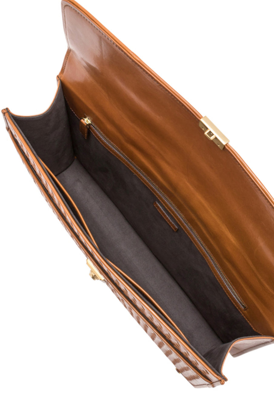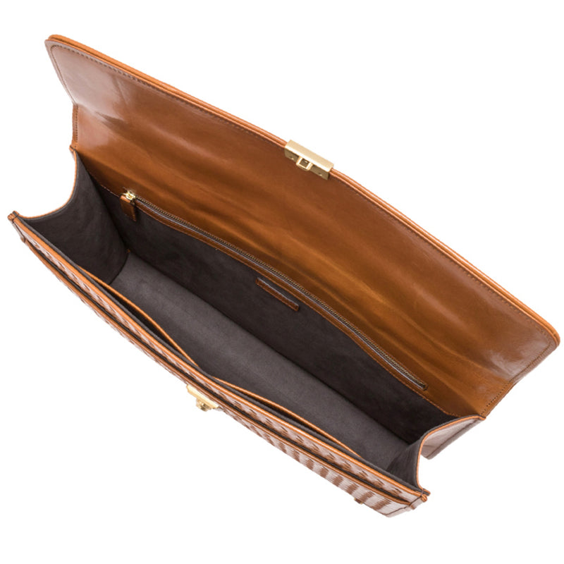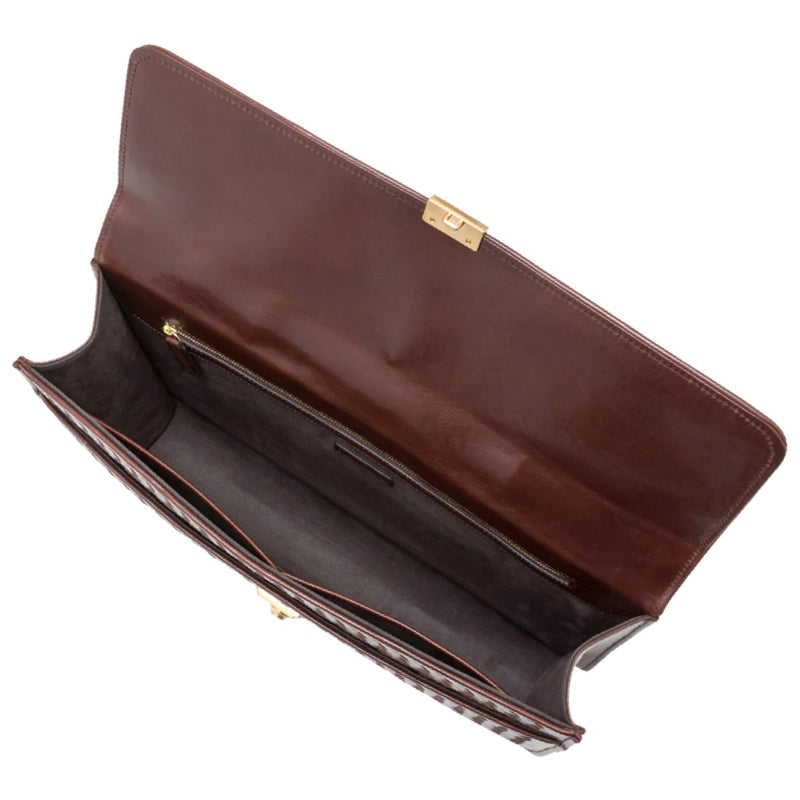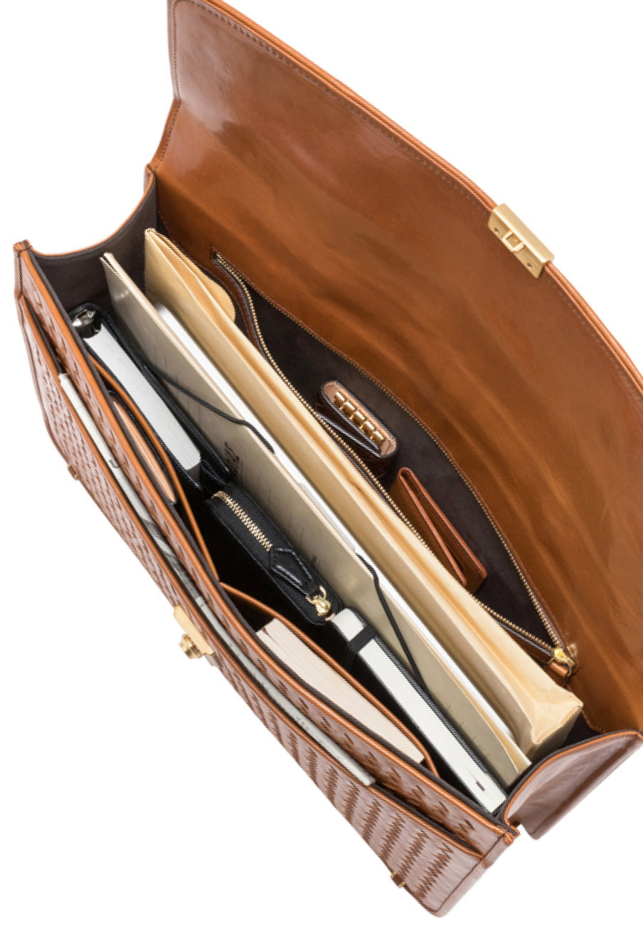 革好きを魅了するイタリア皮革であるマットーネを使用したビジネスバッグ。編み込まれたイタリアンレザーを、昔ながらのクラシカルなデザインで楽しむ。硬派でありながら、イタリアならではの陽気さも感じさせる鞄は、使い込むことで経年変化を楽しめる。日々使用することで、味を深め艶が増していく。| 外寸 | 縦27.5cm×横40.5cm×底厚み8.5cm (フリーポケット)縦18.5cm×横38cm |
