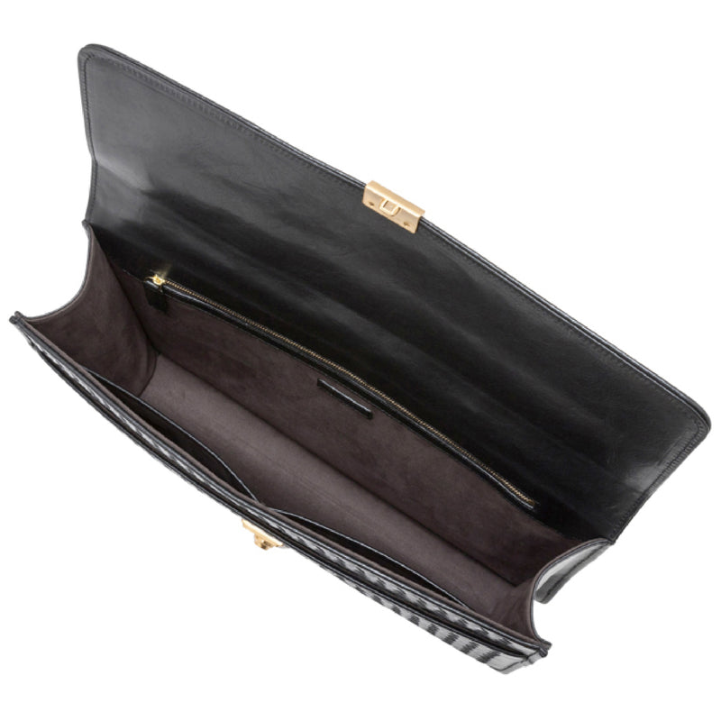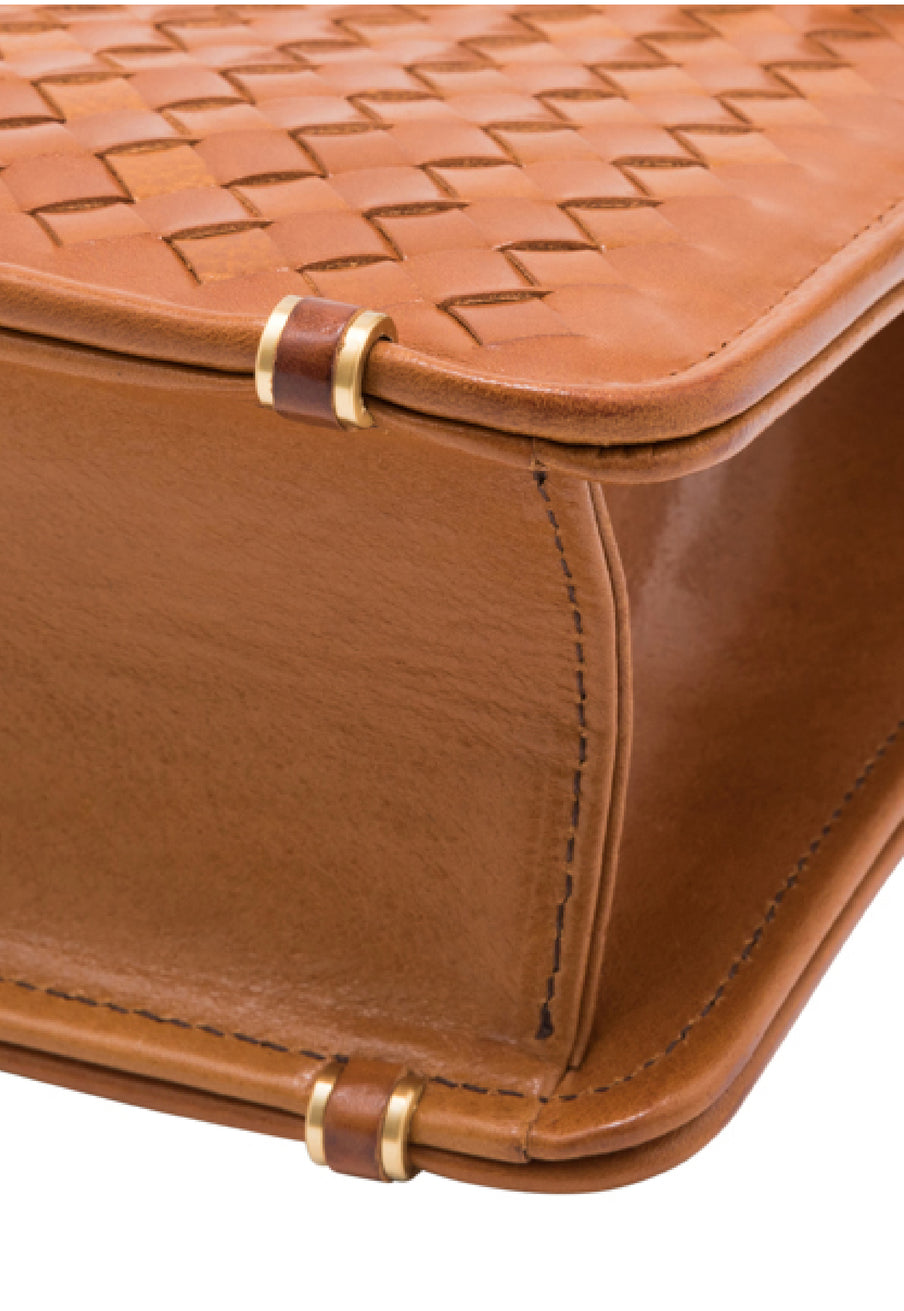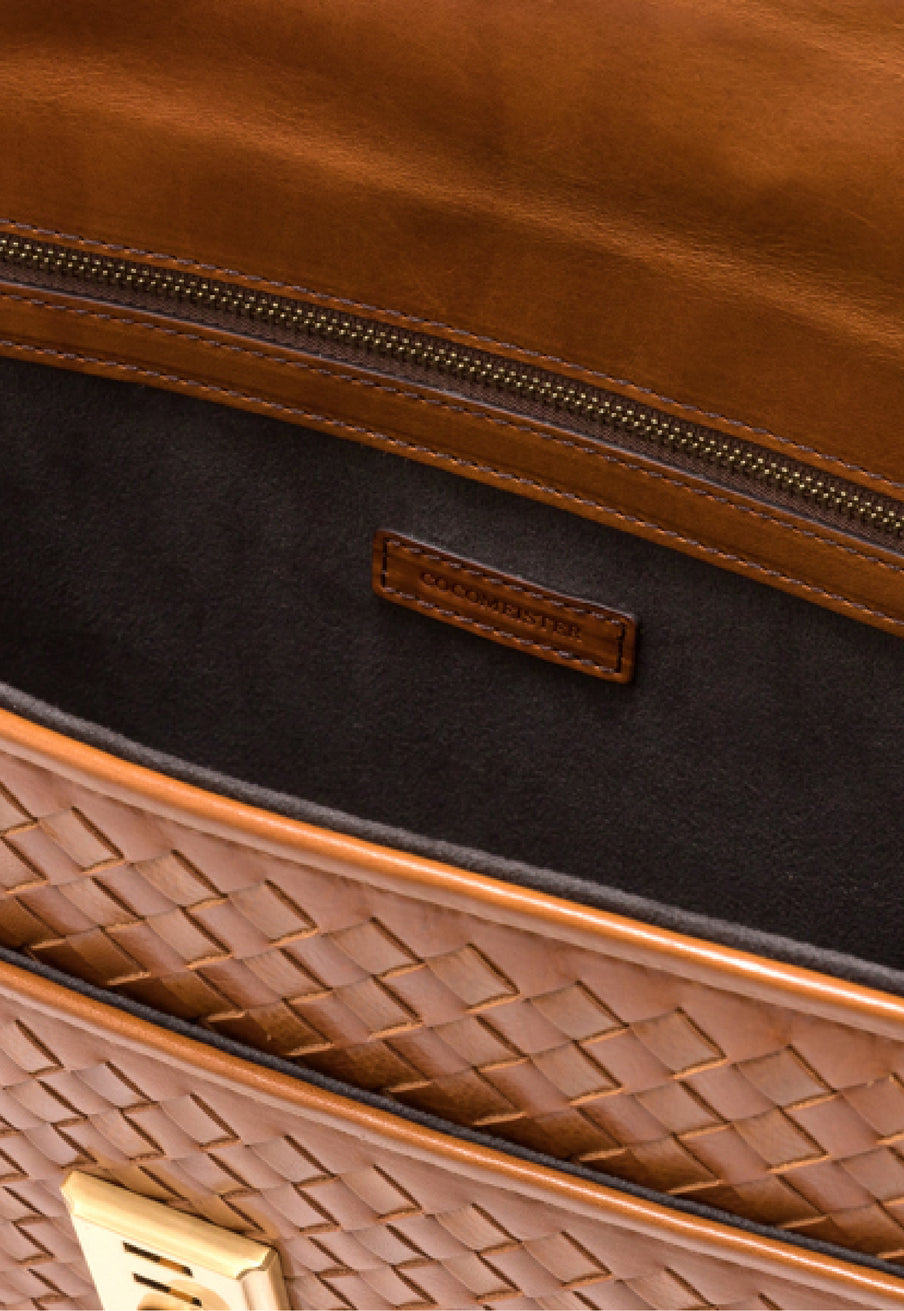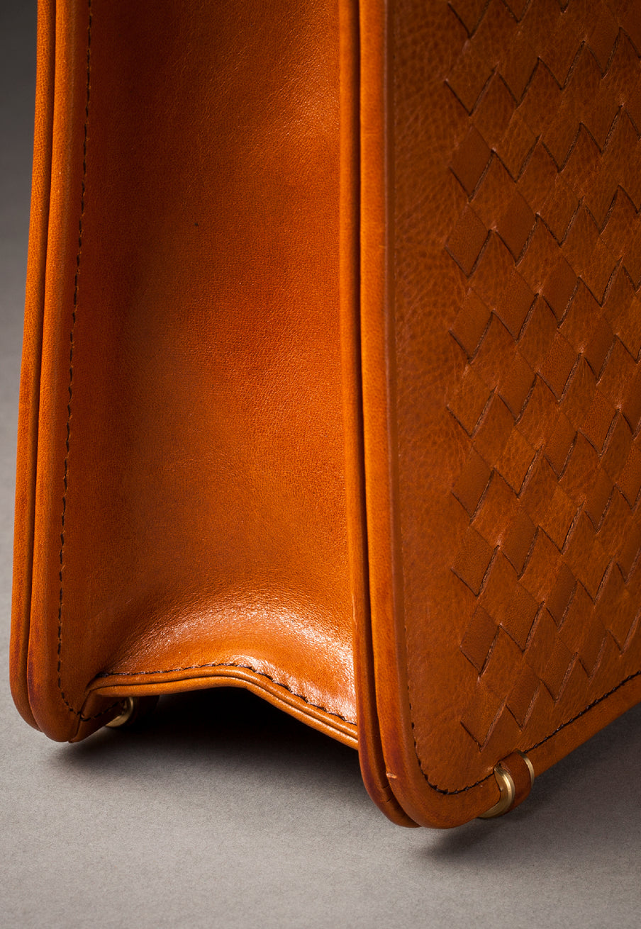 ボディ部分はイタリアンレザーを編み込んだデザイン、日本の熟練職人により丁寧に編み込まれている。