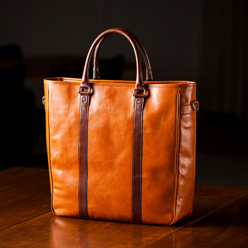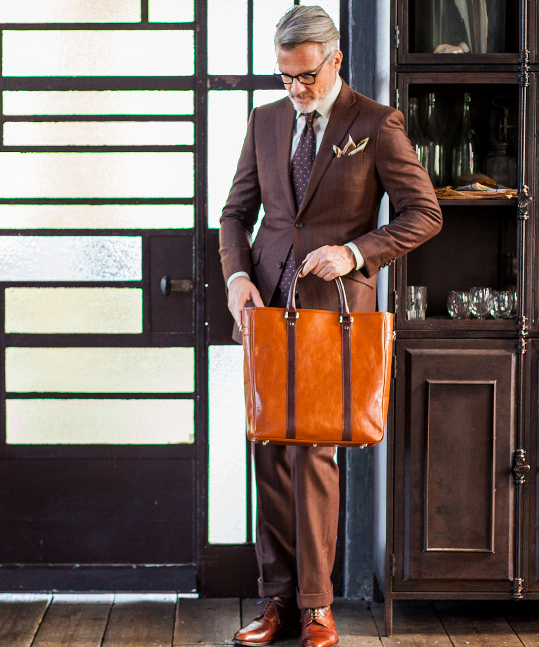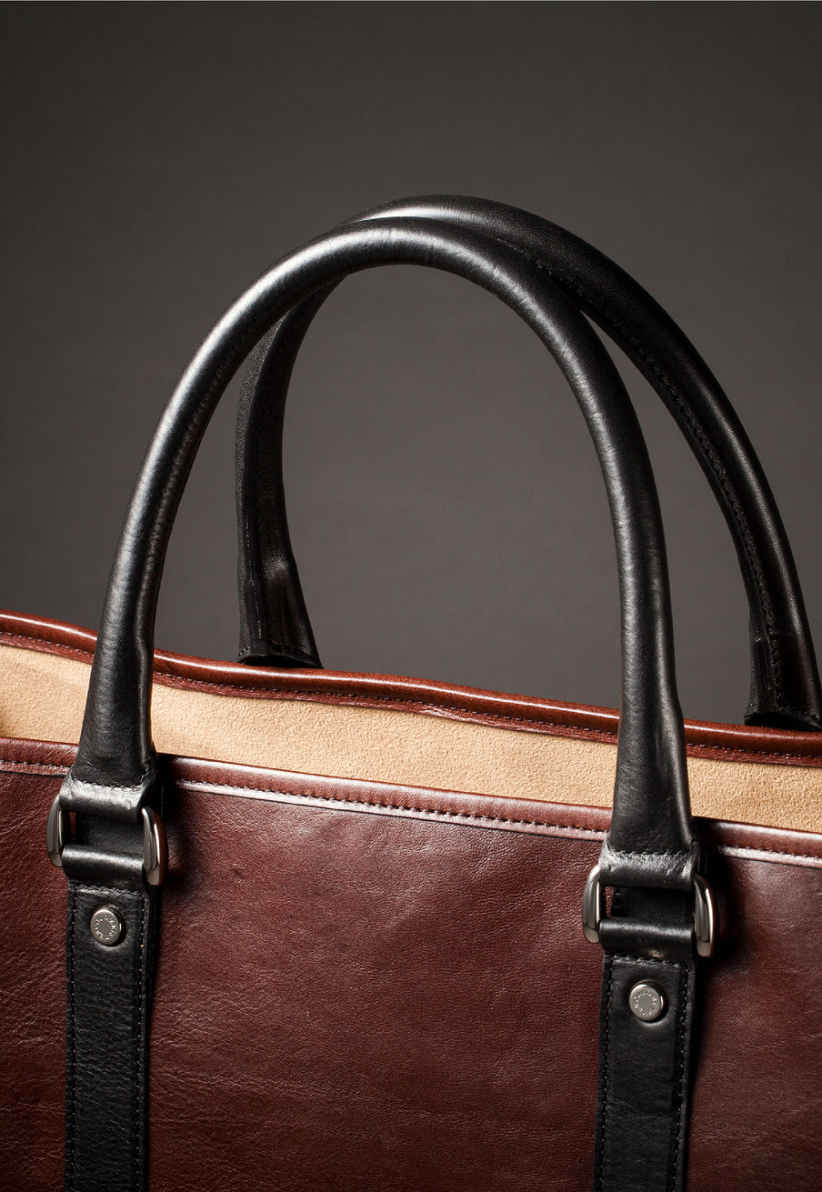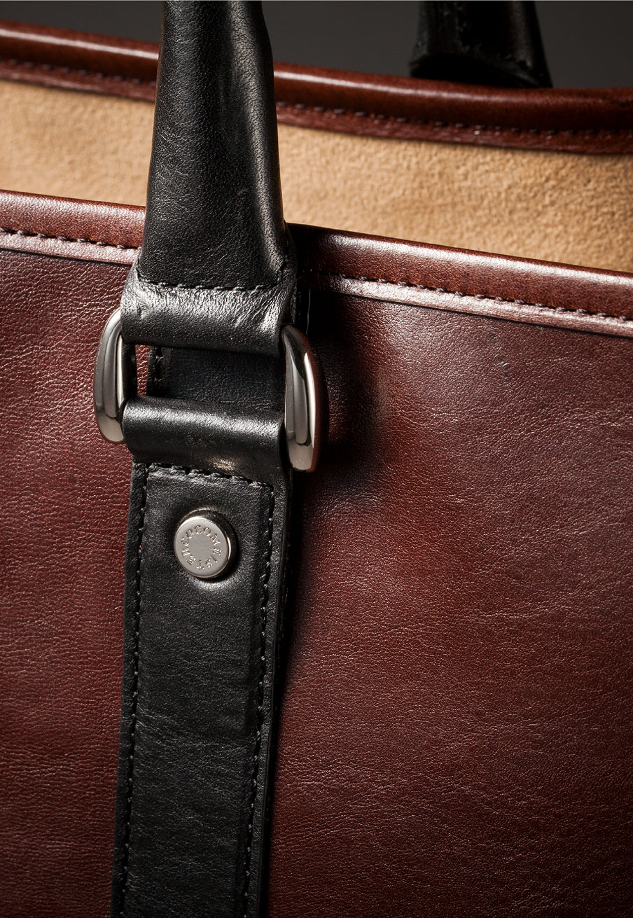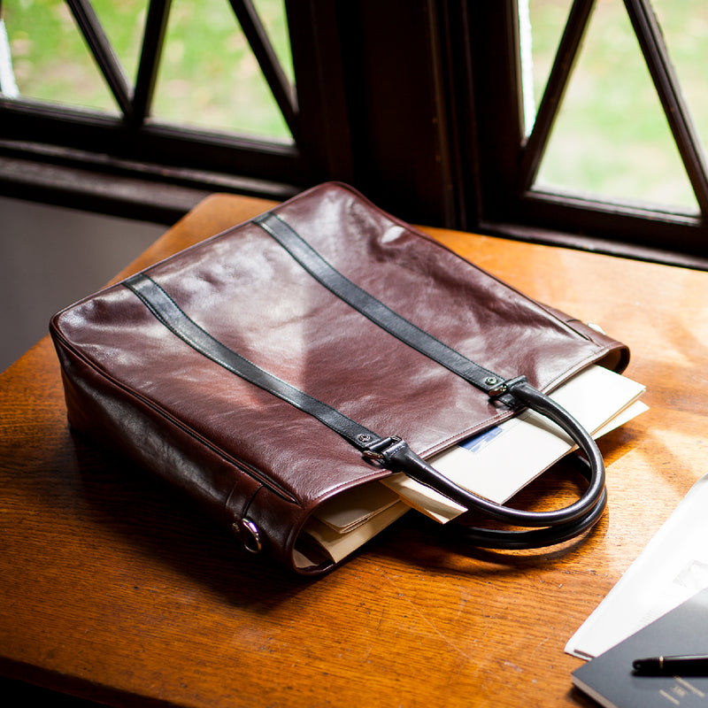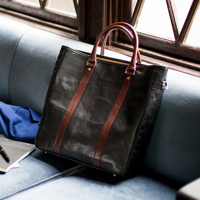本体と持ち手の2色のコントラストがこのビジネストートのお洒落ポイント。経年変化しても格好良いコントラストで。