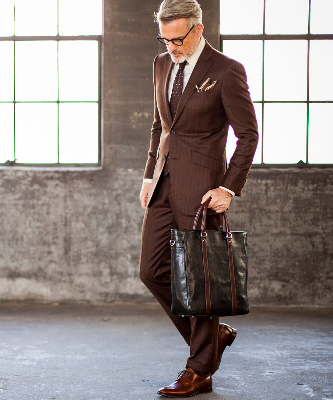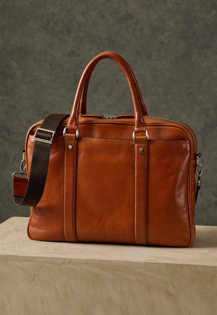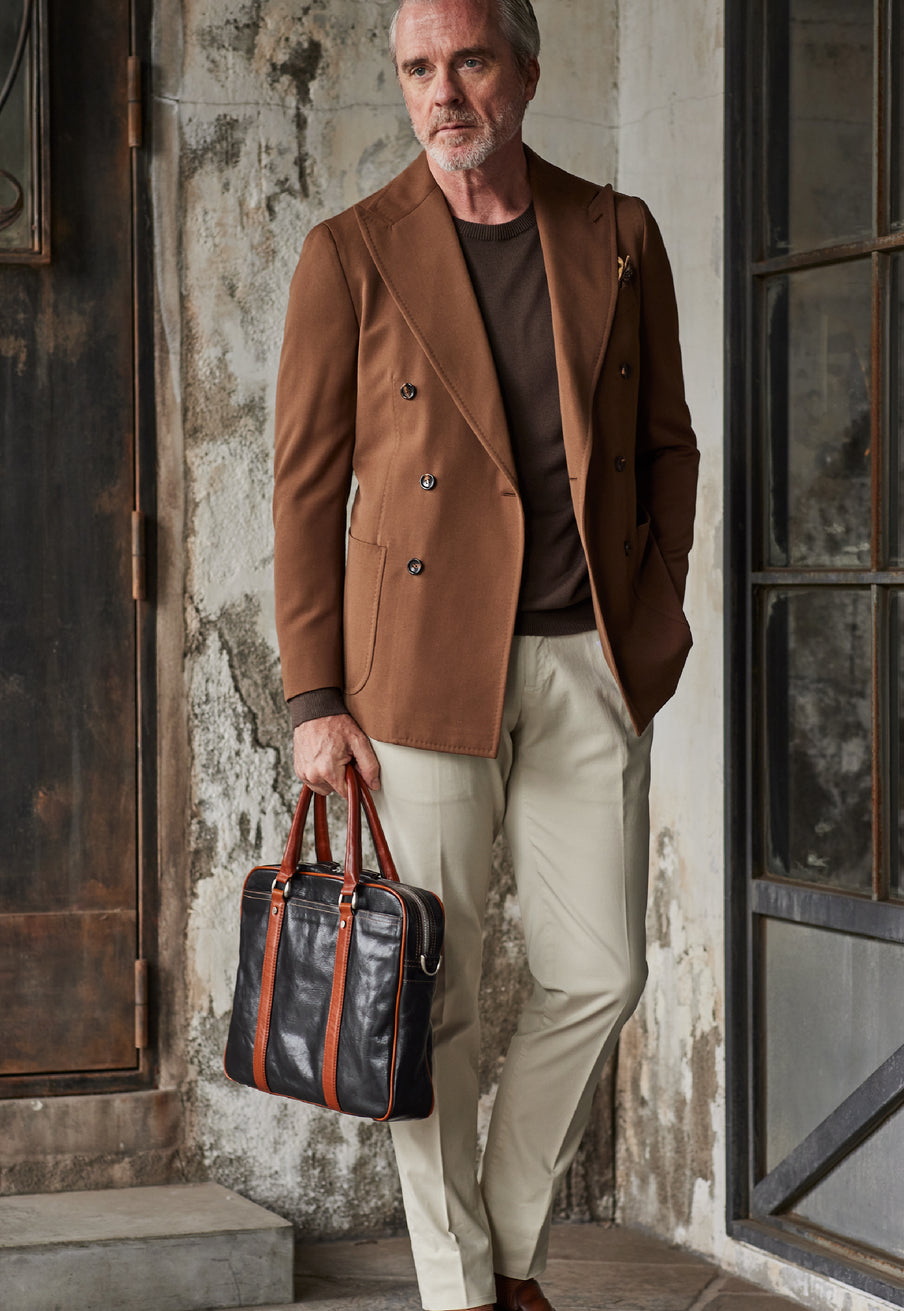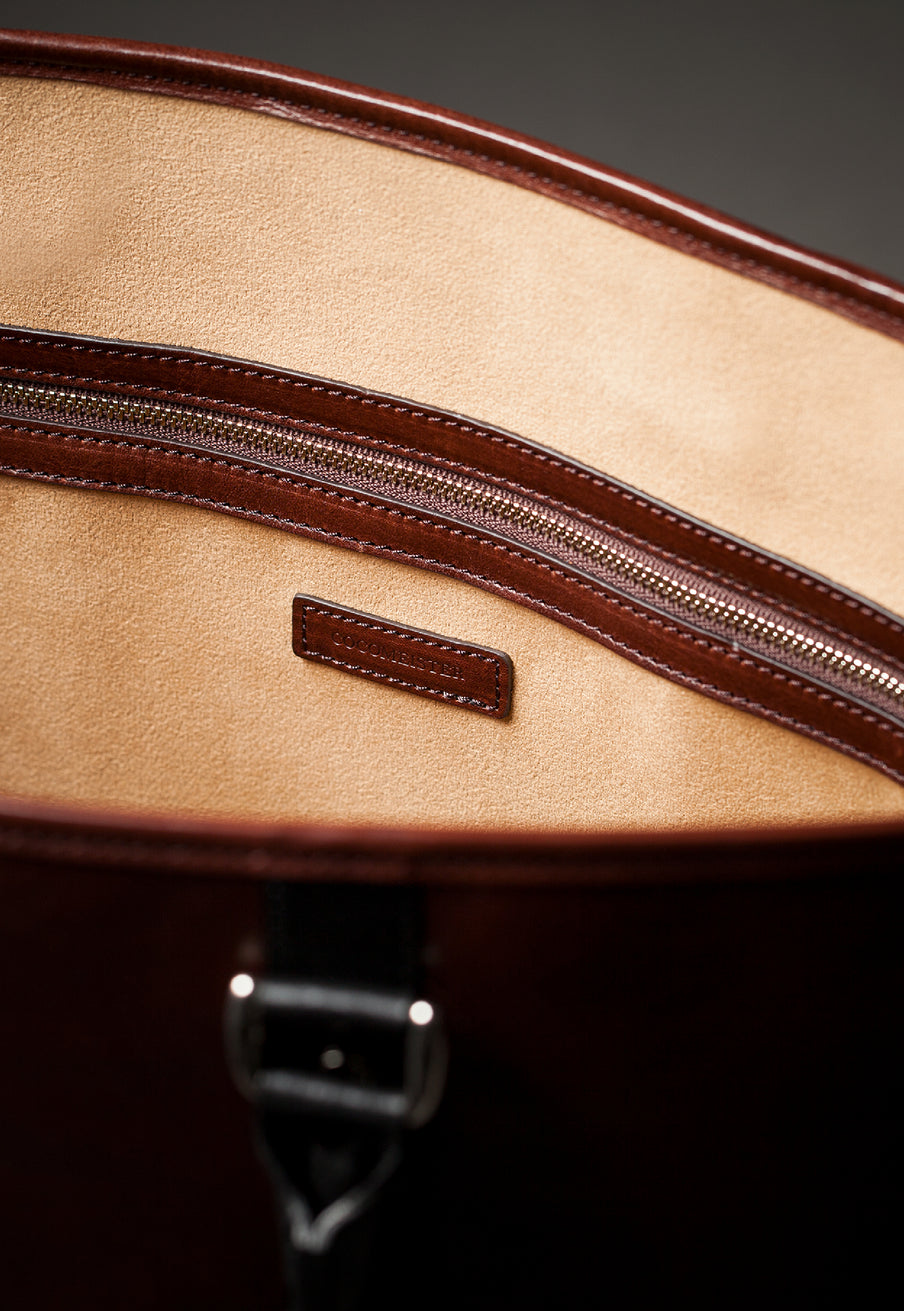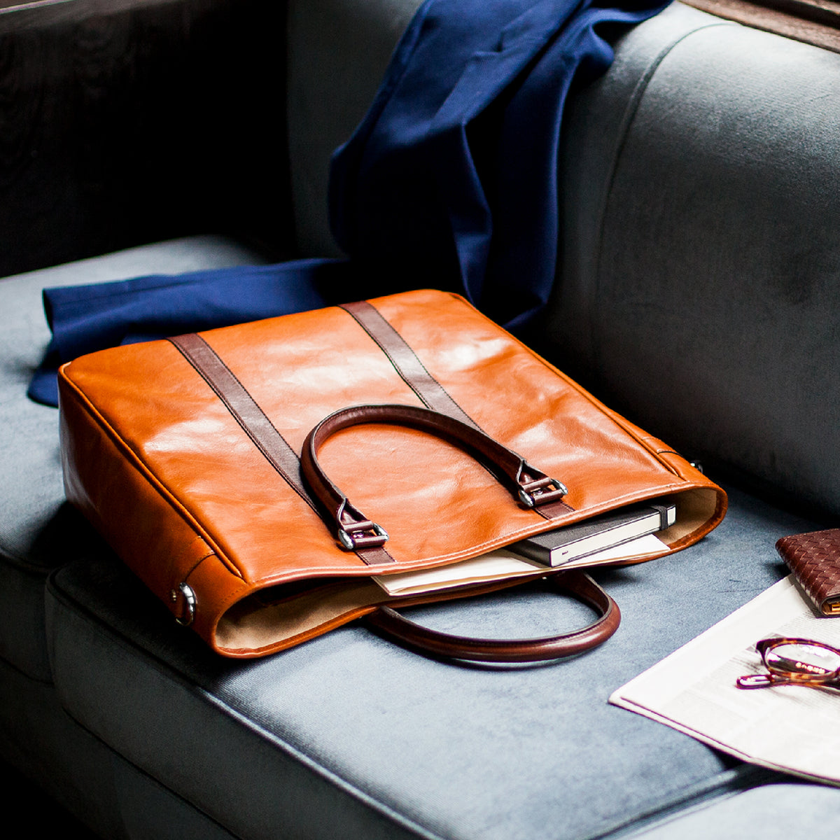 本体と持ち手の2色のコントラストがこのビジネストートのお洒落ポイント。経年変化しても格好良いコントラストで。
