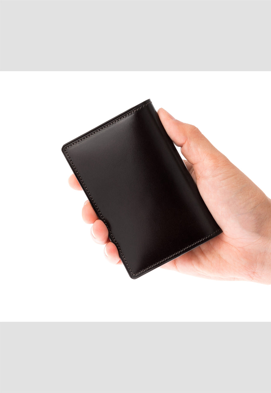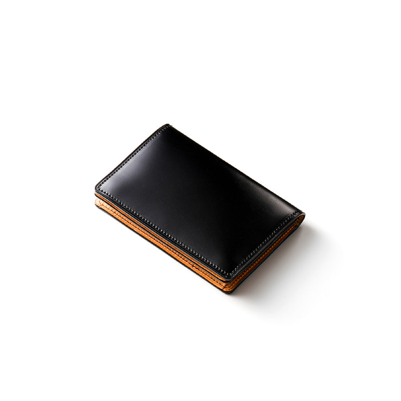 水染めコードバンをシンプルに美しく、そして上品に作り上げたマイスターコードバンコレクション。内装にはイタリアンレザーで革の風合いと経年変化を楽しむ事ができます。クラシカルなデザインの名刺入れです。革の風合いを存分に楽しめる様なデザインになっていますので、ビジネスシーンにピッタリです。| 外寸 | 縦7.5cm×横11.1cm×厚さ1.2cm |