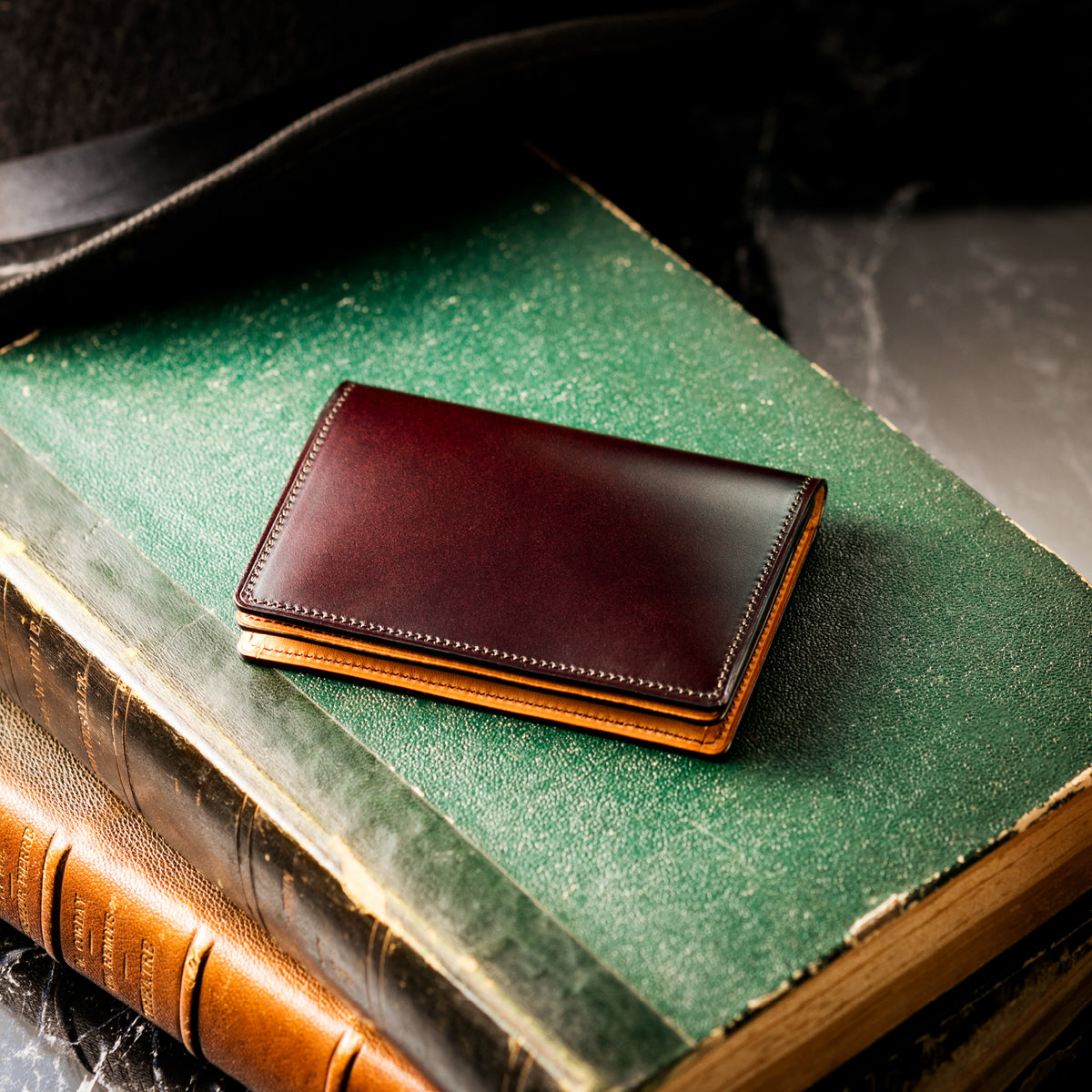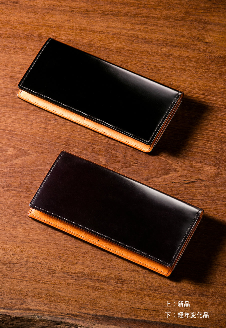 透明感ある発色と艶が、水染めコードバンならではの美しさを描き出します。