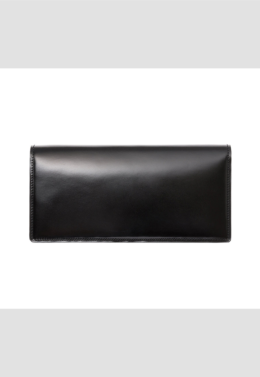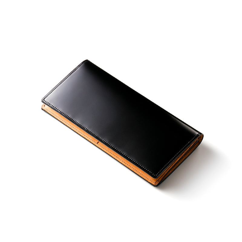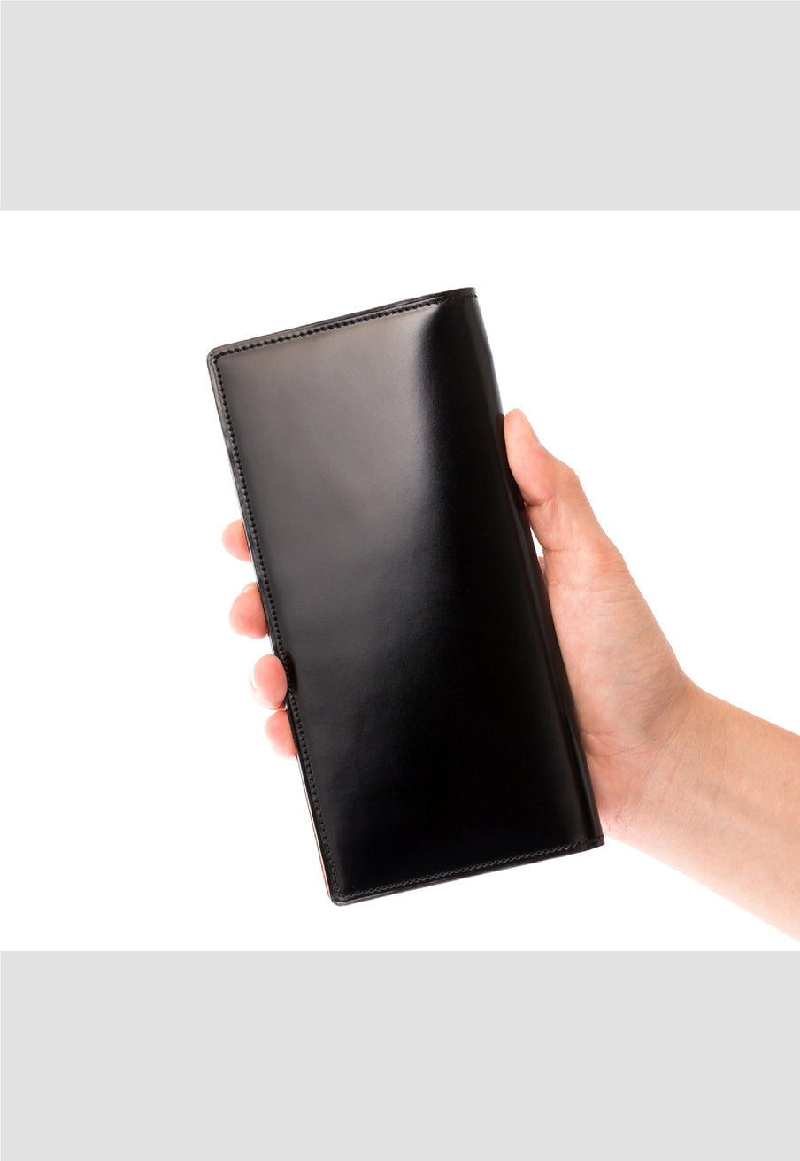 水染めコードバンをシンプルに美しく、そして上品に作り上げたマイスターコードバンコレクション。内装にはイタリアンレザーで革の風合いと経年変化を楽しむ事ができます。スマートフォルムなV字マチ長財布は、スタイリッシュな印象が魅力です。スッキリとした見た目に天然皮革の上質感で魅了します。| 外寸 | 縦9.3cm×横19cm×厚み2.3cm |