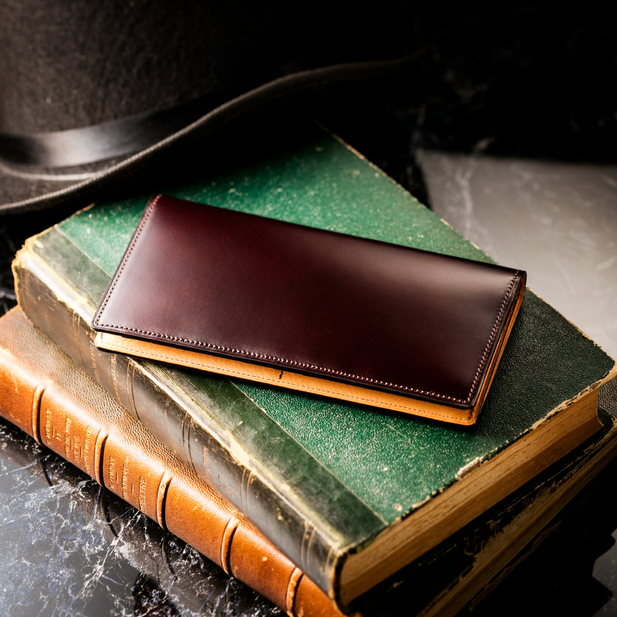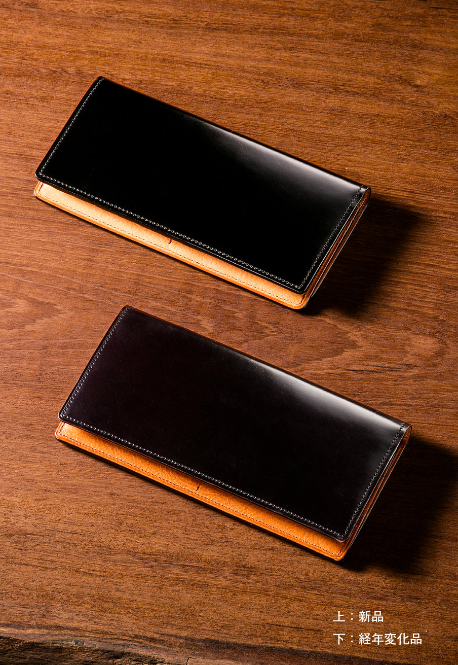 透明感ある発色と艶が、水染めコードバンならではの美しさを描き出します。