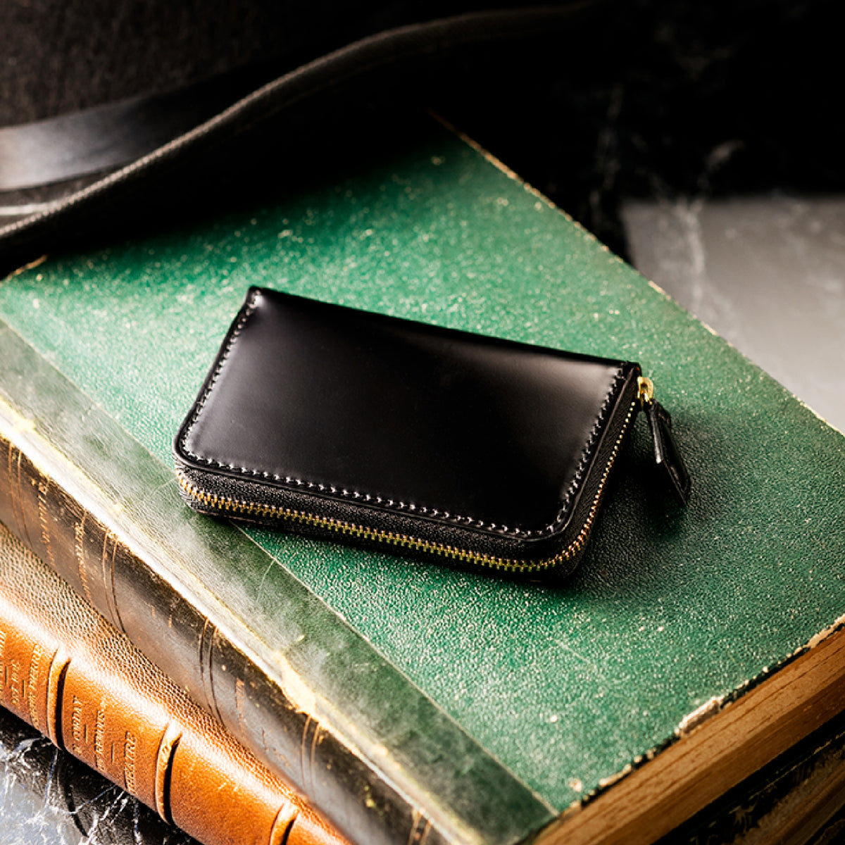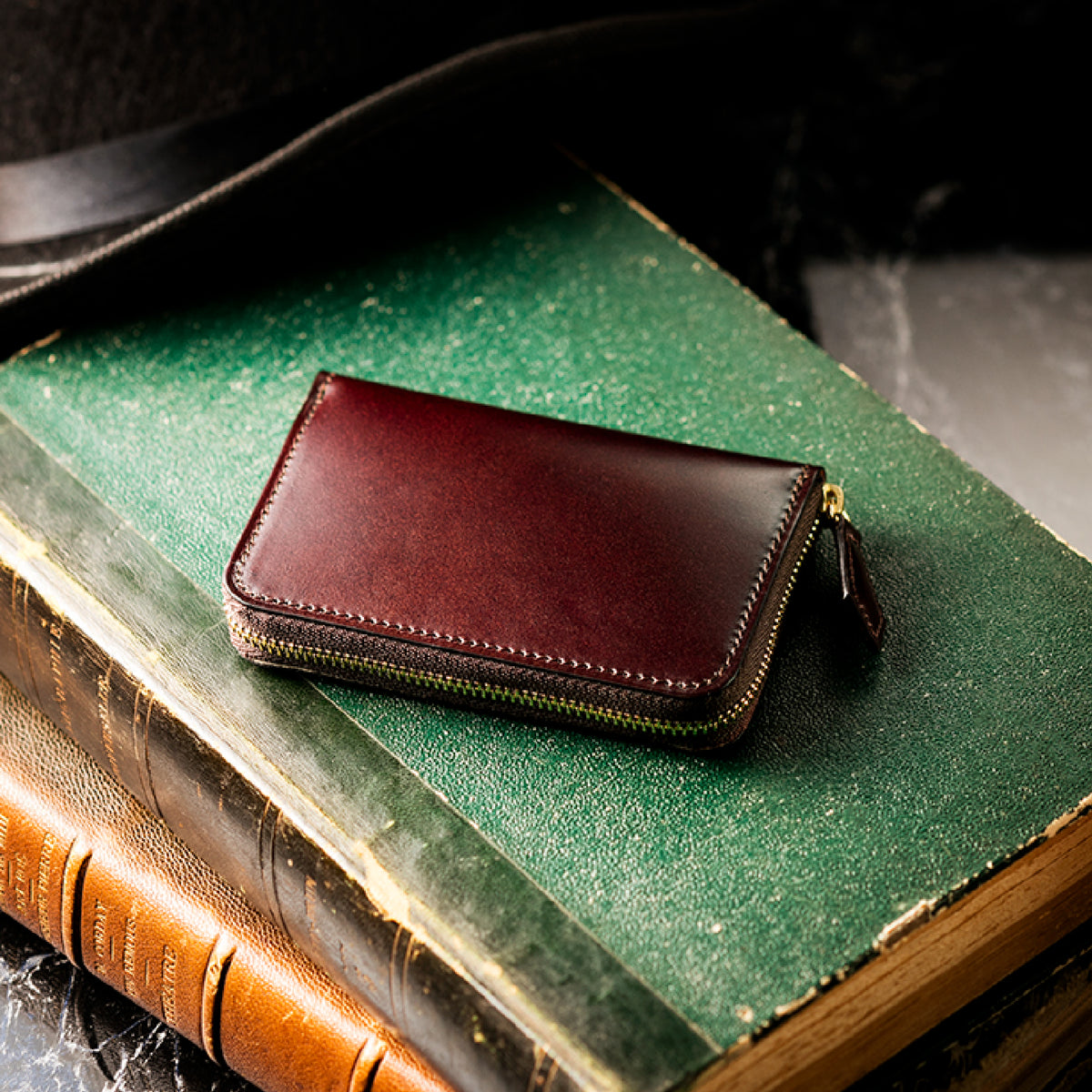 透明感ある発色と艶が、水染めコードバンならではの美しさを描き出します。