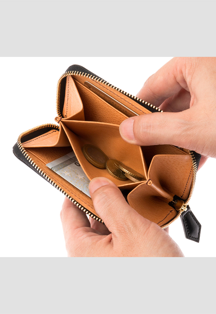 お札は折り収納し、センターには小銭を収納します。カード類も収納でき、基本的な機能は全て持ち合わせています。