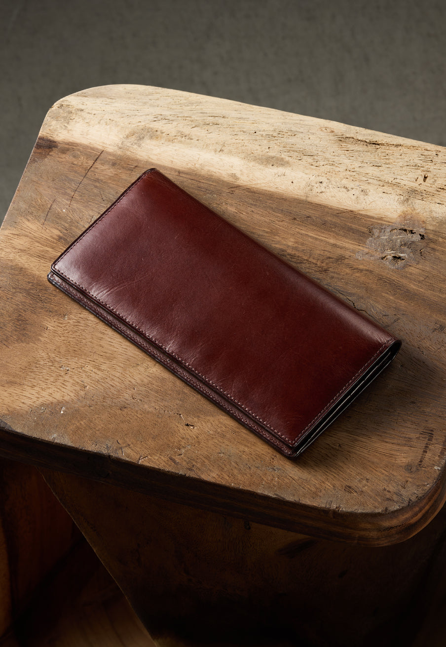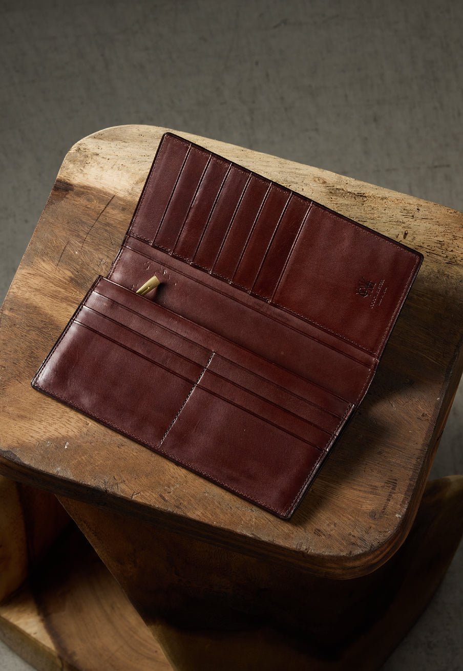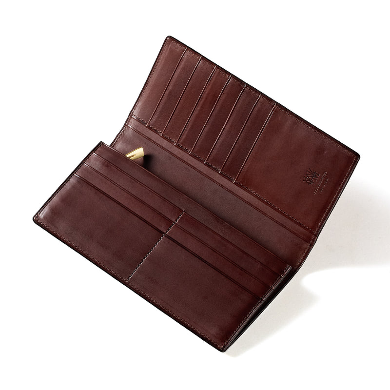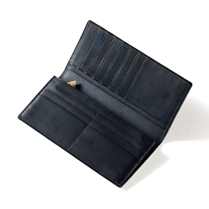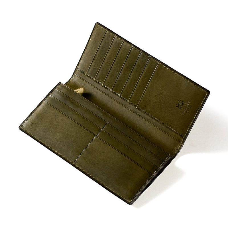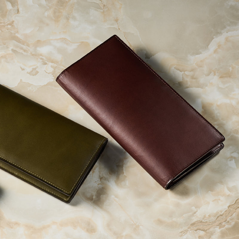 V字マチ(ササマチ)を採用し、開いた際の視認性と使いやすさを両立。スマートなシルエットを保ちながら、スムーズな取り出しをサポート。革の美しさを活かした構造が、洗練された印象を与えます。