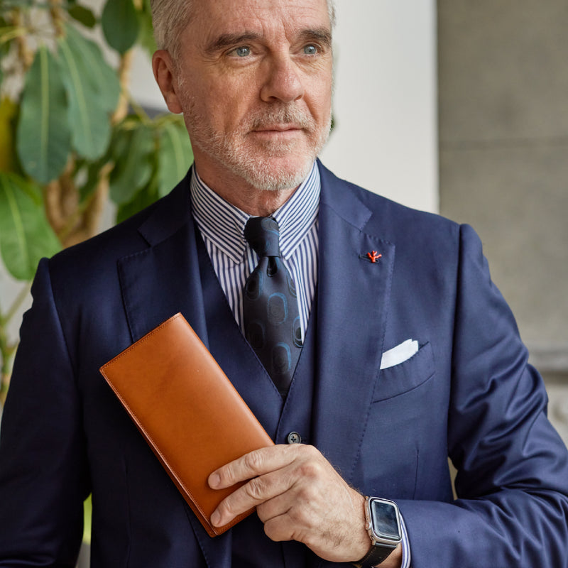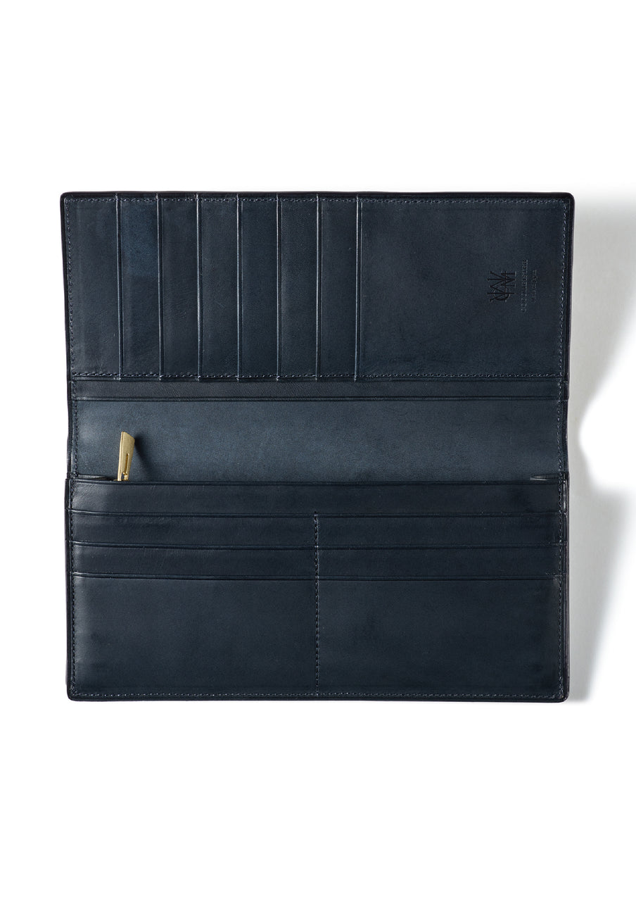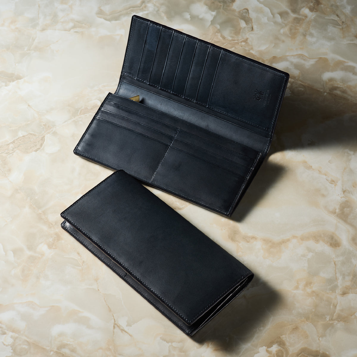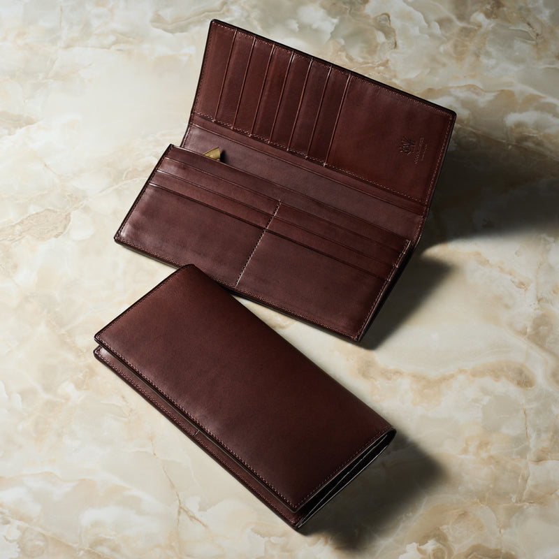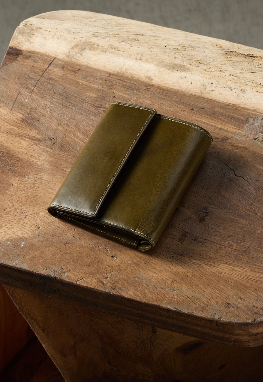 V字マチ(ササマチ)を採用し、開いた際の視認性と使いやすさを両立。スマートなシルエットを保ちながら、スムーズな取り出しをサポート。革の美しさを活かした構造が、洗練された印象を与えます。