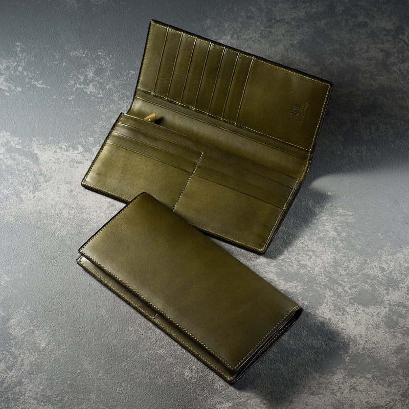 使い込むことに味を深める、時間の経過を革に刻み込む「ミネルバリスシオ」シリーズ。イタリア千年の歴史を持つ伝統製法により作られたバケッタレザー、バダラッシカルロ社を代表するミネルバリスシオを贅沢に全面に使用しました。薄マチタイプの長財布。カード収納もベルトコンベアと比べると少なく、スッキリした印象になります。| 外寸 | 縦9.7cm×横19.2cm×厚さ2cm |