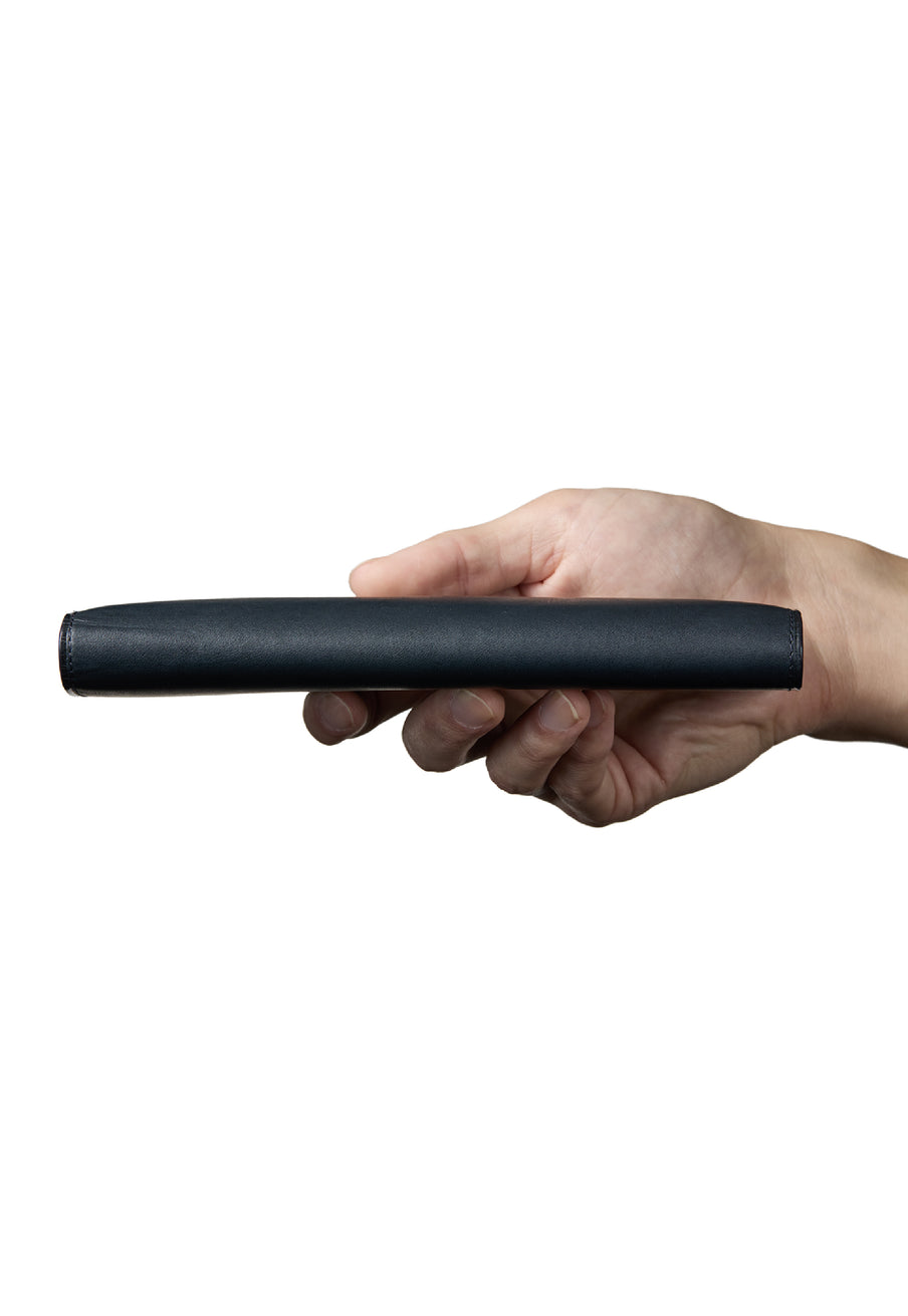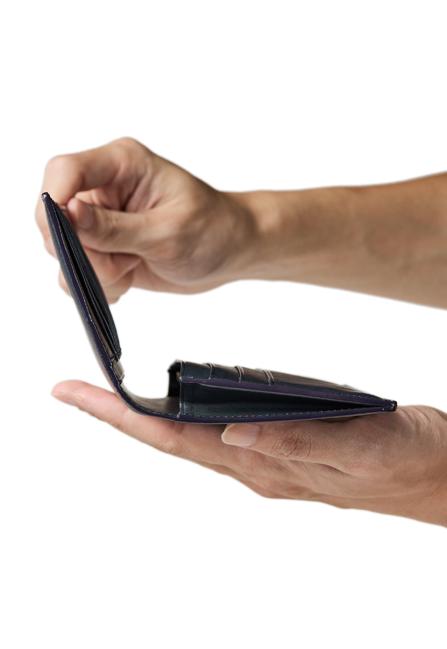 カード段は、革を何層にも重ねたこだわりの構造。計算された厚みと精巧な仕立てにより、多くのカードを収納しながらもスリムなフォルムを維持。しなやかな革が心地よく、使うほどに馴染み、出し入れのしやすさが向上します。