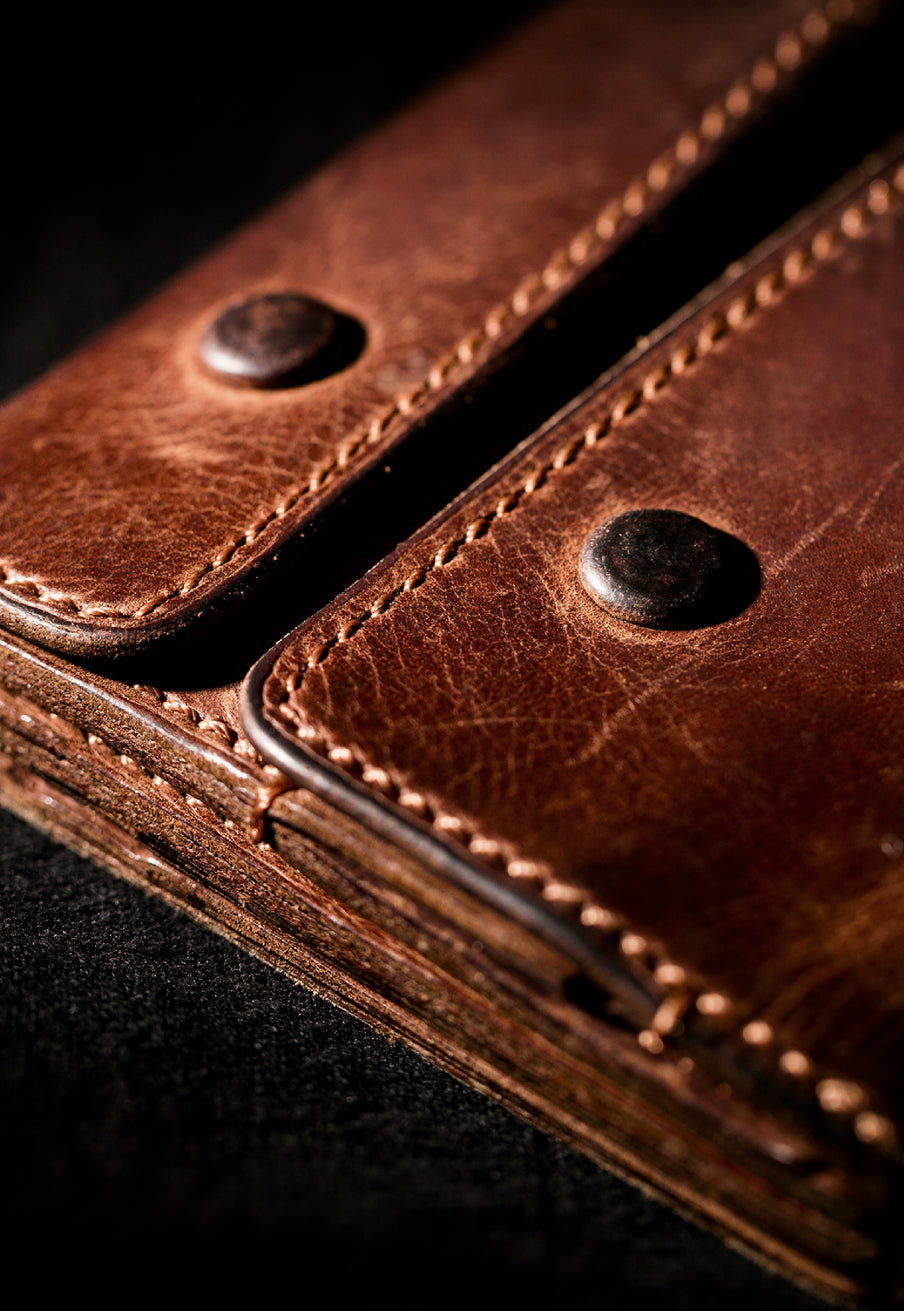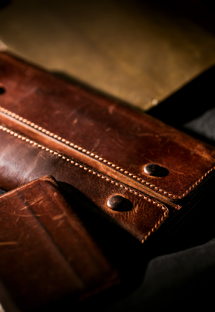 イタリア産オイルドヌバックを使用した、経年変化を前提に設計された特別なレザー。