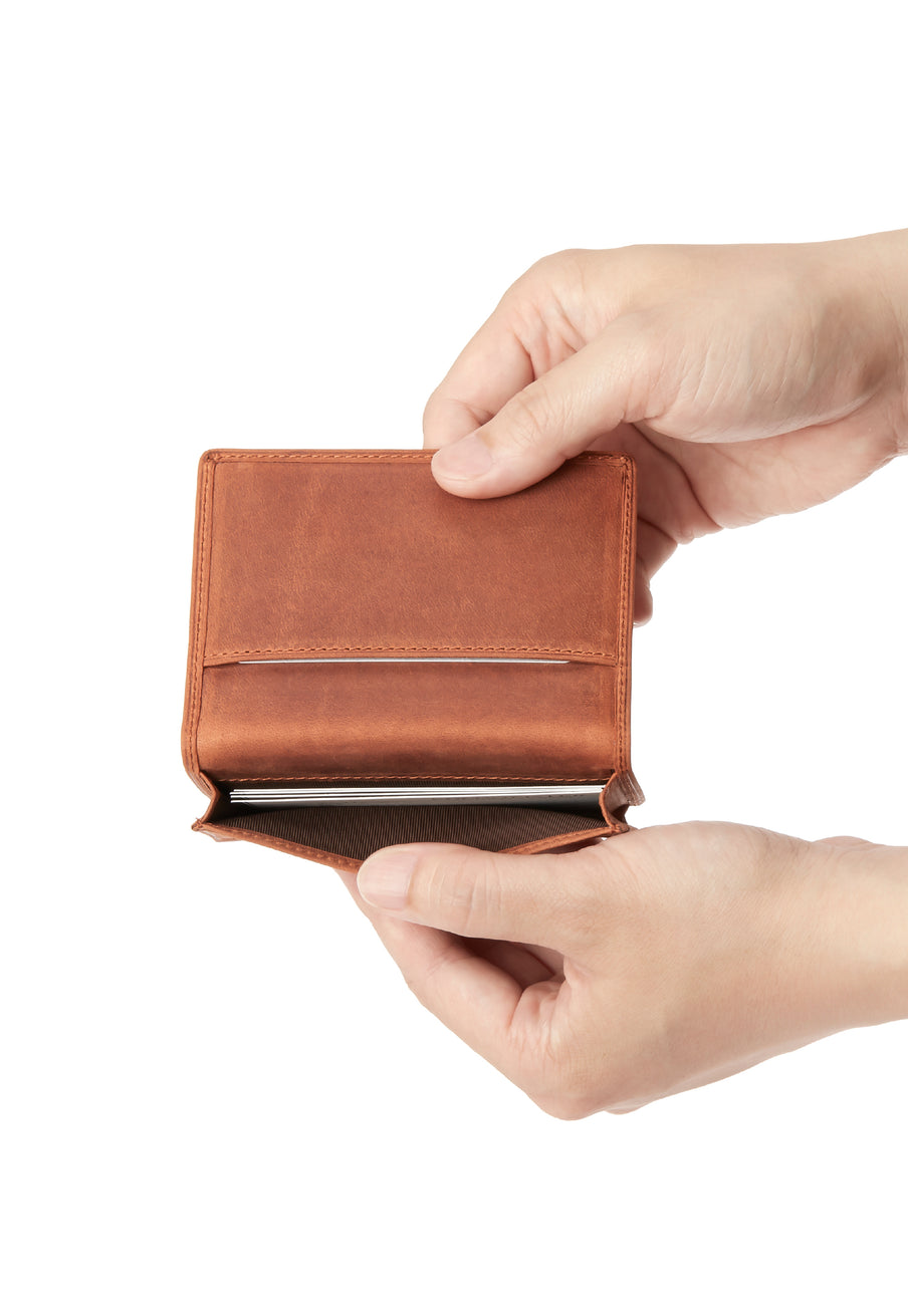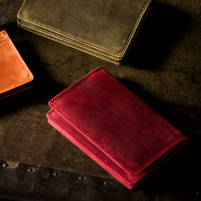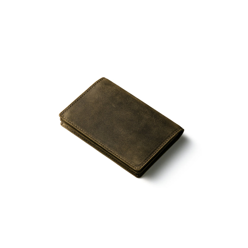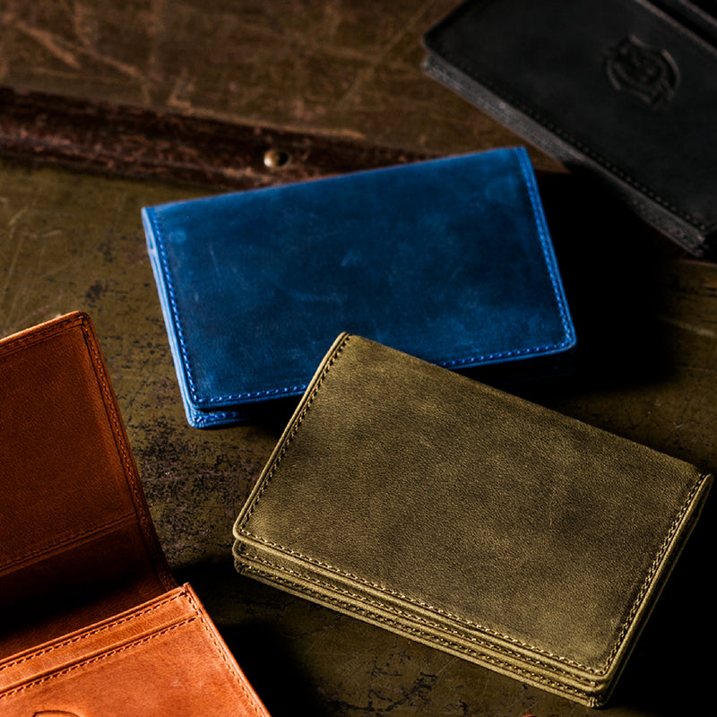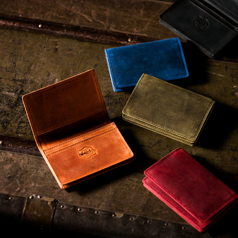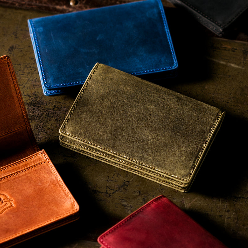 瞬く間に経年変化するイタリア産オイルドヌバックが魅了します。今までに経験したことがない質感が魅力的で、しっとりと手に馴染みます。柔らかい革のクッタリ感も楽しめます。クラシカルなデザインの名刺入れです。革の風合いを存分に楽しめる様な野生的なデザインになっていますので、今のビジネスシーンにピッタリです。| 外寸 | 縦7.7cm×横11cm×厚さ1.3cm |