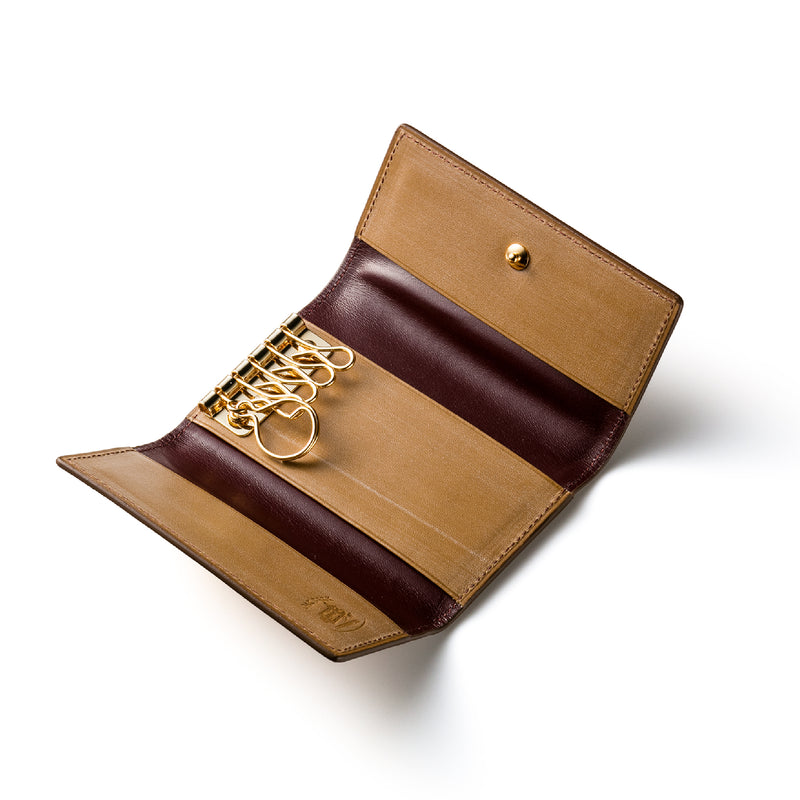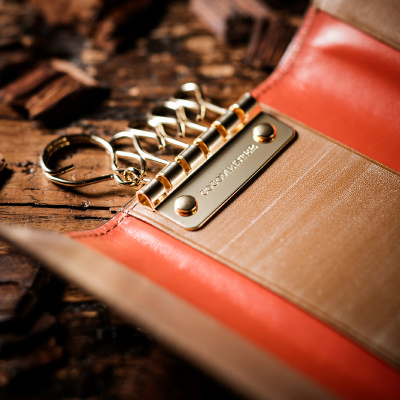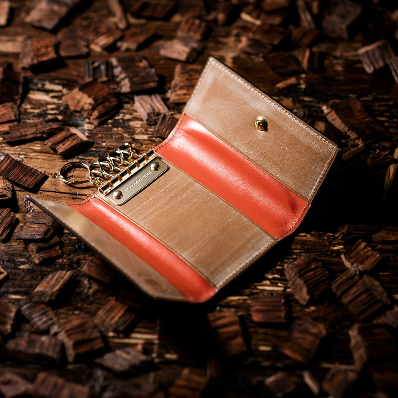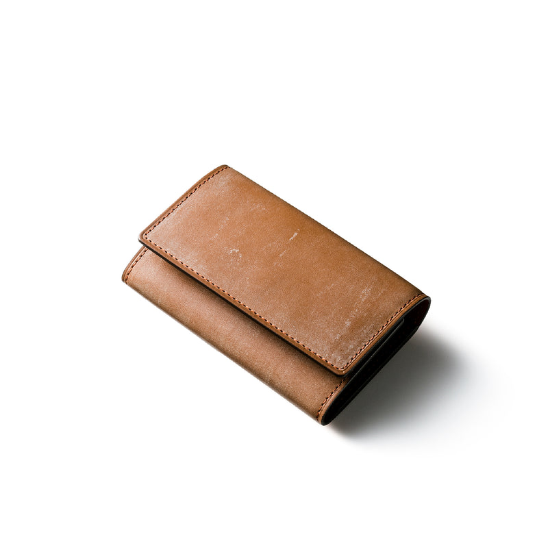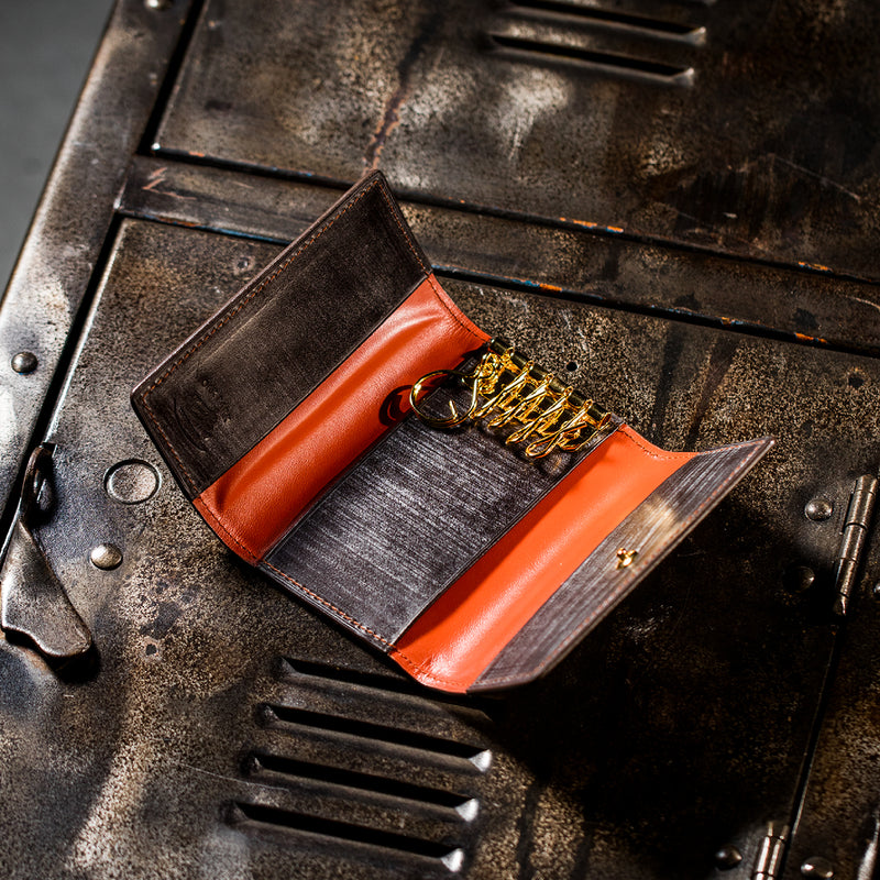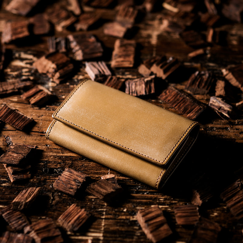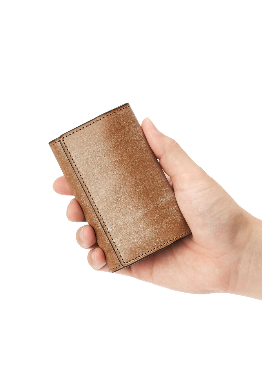 紀元前の製法をそのまま再現したオークバークレザーを使用したシリーズ。ヴィンテージ感溢れる表情は、まさに紀元前の皮革そのもの。しなやかな弾力性を持ち、高い耐久性も高い。新品時から熟成されたエイジングを感じさせる濃厚な風合いが魅力です。革を折りたたむクラシカルかつシンプルなキーケースです。背面にもカードポケットがあり、カード類も収納できます。| 外寸 | 縦11.1cm×横7.2cm×厚さ1.8cm |