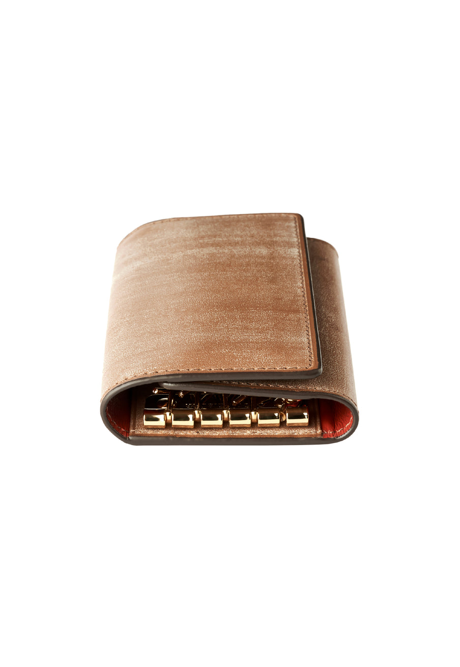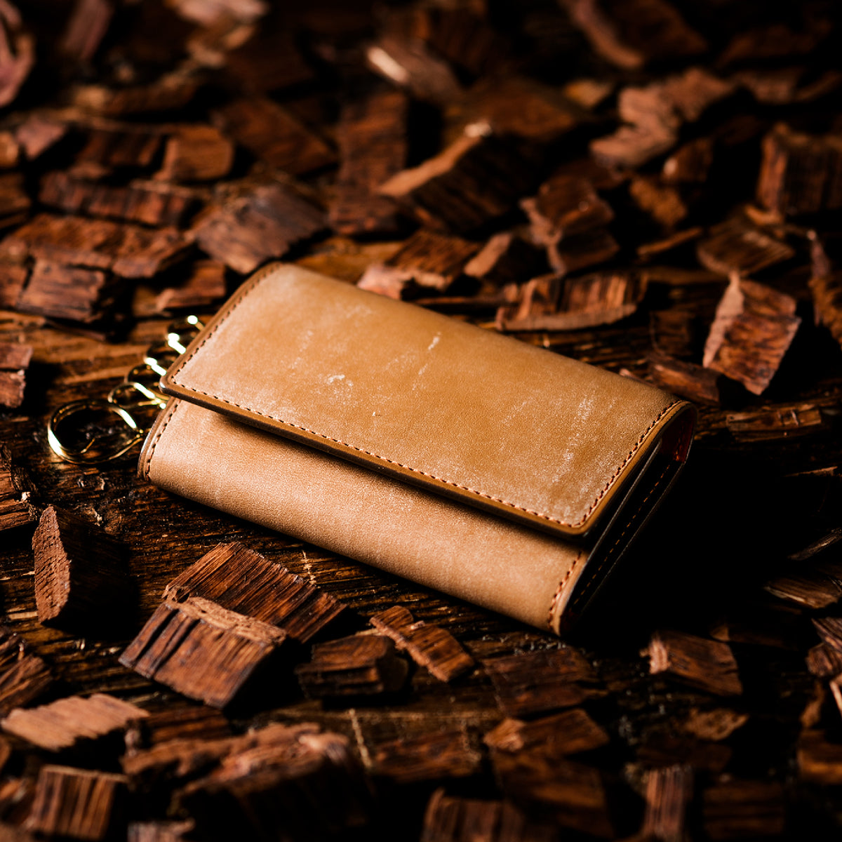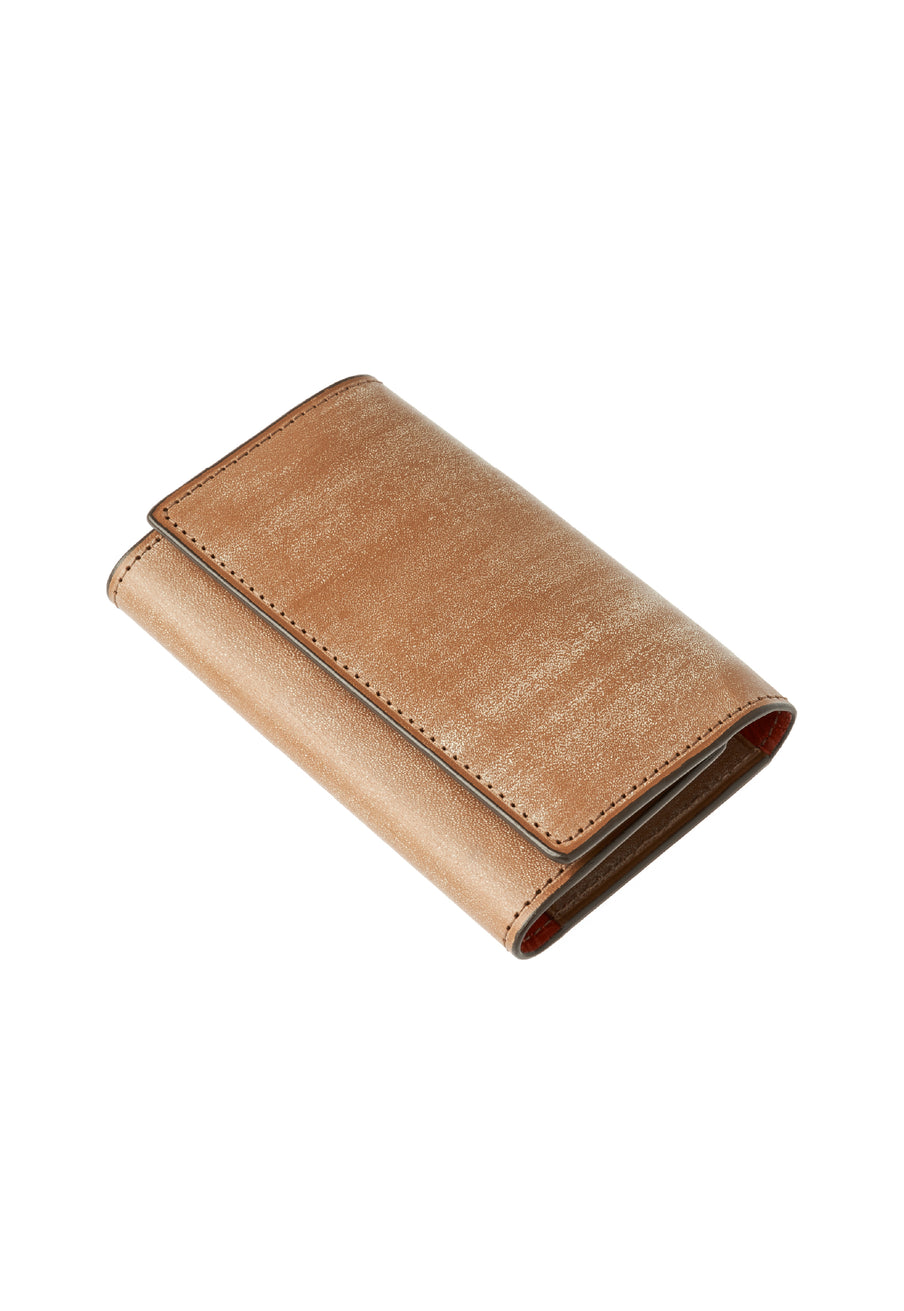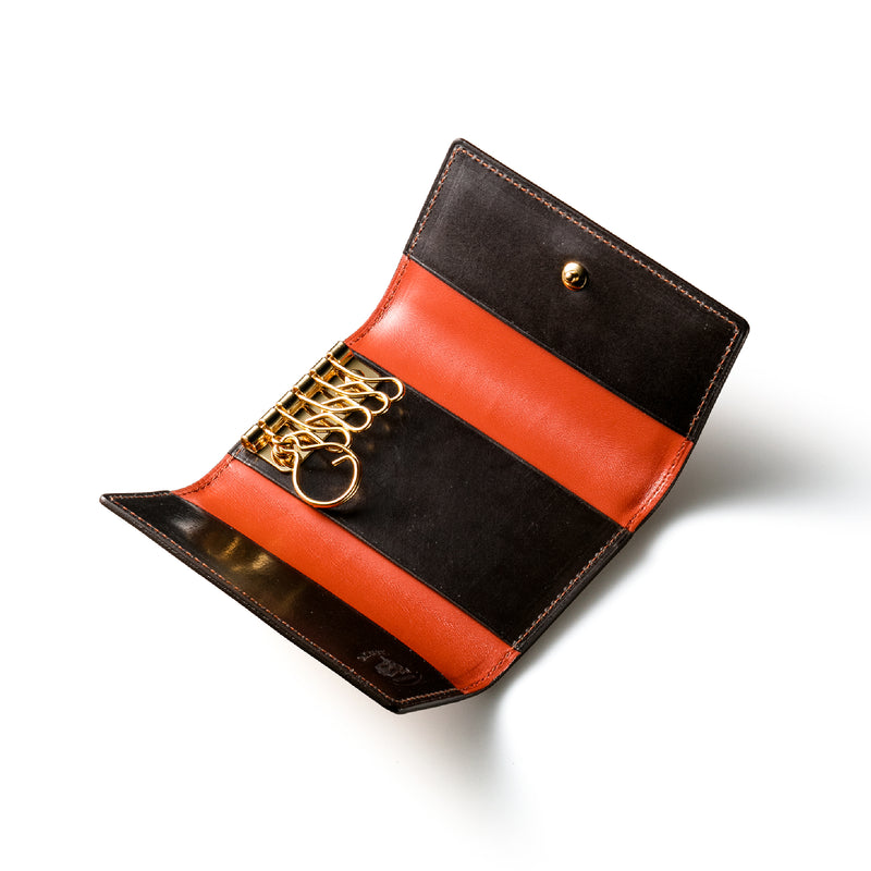 紀元前の製法をそのまま再現したオークバークレザーを使用したシリーズ。ヴィンテージ感溢れる表情は、まさに紀元前の皮革そのもの。しなやかな弾力性を持ち、高い耐久性も高い。新品時から熟成されたエイジングを感じさせる濃厚な風合いが魅力です。革を折りたたむクラシカルかつシンプルなキーケースです。背面にもカードポケットがあり、カード類も収納できます。| 外寸 | 縦11.1cm×横7.2cm×厚さ1.8cm |