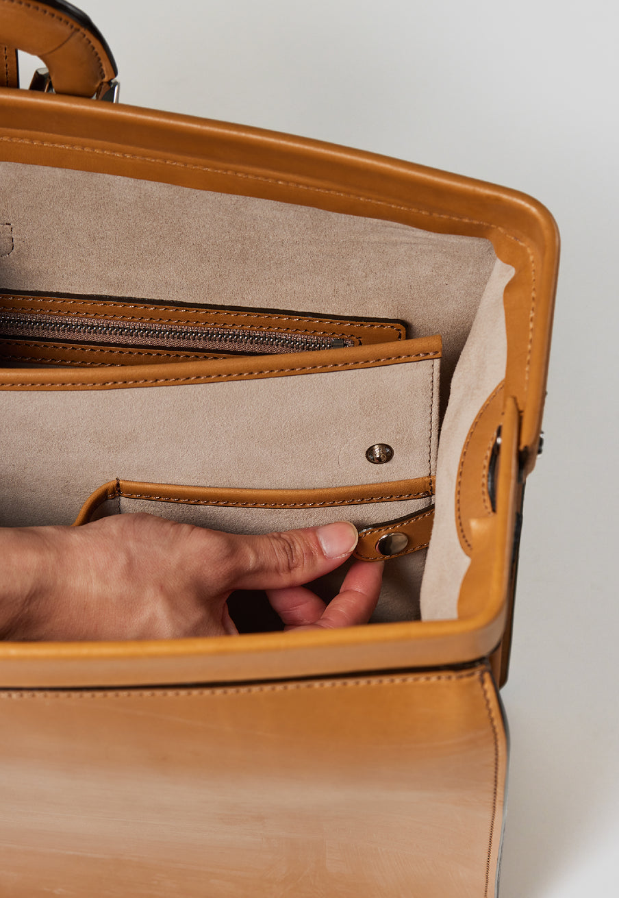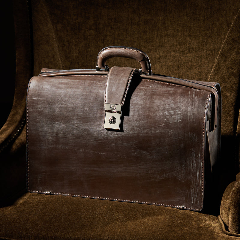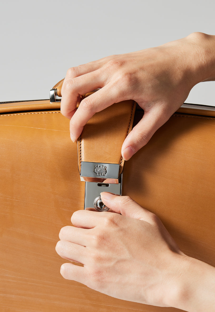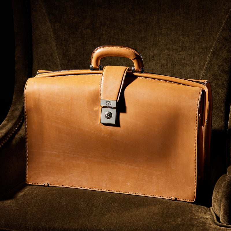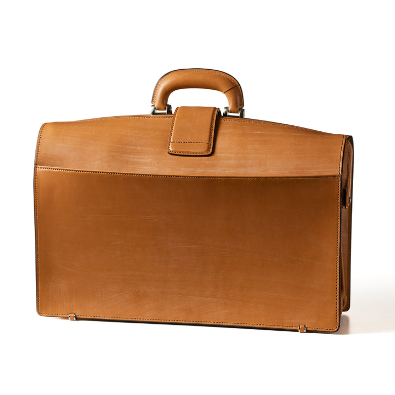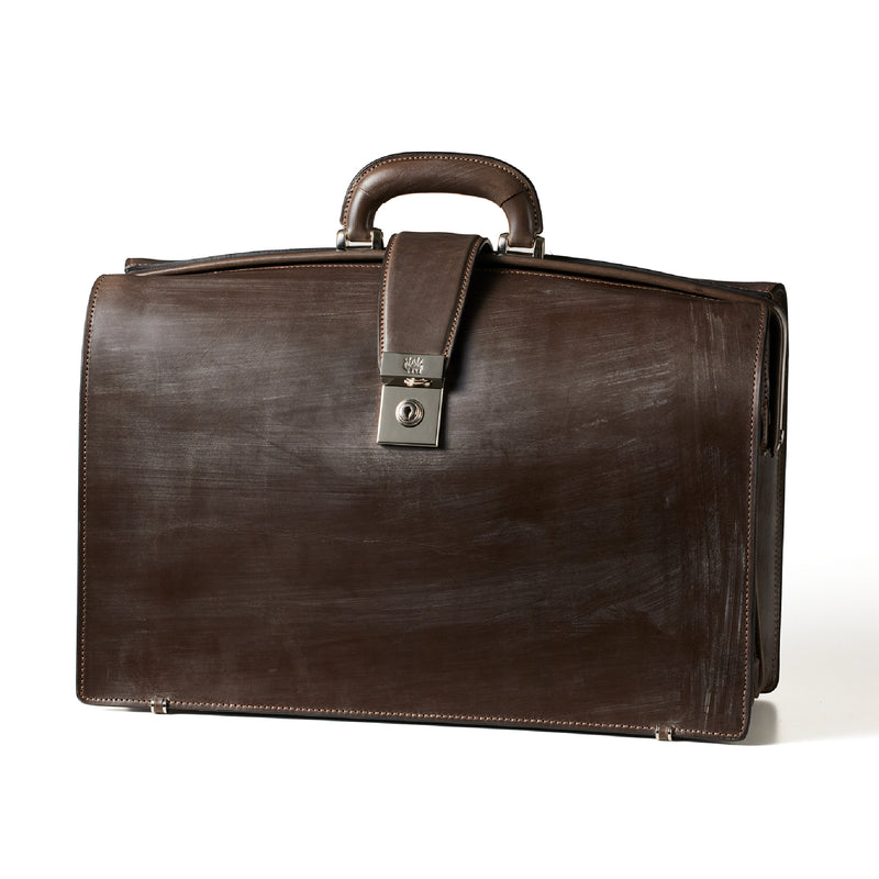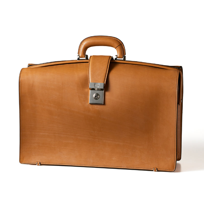 重厚なオークバークレザーが、クラシカルな鞄に圧倒的な存在感を与えます。
