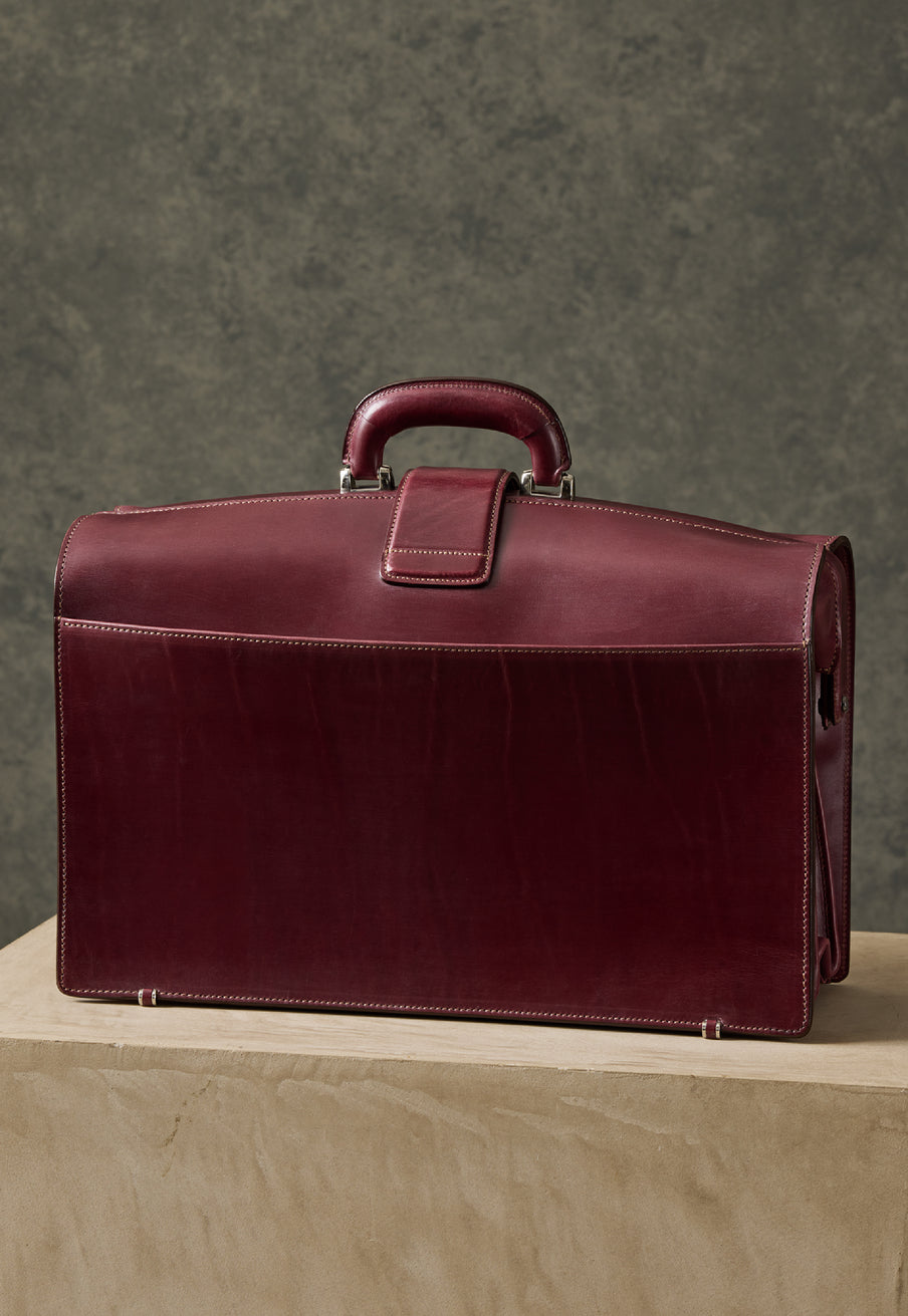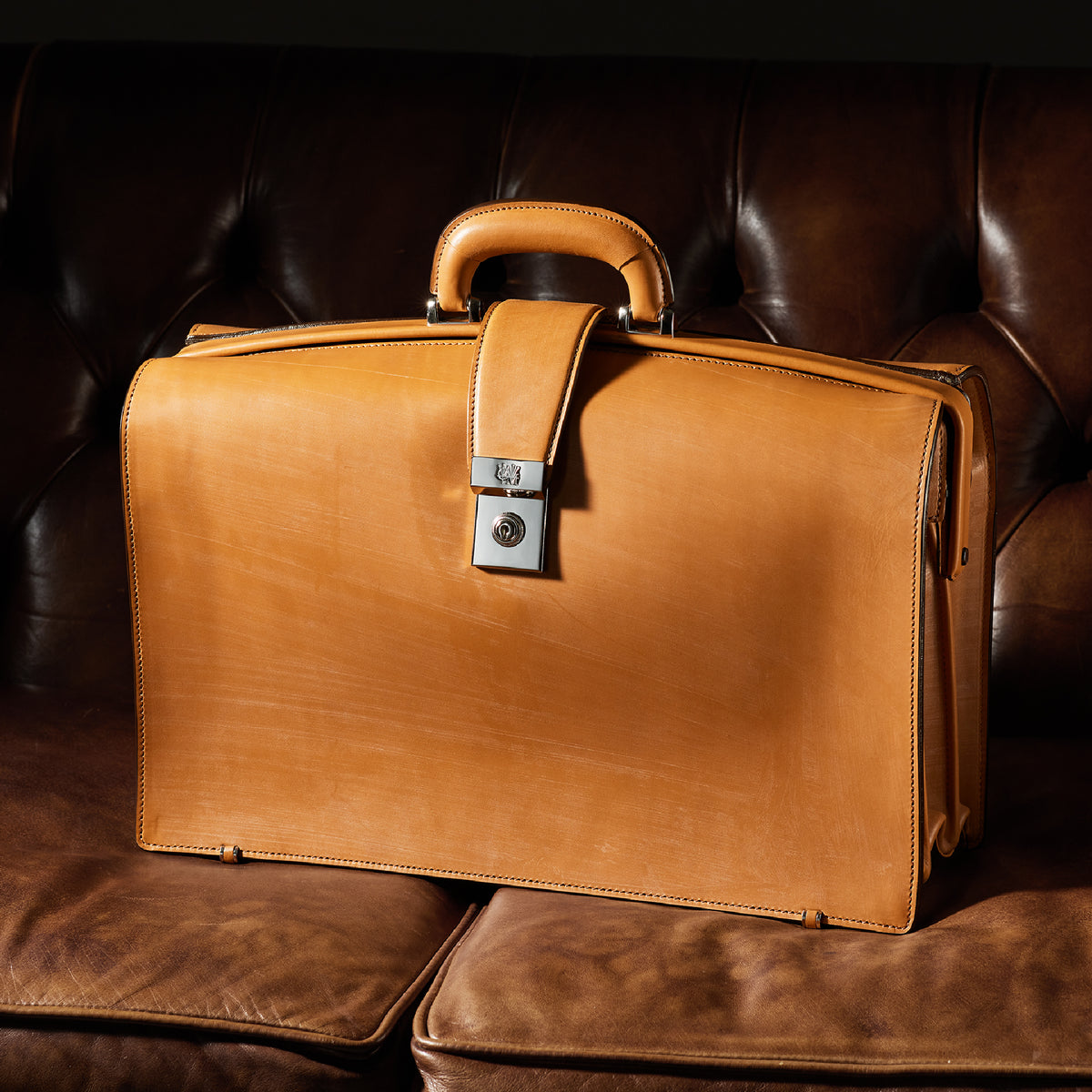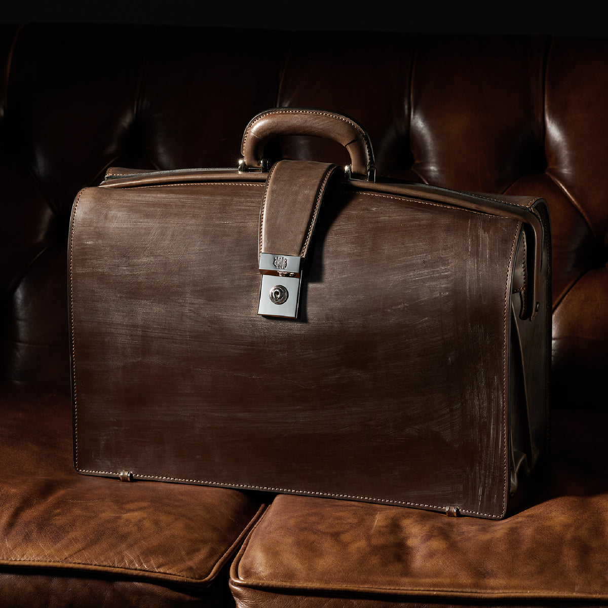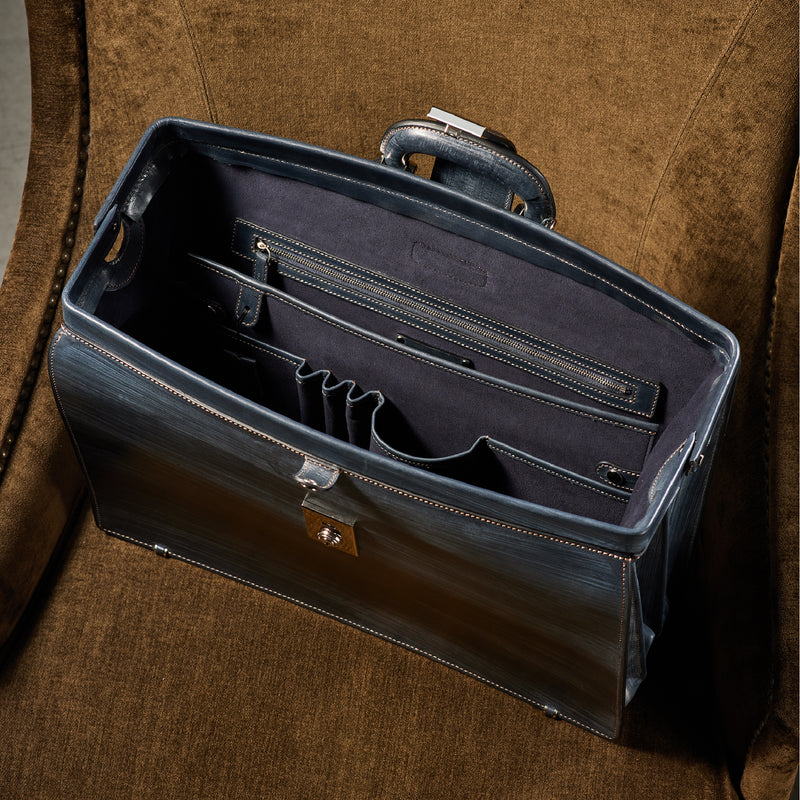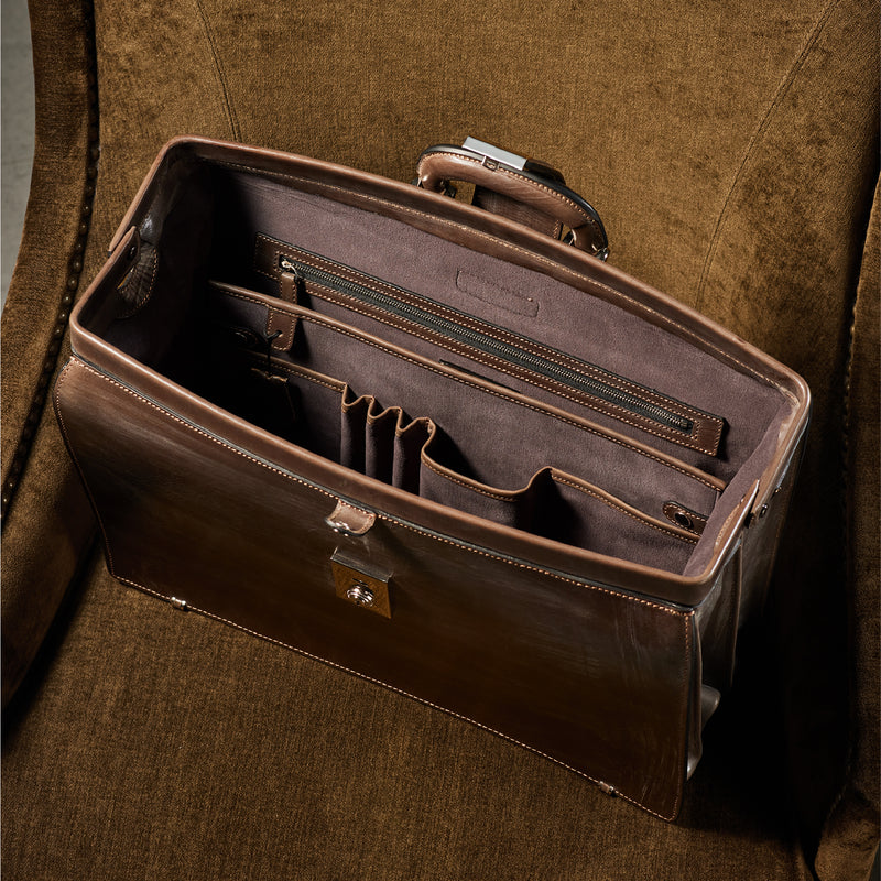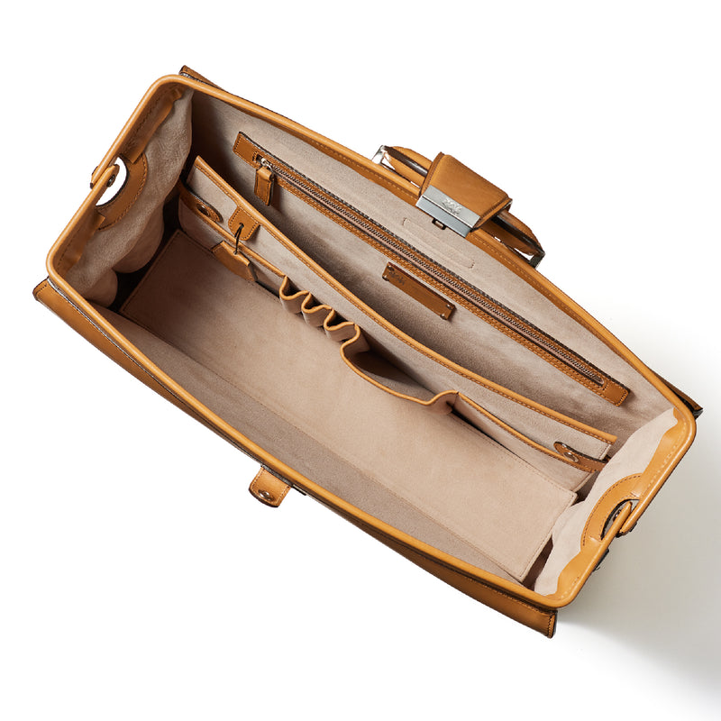 重厚なオークバークレザーが、クラシカルな鞄に圧倒的な存在感を与えます。