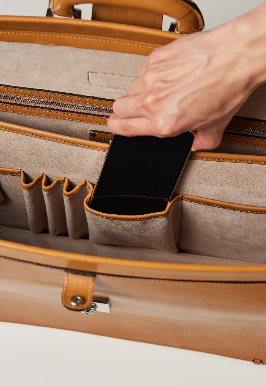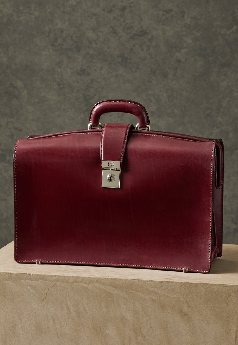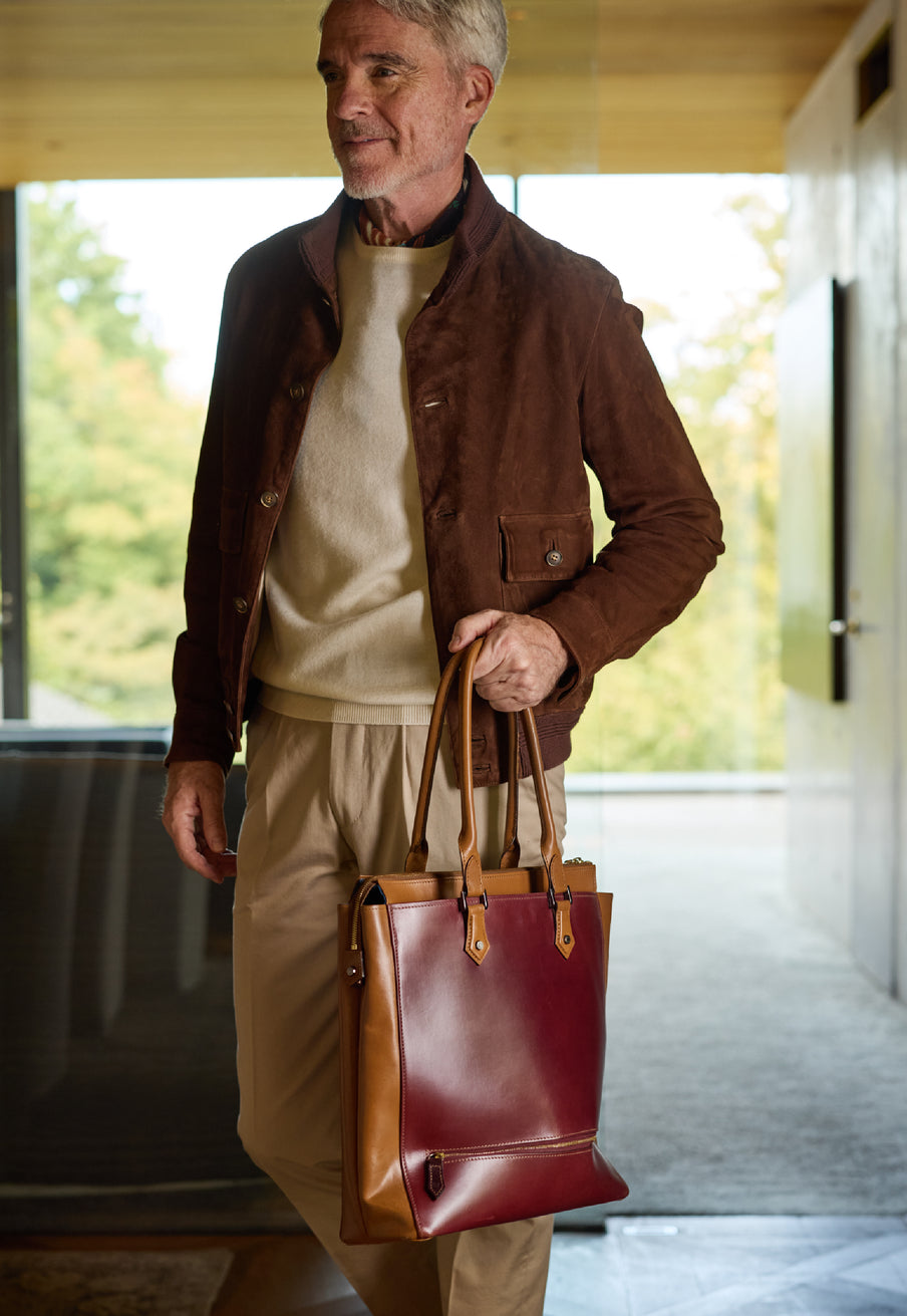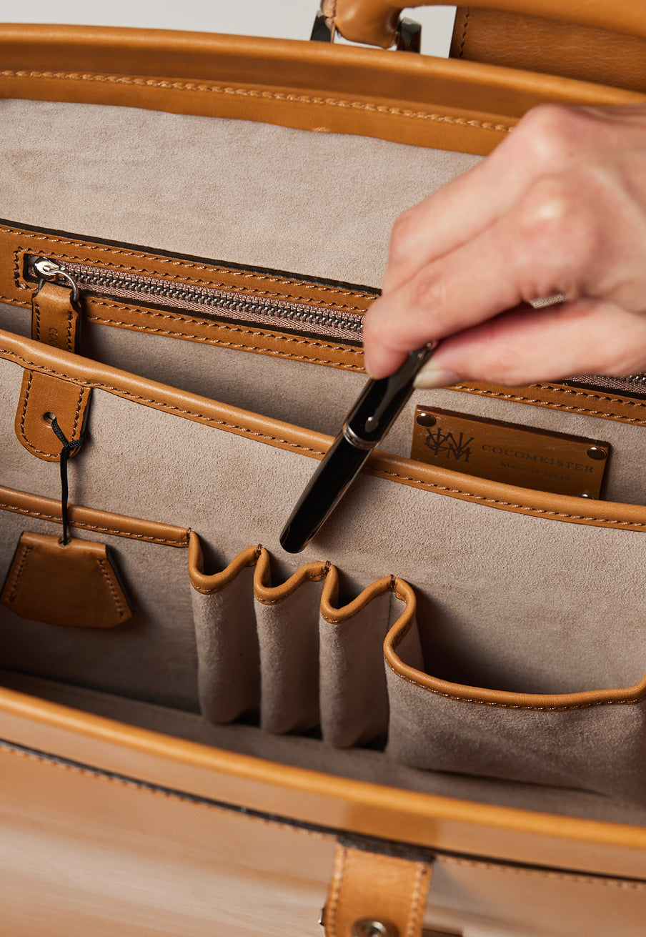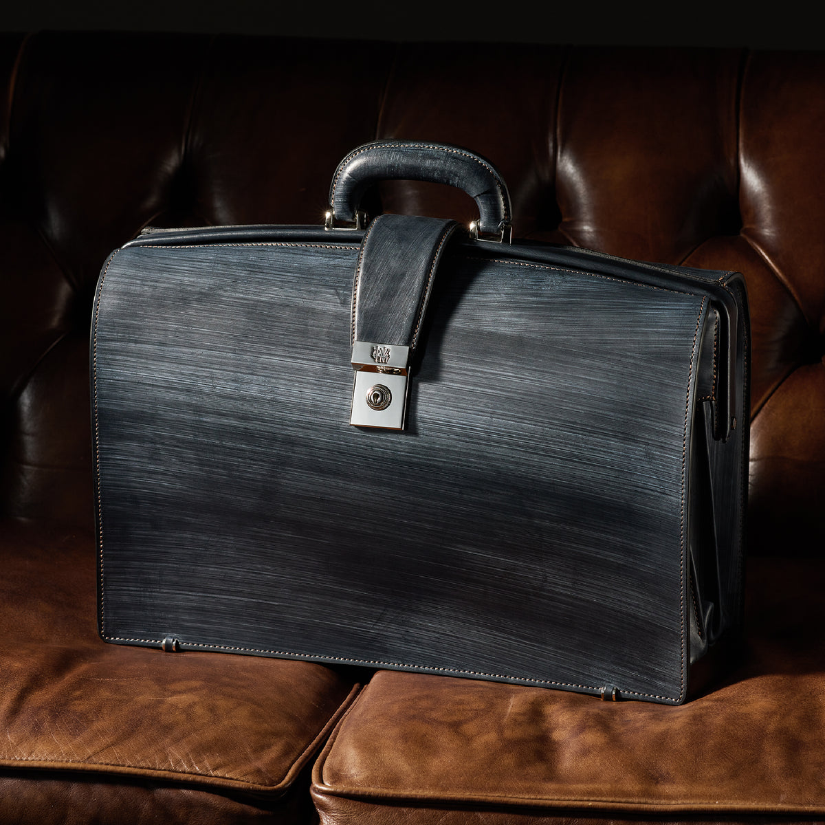 重厚なオークバークレザーが、クラシカルな鞄に圧倒的な存在感を与えます。