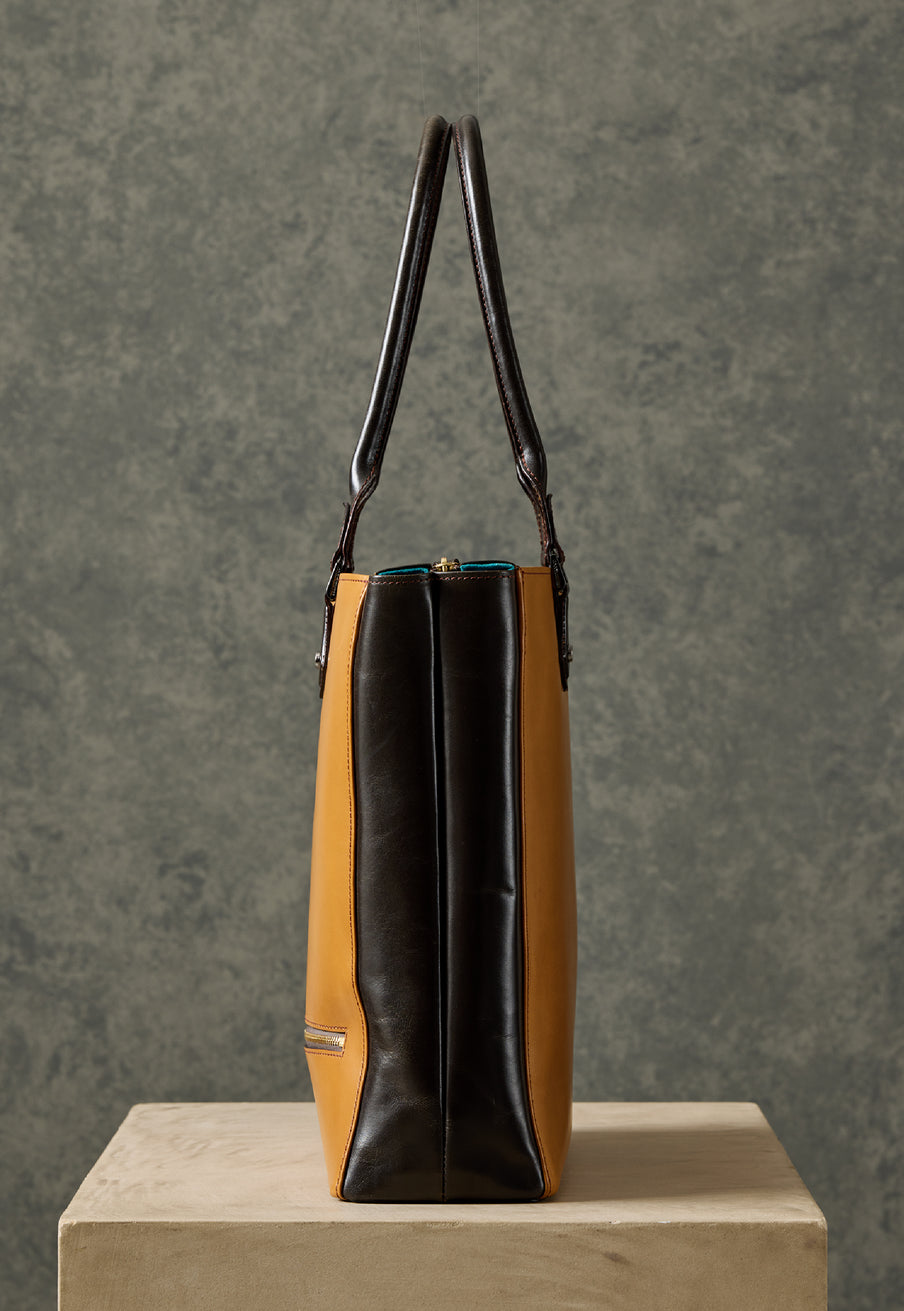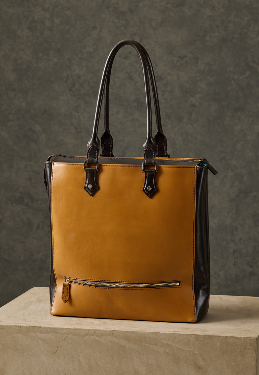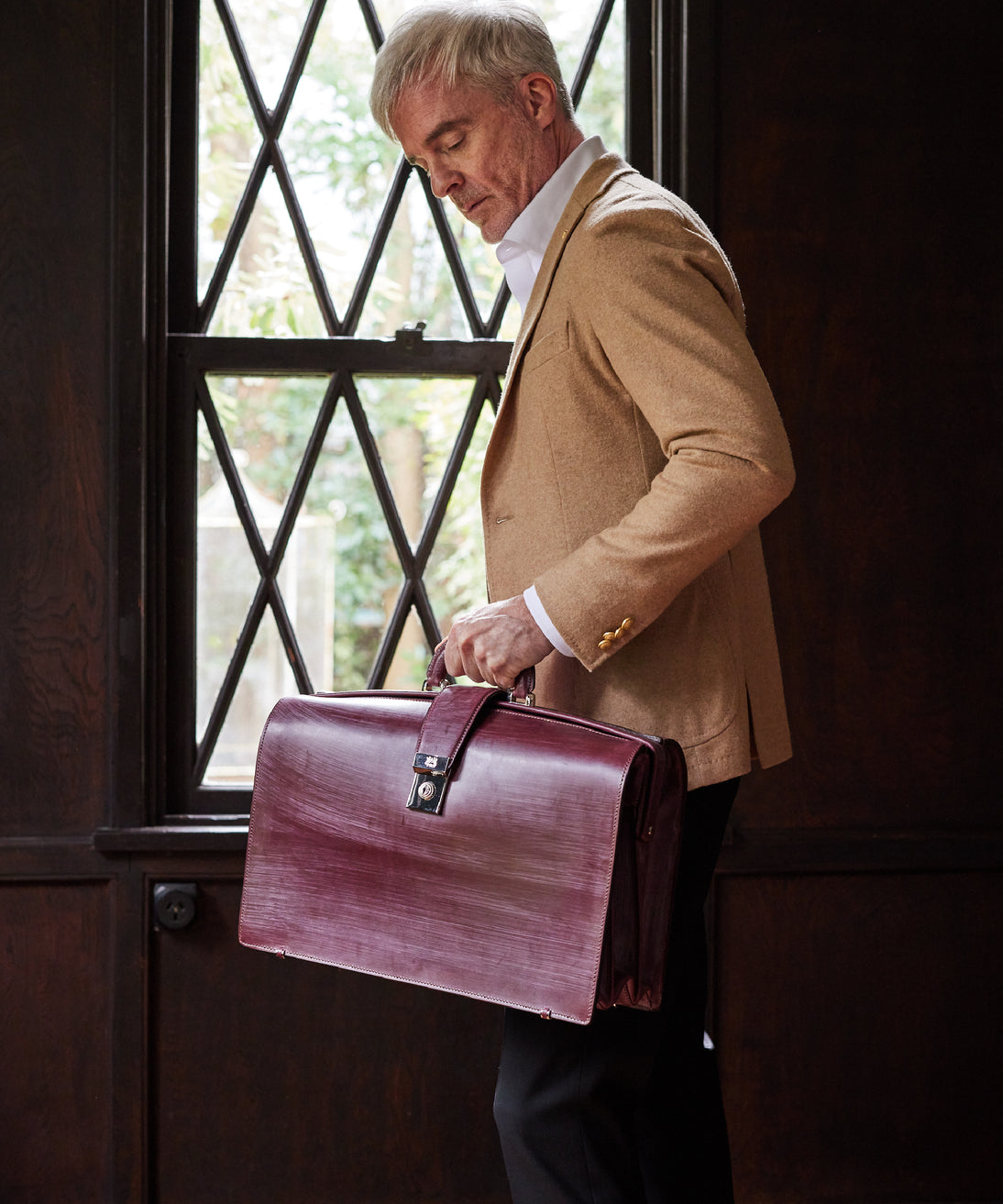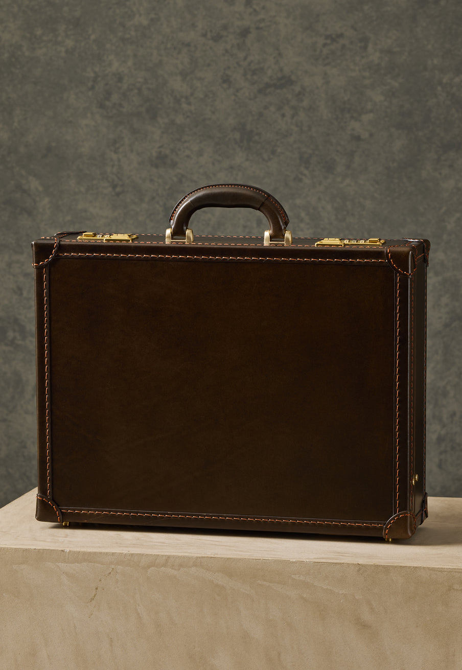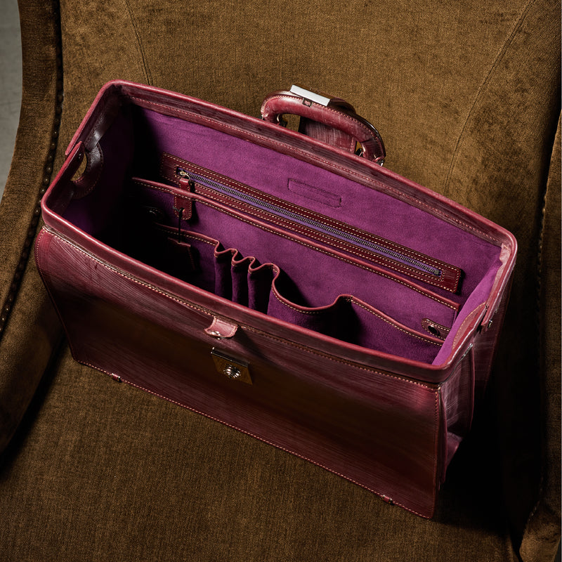 重厚なオークバークレザーが、クラシカルな鞄に圧倒的な存在感を与えます。