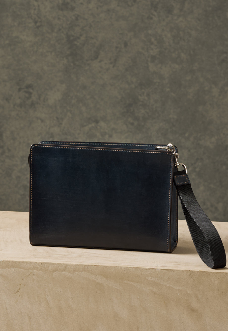 持ち手はハードな作りになっており、ダレスバッグのフォルムを崩しません。