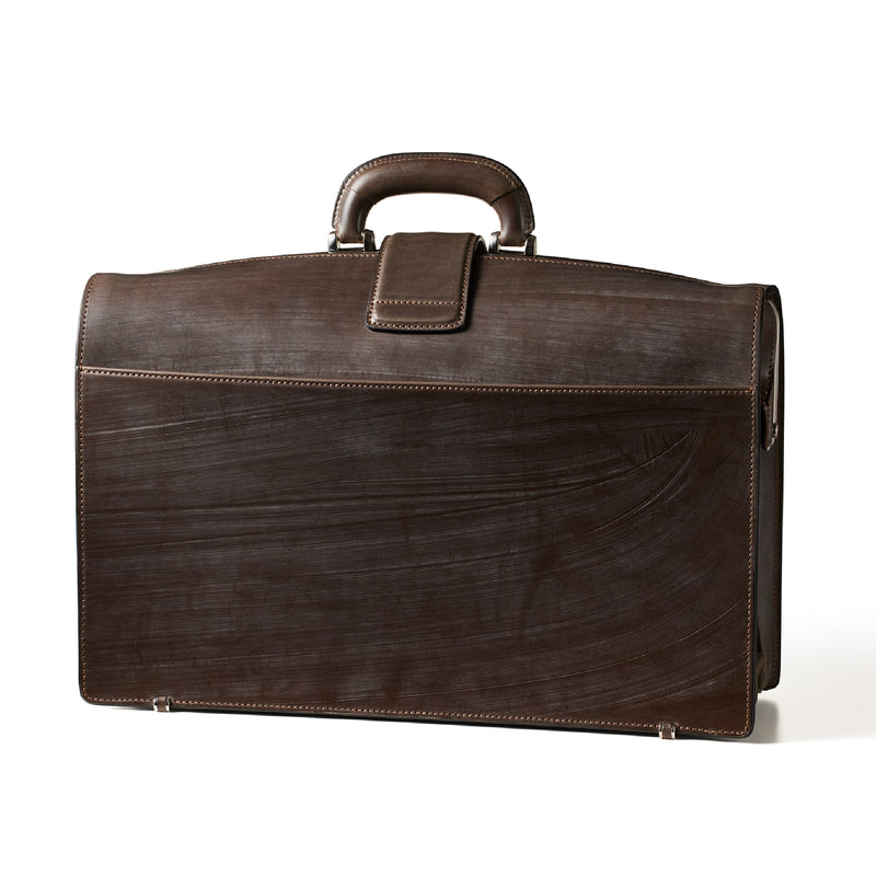 紀元前の製法をそのまま再現したオークバークレザーを使用したシリーズ。ヴィンテージ感溢れる表情は、まさに紀元前の皮革そのものです。しなやかな弾力性を持ち、高い耐久性もあります。新品時から熟成されたエイジングを感じさせる濃厚な風合いが魅力です。高い技術力で仕立て上げた最高峰のダレスバッグは、見事なまでの設計により作られ、美しい曲線を描きます。| 外寸 | 縦31.5cm×横45cm×底厚み15.5cm (フリーポケット)縦22.5cm×横44cm |
