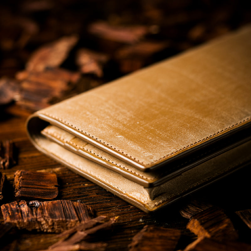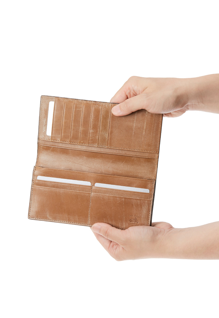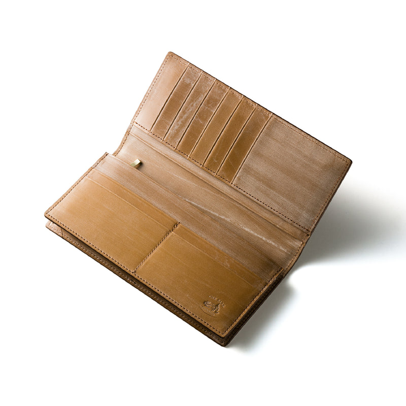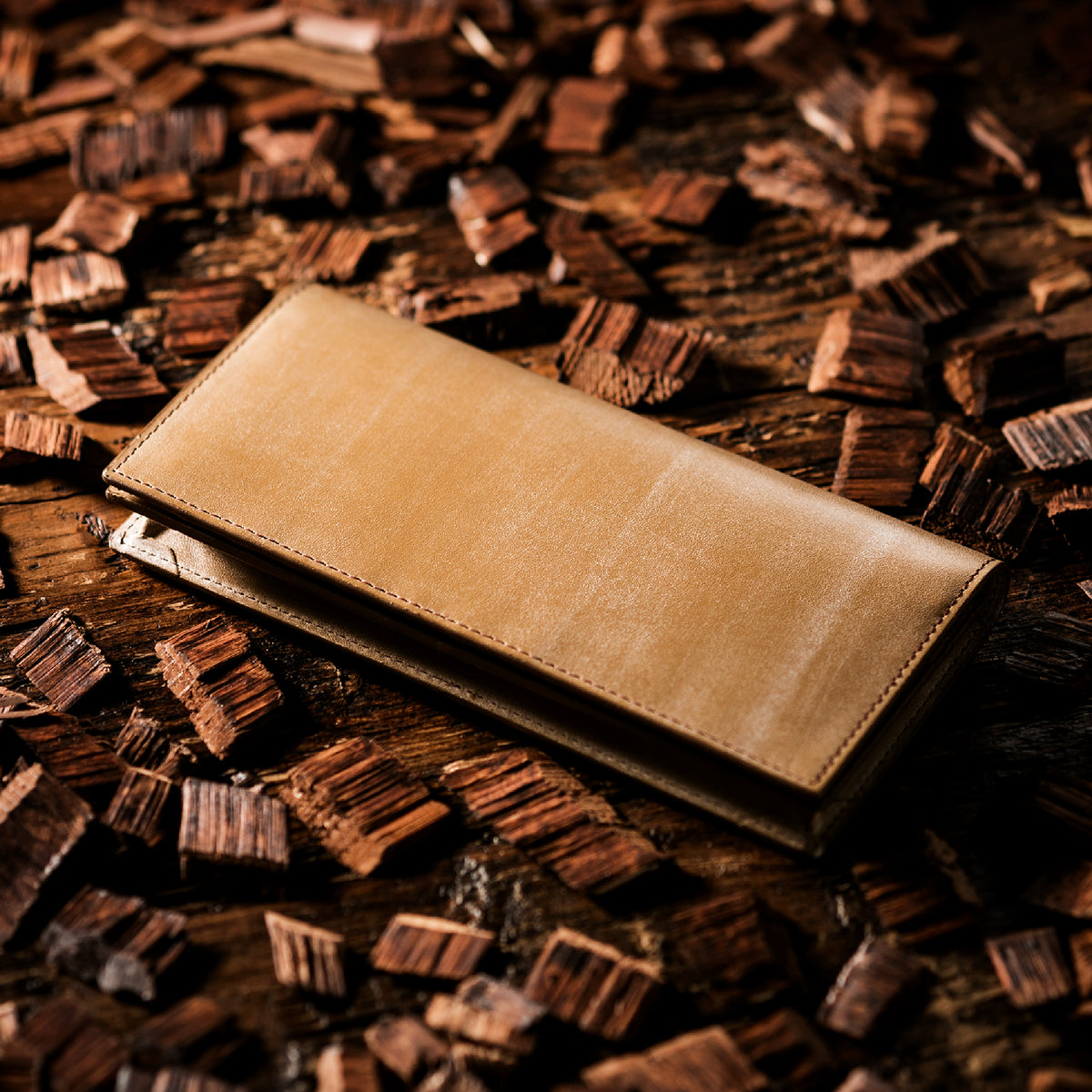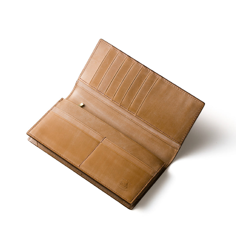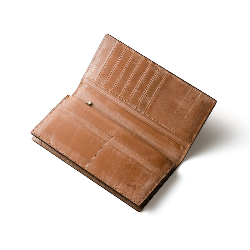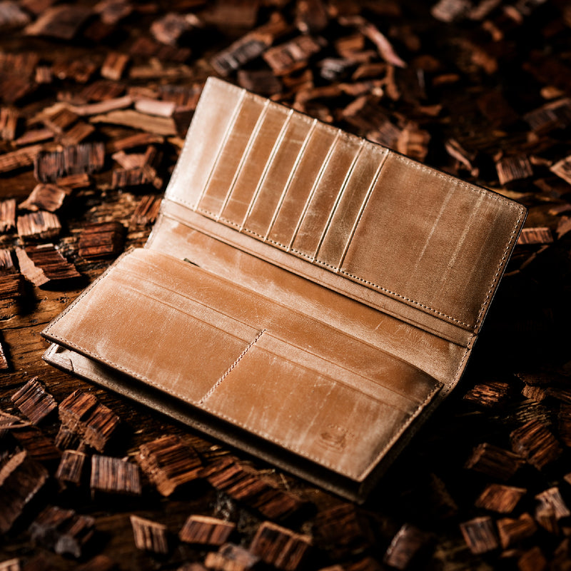 紀元前の製法をそのまま再現したオークバークレザーを使用したシリーズ。ヴィンテージ感溢れる表情は、まさに紀元前の皮革そのもの。しなやかな弾力性を持ち、高い耐久性も高い。新品時から熟成されたエイジングを感じさせる濃厚な風合いが魅力です。クラシカル長財布は、財布を開けばすぐにカードやキャッシュにアクセスすることができるスマートさが魅力です。日本の伝統的な製法の長財布です。| 外寸 | 縦9.5cm×横19.3cm×厚さ2.5cm |