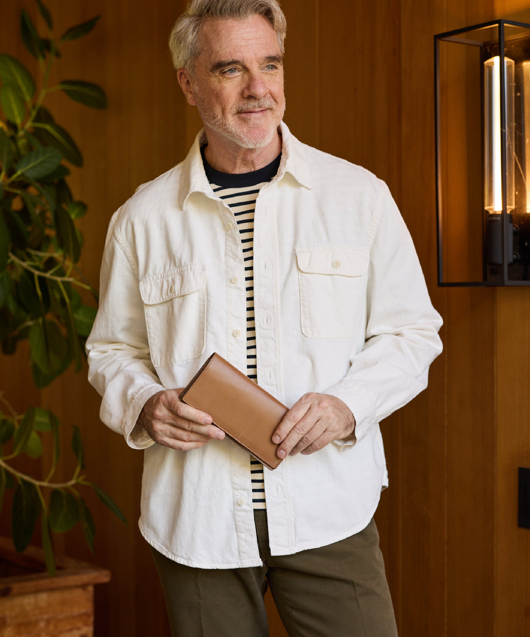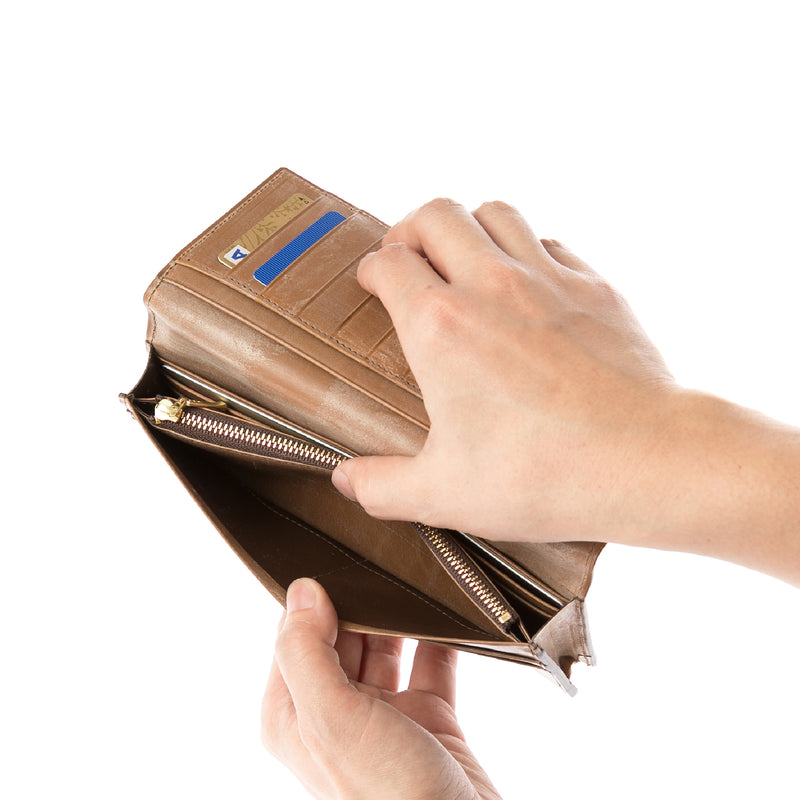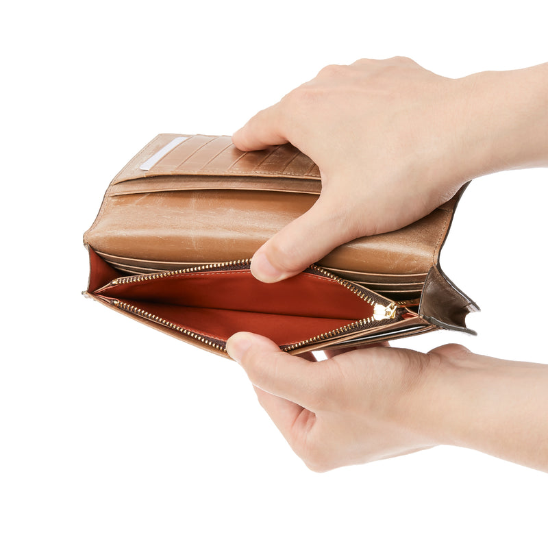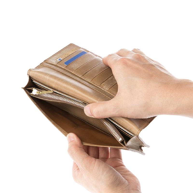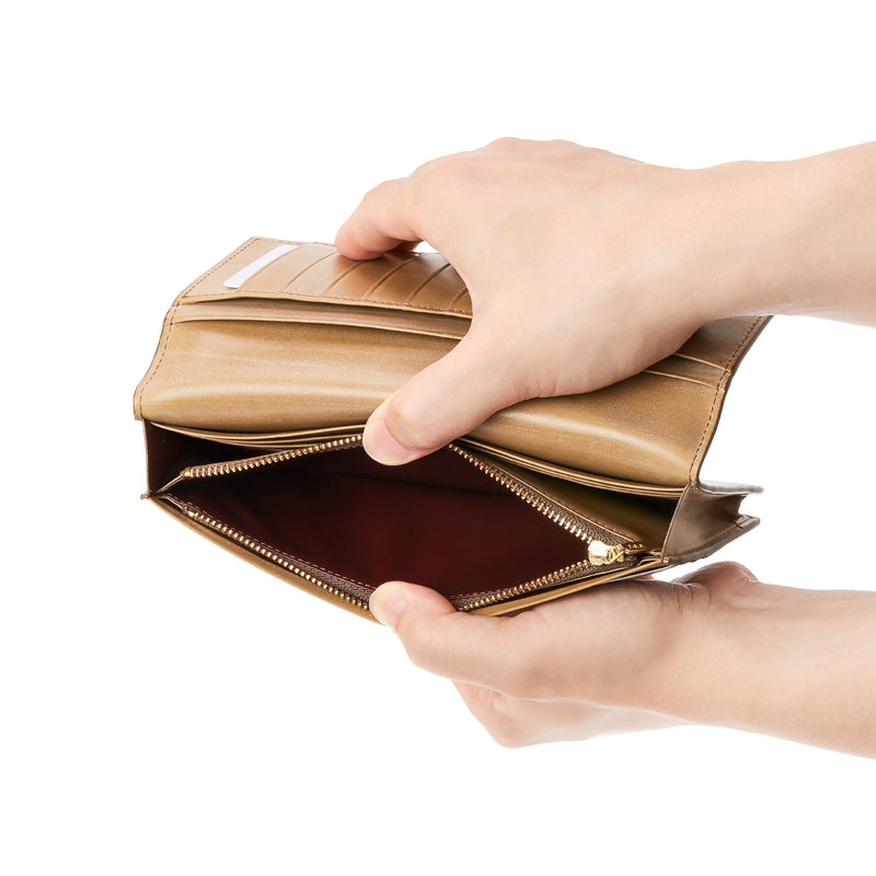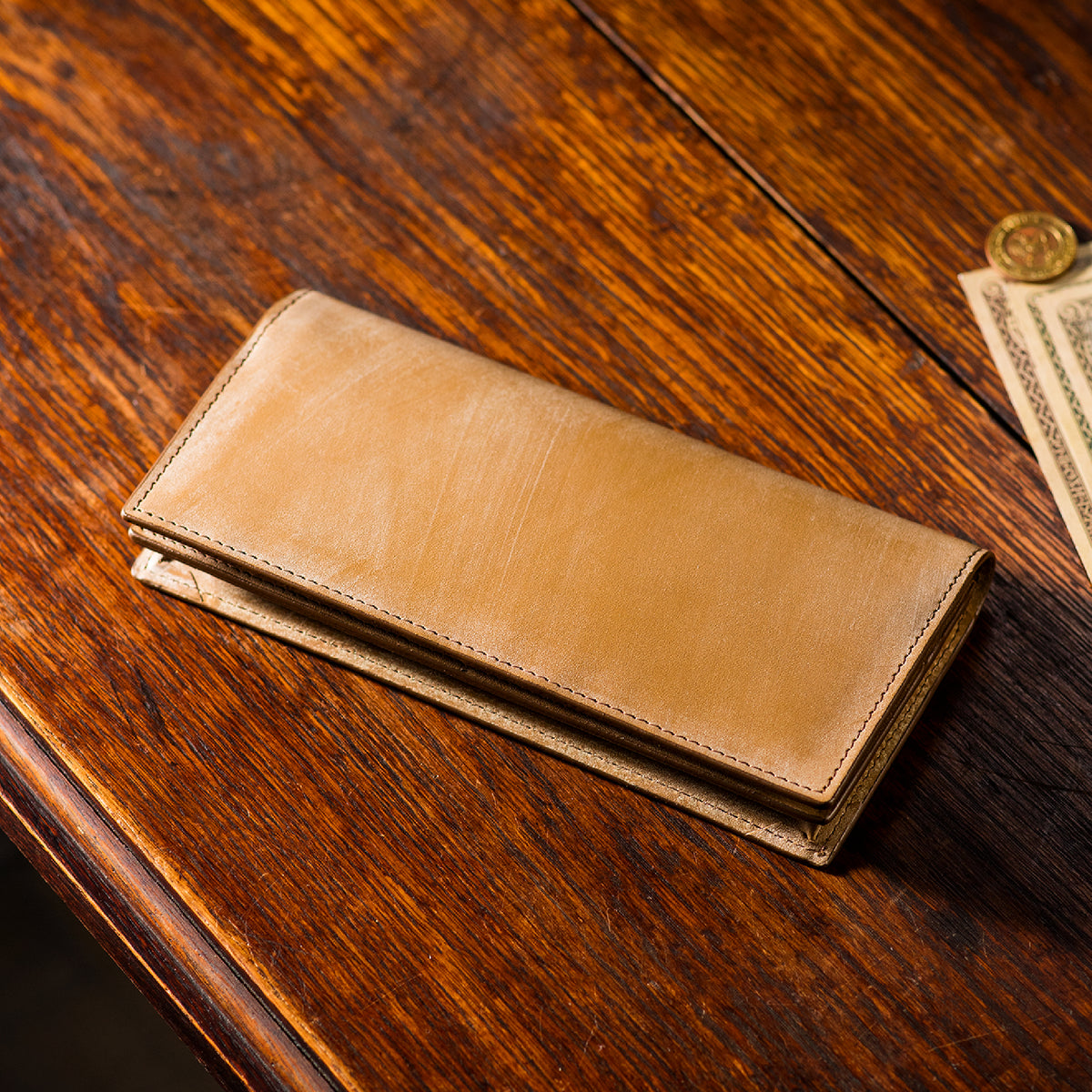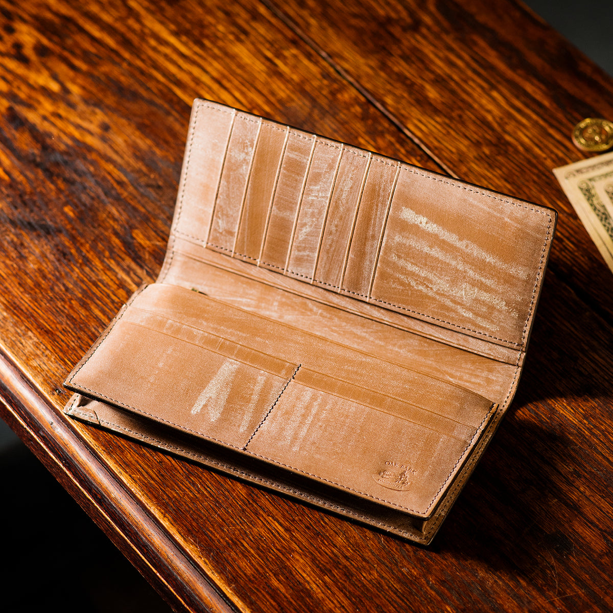 紀元前の製法をそのまま再現したオークバークレザーを使用したシリーズ。ヴィンテージ感溢れる表情は、まさに紀元前の皮革そのもの。しなやかな弾力性を持ち、高い耐久性も高い。新品時から熟成されたエイジングを感じさせる濃厚な風合いが魅力です。クラシカル長財布は、財布を開けばすぐにカードやキャッシュにアクセスすることができるスマートさが魅力です。日本の伝統的な製法の長財布です。| 外寸 | 縦9.5cm×横19.3cm×厚さ2.5cm |