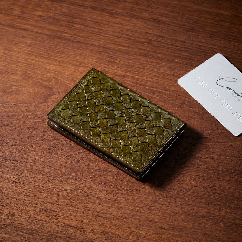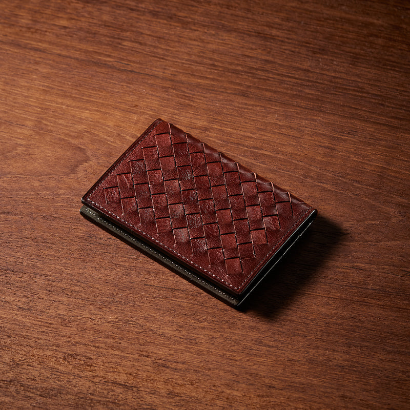 革好きを魅了するイタリアンレザーであるマットーネを編み込み、内装にはシックで珍しいベルギー産のアマンデルレザーを採用した、革も楽しみながらお洒落に魅せてくれるコレクションです。革で作られたスタイリッシュなパスケースです。電子マネーやクレジットカードを収納でき、キャッシュカードの管理にも最適です。| 外寸 | 縦7.4cm×横10.8cm×厚み1.1cm |