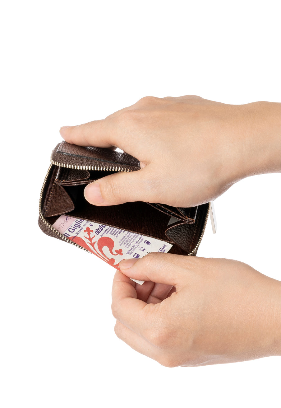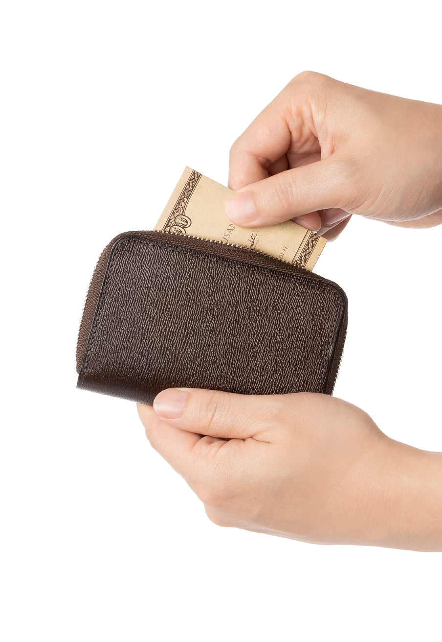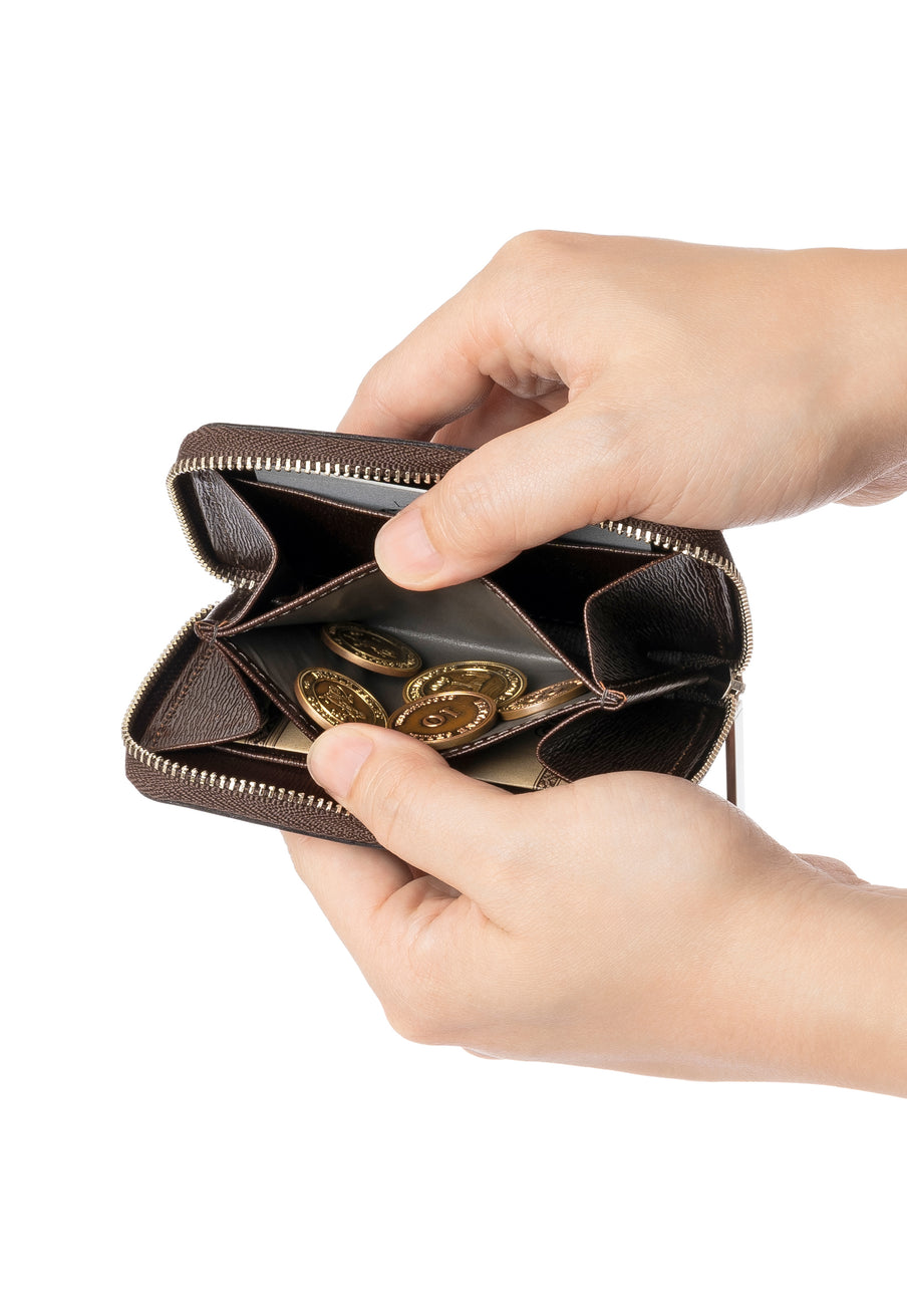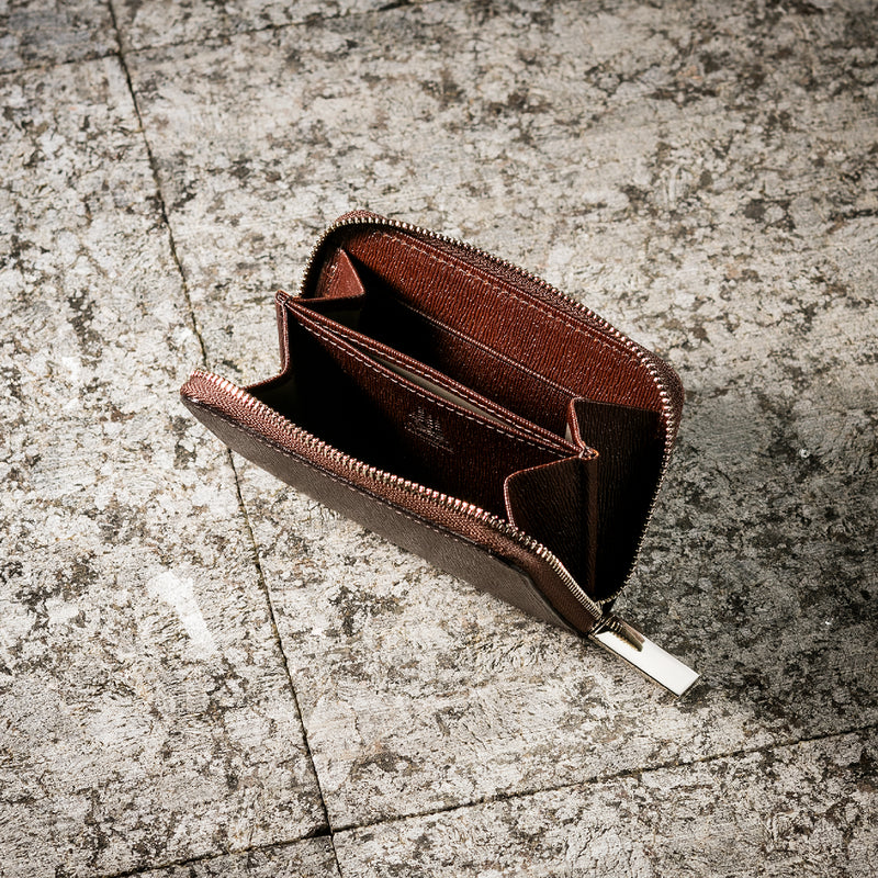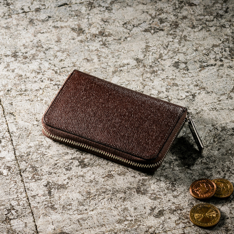 コンパクトながらラウンド長財布と同じ製法で作り込まれています。重厚感があり、クラシカルなデザインです。
