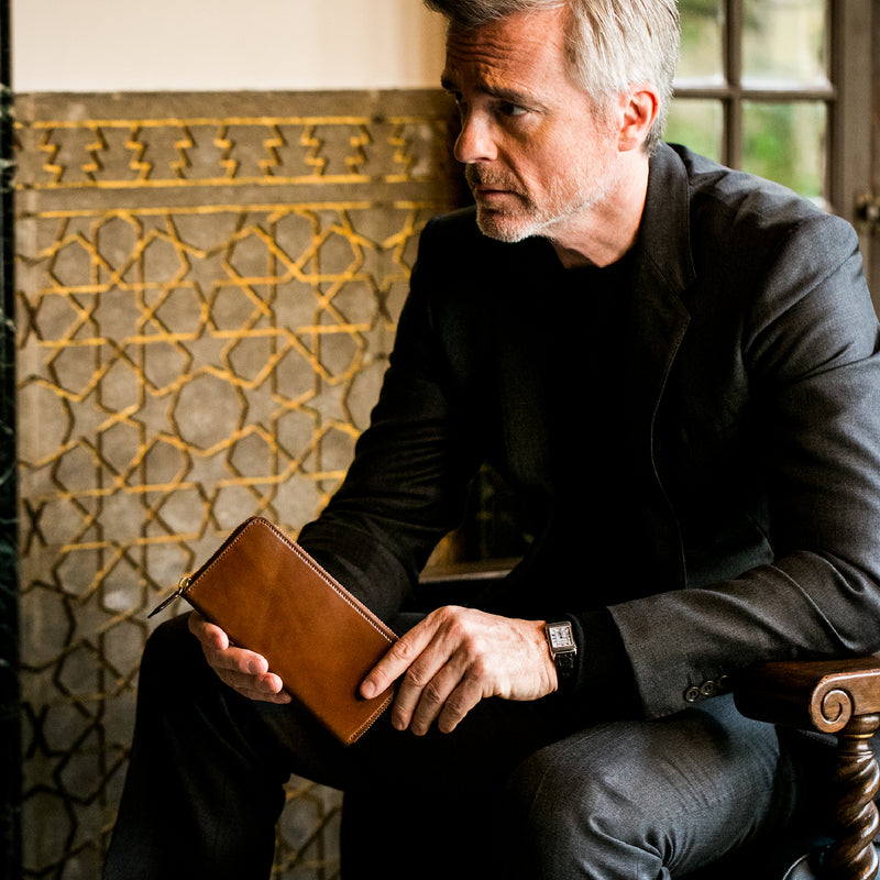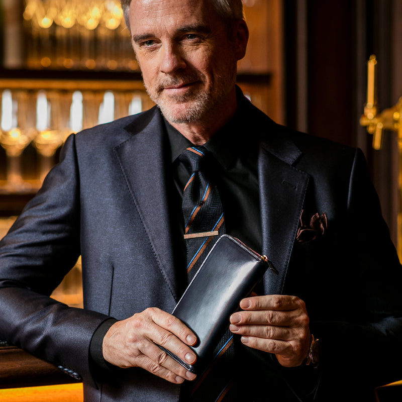手に持っても様になる重厚なフォルムがこのラウンドジップ長財布の人気の秘訣です。手に持って歩いてもお洒落、鞄に入れても格好よく手に馴染む革の質感もお洒落です。