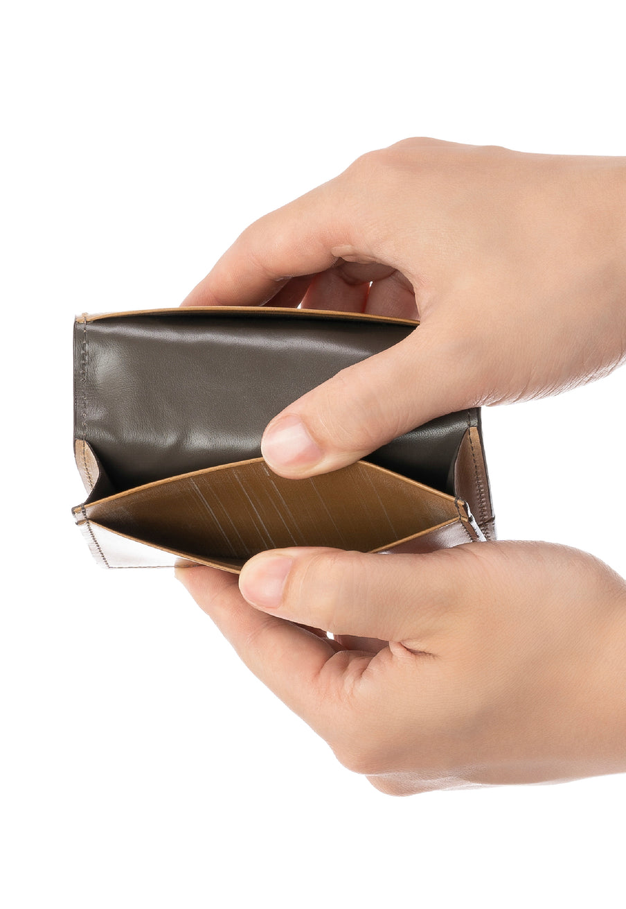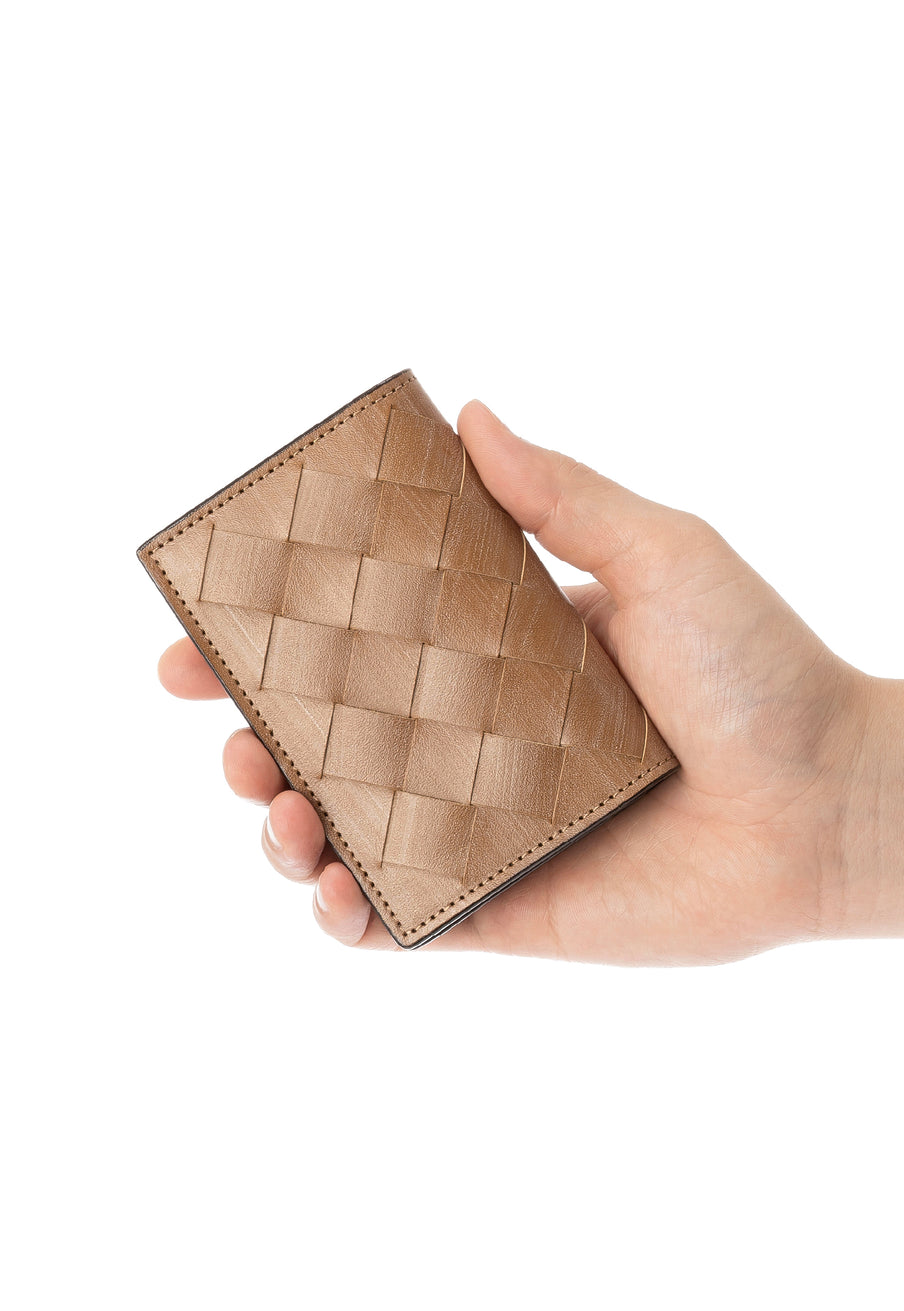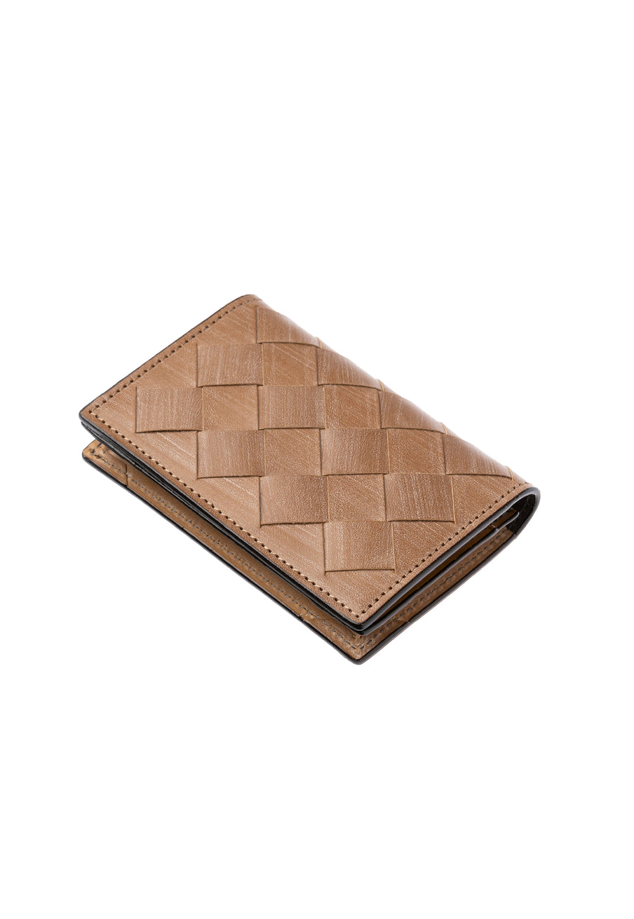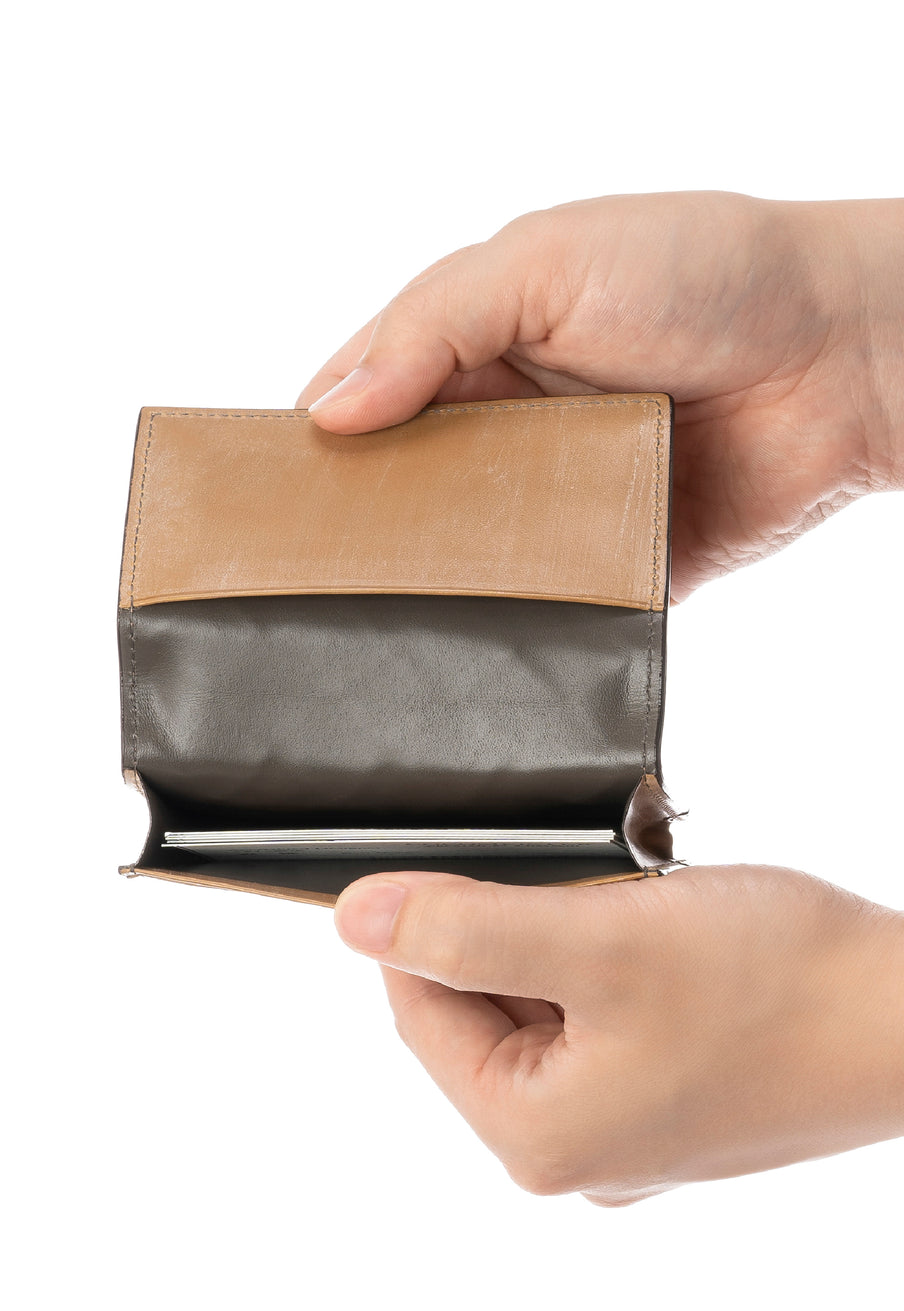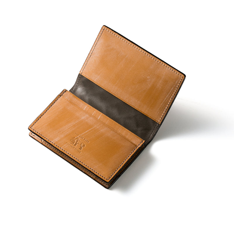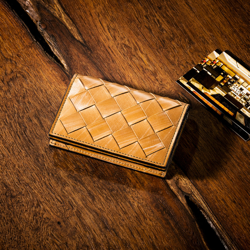 世界の海図をイメージしたオークバークレザーのイントレチャートです。日本の伝統工芸をベースとした技を使い、極太編み込みにデザイン、経年変化のグラデーションを楽しむことができます。クラシカルなデザインの名刺入れです。革の風合いを存分に楽しめる様なデザインになっていますので、ビジネスシーンにピッタリです。| 外寸 | 縦7.5cm×横11.1cm×厚み2.4cm |