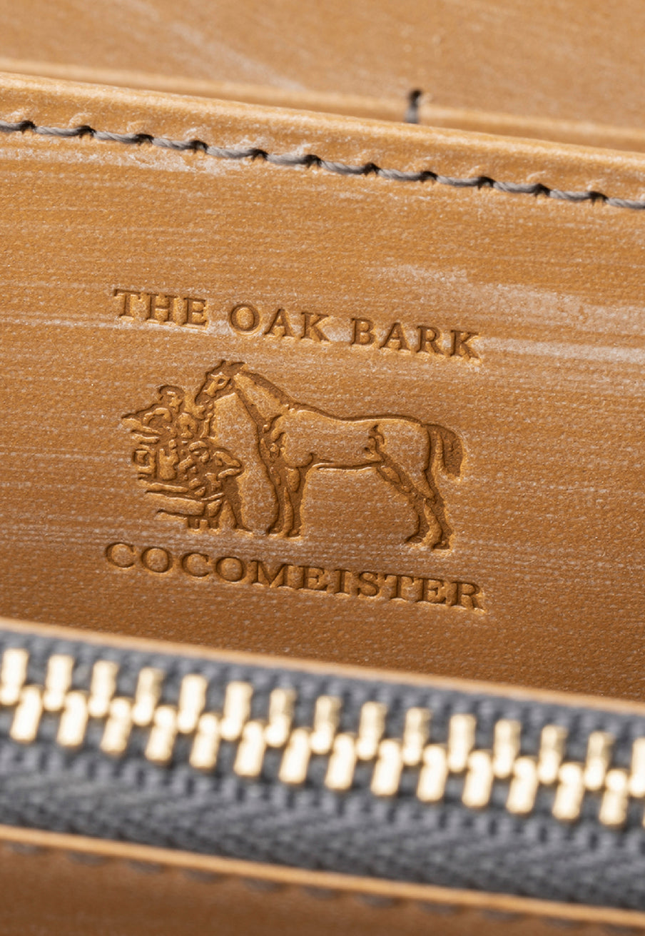 365日と1日をかけて生まれる英国産オークバークを、日本の熟練職人が丁寧に編み込んだ特別な仕立てです。