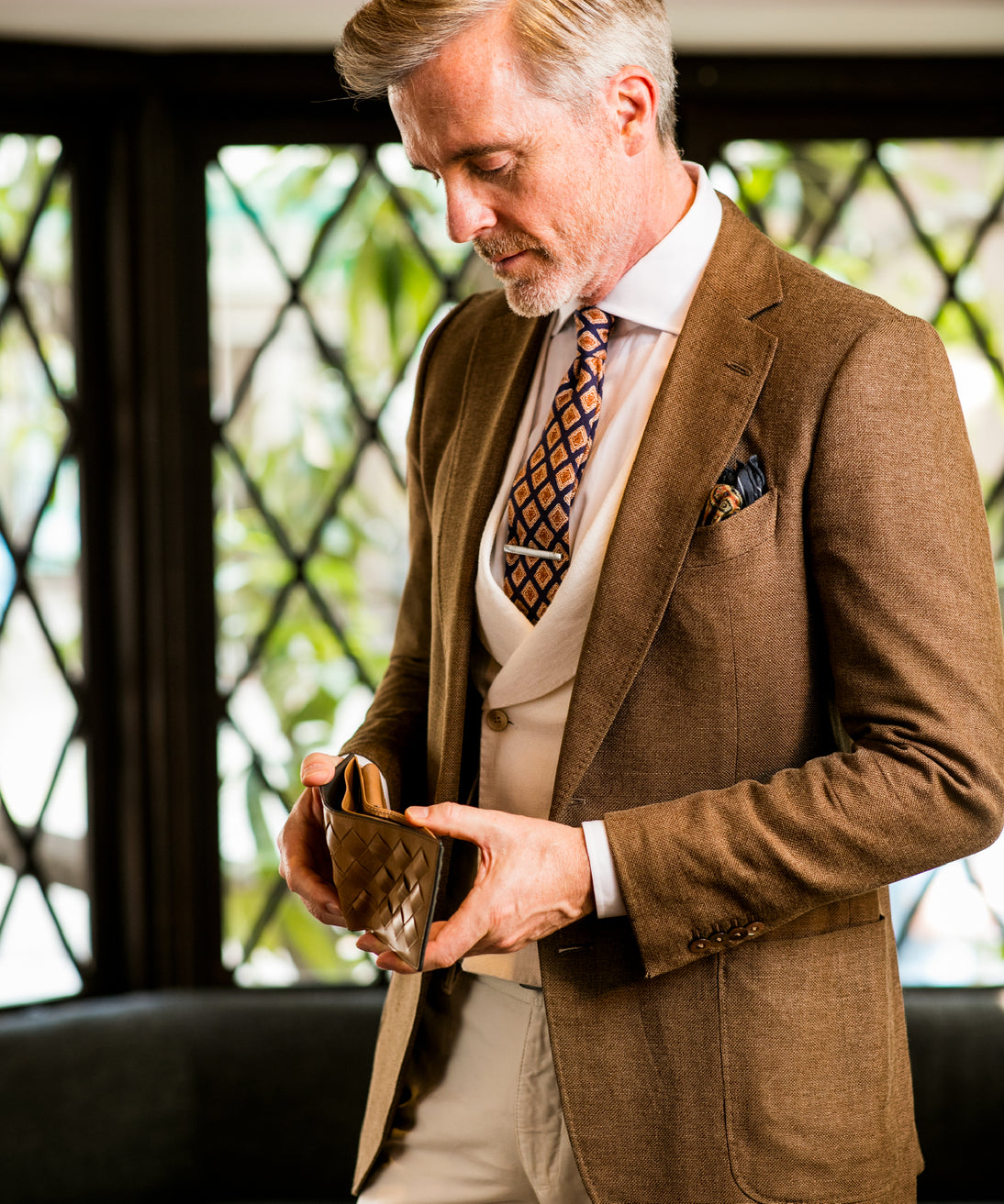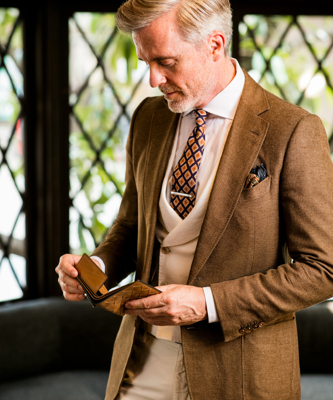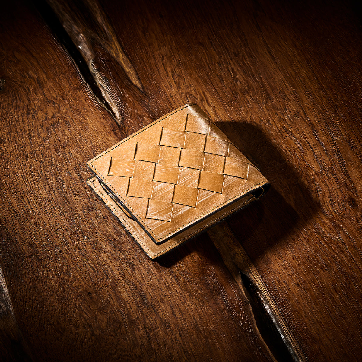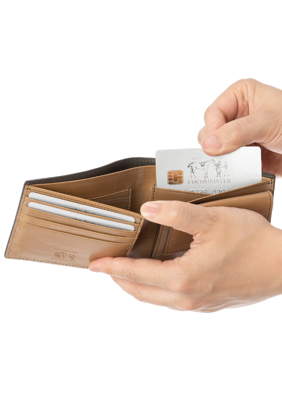 世界の海図をイメージしたオークバークレザーのイントレチャートです。日本の伝統工芸をベースとした技を使い、極太編み込みにデザイン、経年変化のグラデーションを楽しむことができます。2つ折り財布はコンパクトで使い勝手が良いバランスの取れた財布です。お札、小銭そしてカードを収納して、アクティブに動きやすい財布です。| 外寸 | 縦9.3cm×横10.8cm×厚み2.8cm |