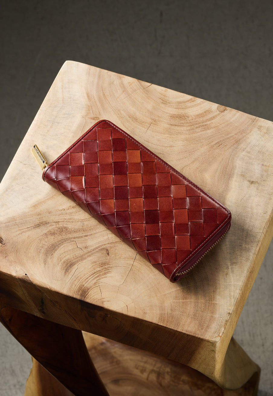 365日と1日をかけて生まれる英国産オークバークを、日本の熟練職人が丁寧に編み込んだ特別な仕立てです。