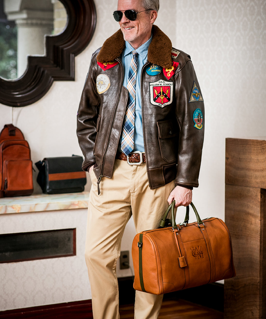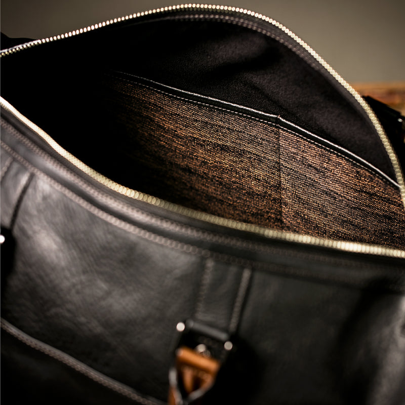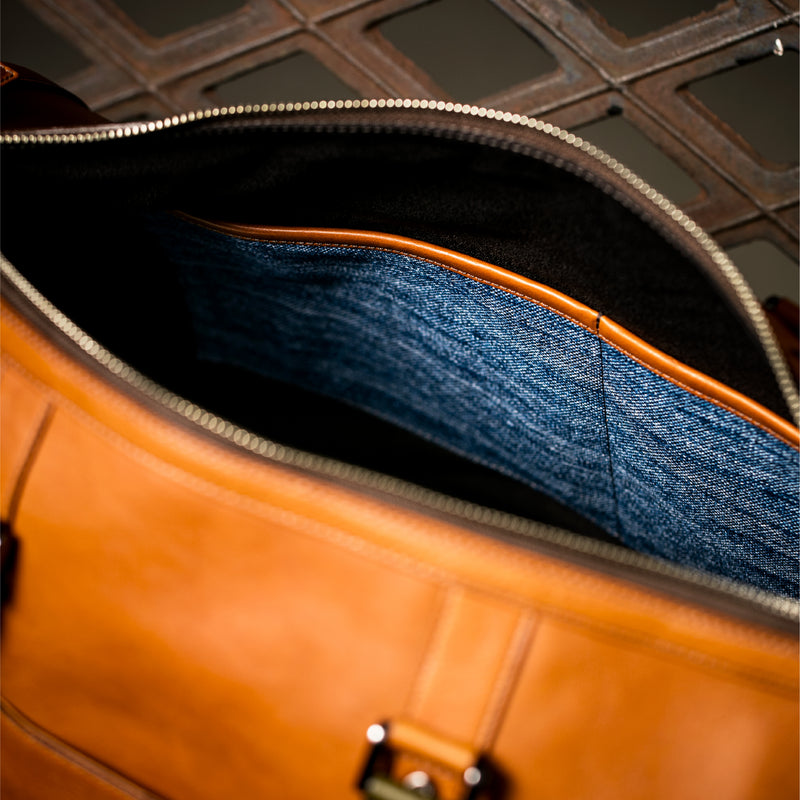 出張での必要な物は大体納めることが出来る。ゴルフでの使用も、レザーならではの格好良さを味わえる。内装もシックに決まる。