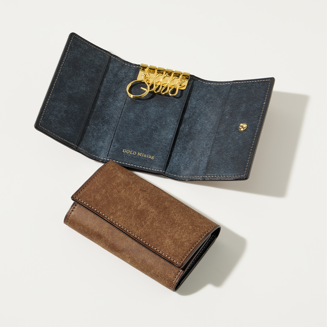 表面の起毛加工が特徴の最高級『プエブロ』レザーのエイジングを楽しむ、クラシカルなキーケース。