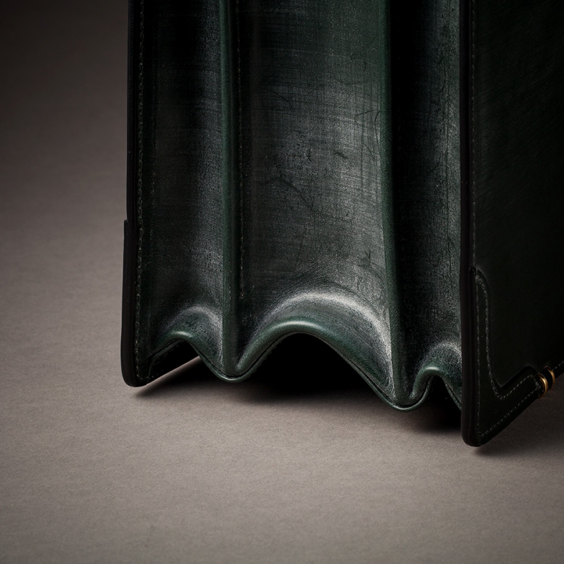 Detail 03丁寧に折り込まれ、ダレスバッグ特有の形を形成しています。ハードレザーを丁寧に、そして歪みなく仕立てる技術は最高峰。