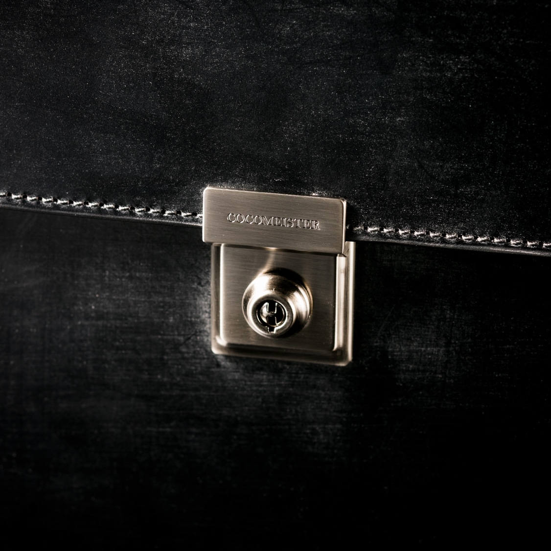 Detail 01金具式の錠前は天然皮革と良く合う、鍵は鞄の内部に装備されており、鍵をかけて荷物を預けることも可能である。