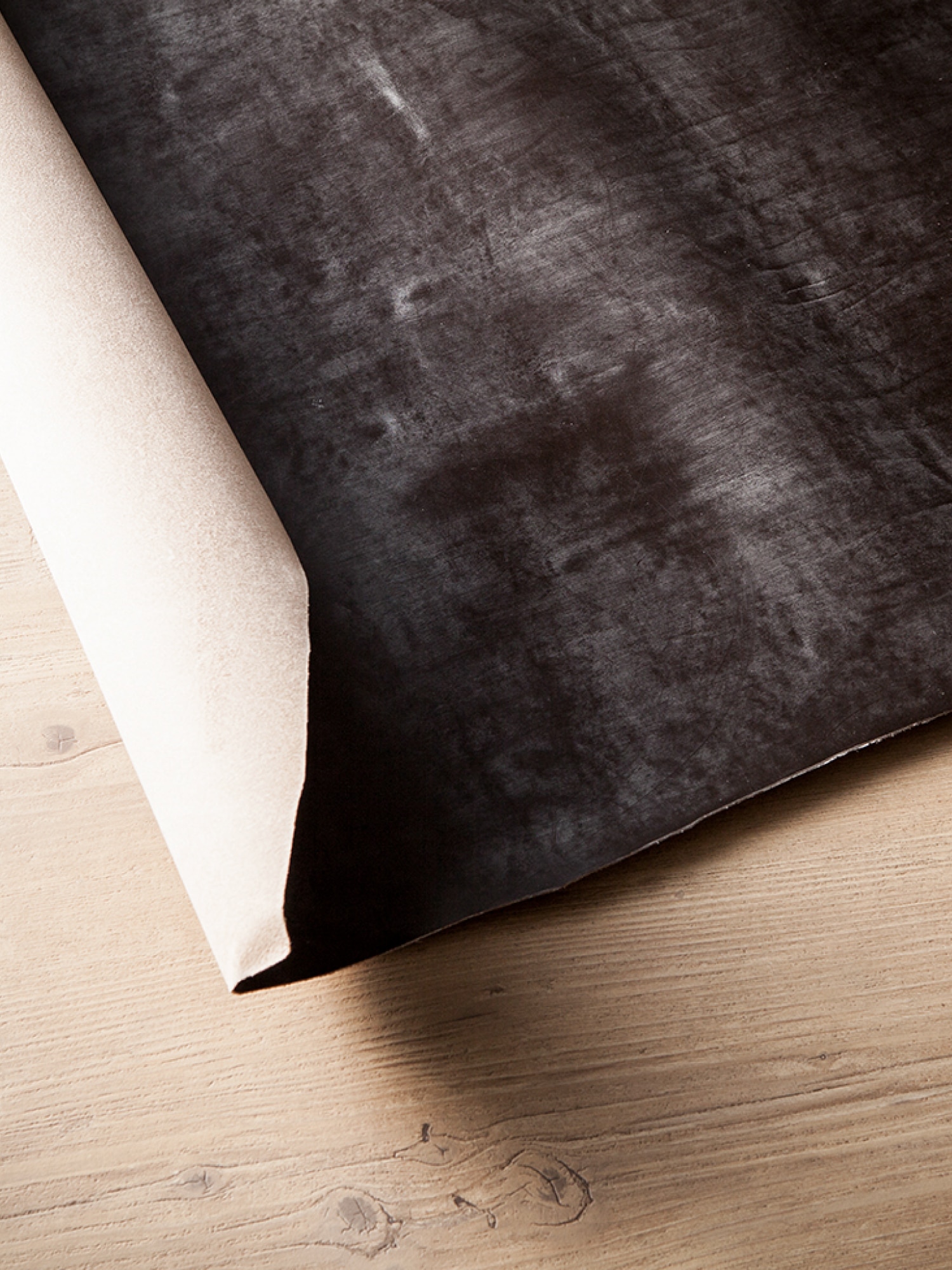 重厚感溢れる、漆黒のブラックカラー。ロウが浮き出たイメージは、真夜中の霧の様なミステリアスな雰囲気を放っている。経年変化することで、艶が増し、漆の様な深い光沢と風合いに変化していくのを楽しみたい。黒好きにはたまらない、深い黒みと光沢で引き締める。