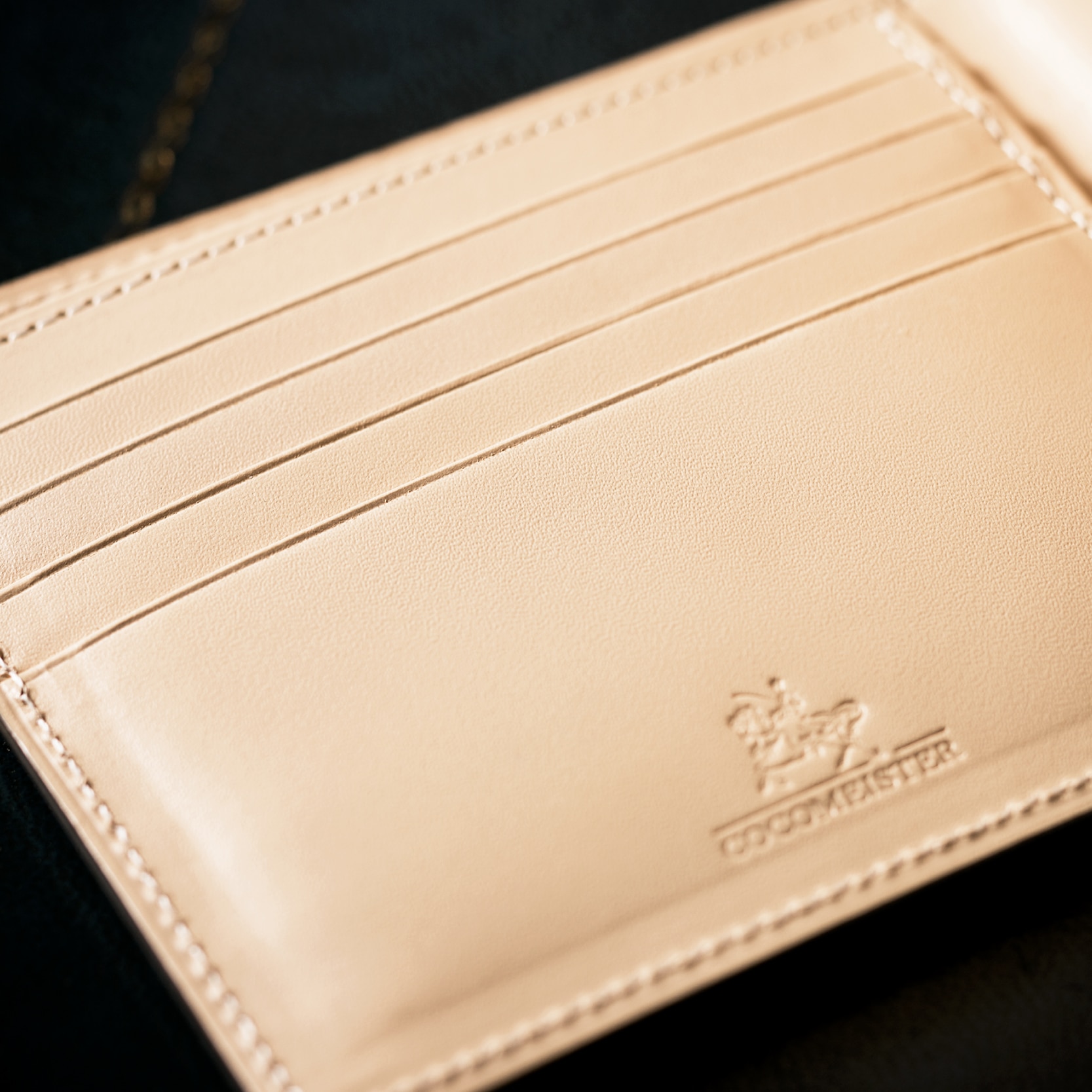ココマイスターでは、ヌメ革の中でも最高級輸入皮革の欧州産ヌメ革を使用しています。下地が美しいため、仕上がりも見事で、素晴らしい肌触りと風合いを楽しめます。