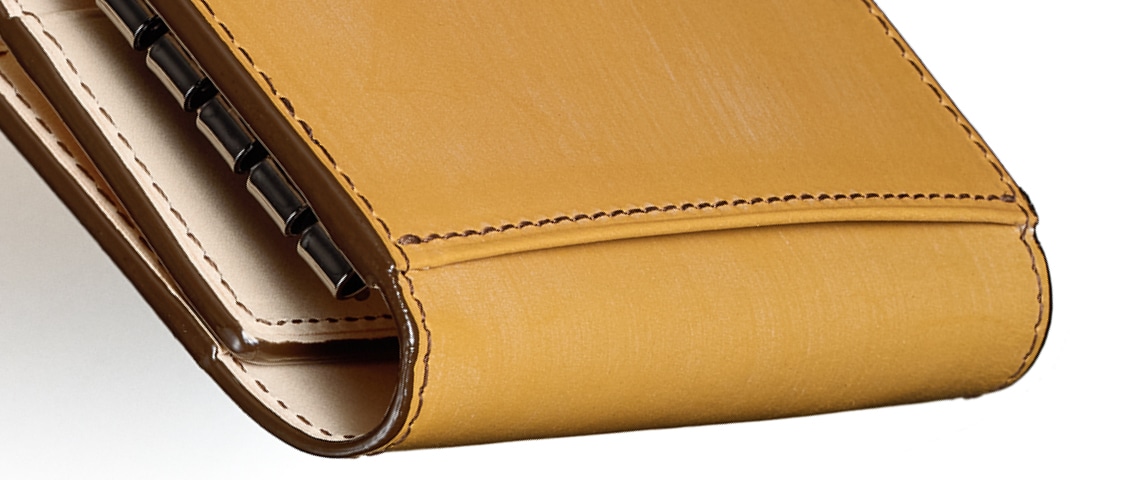 堅牢な風合いが美しい光沢を生み出します、天然皮革らしい質感を楽しめるのもポイント。高級馬具用か更に一手間も二手間も加えた、こだわりの仕上げです。ロウの隙間から垣間見えるブライドルレザーの洗練された表情から、その違いを感じ取ることが出来ます。