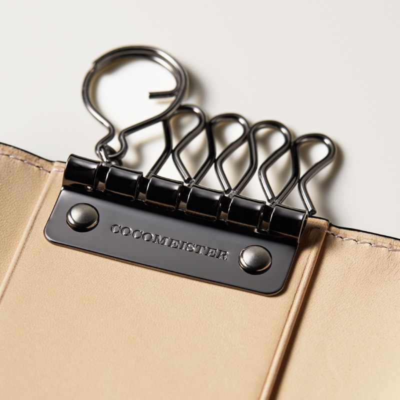 Detail 02一番左側に大リング、右側に4つの鍵接続スペースがあります。金具はシックに光沢のあるブラック色を採用しています。