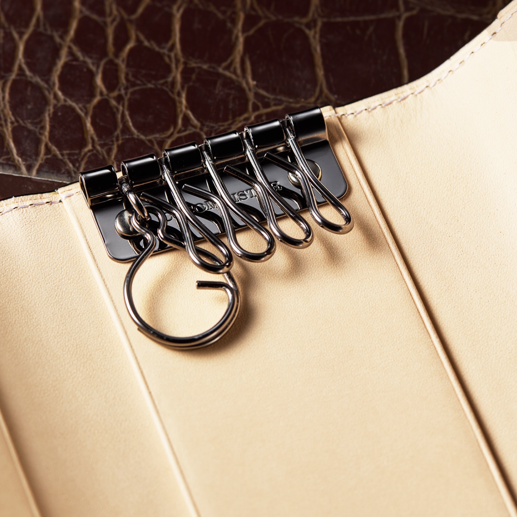 温かみのある天然皮革の中でも一際重厚感が魅力のグランドキーケースです。イギリス仕込みの格好良さが魅せる、圧倒的な洒落感が日常をアップデートする。