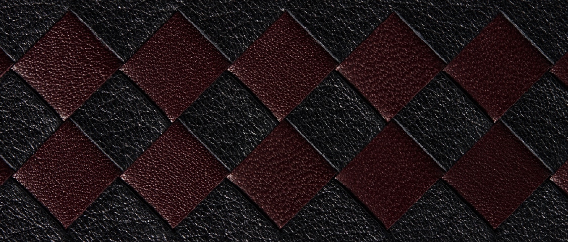 黒に黒の染料を入れたブラックレザーにボルドー色の編み込みでシックでお洒落な仕上がりです。