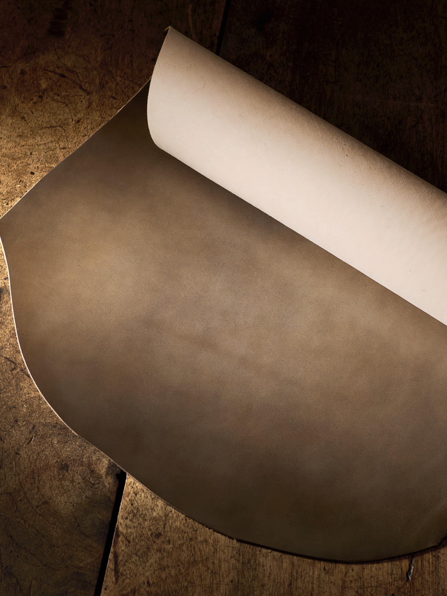 英国タンナー近くにある保護されている区域で伐採したオークを使用し、薬品を一切使わずに革を製造するオークバーク。オークバークは製作日数は、365日と1日かけると言う鉄の掟が英国で生まれました。それは樹木の保護の為と言い伝えられています、かつて英国では、鉄の掟を破りし者は両手首を切り落とされるという、厳しい罰が設けられていました。オーク(樹木)そのものを保護し、品質を保ち続けます。(現在このタンナーは英国政府の管理下)