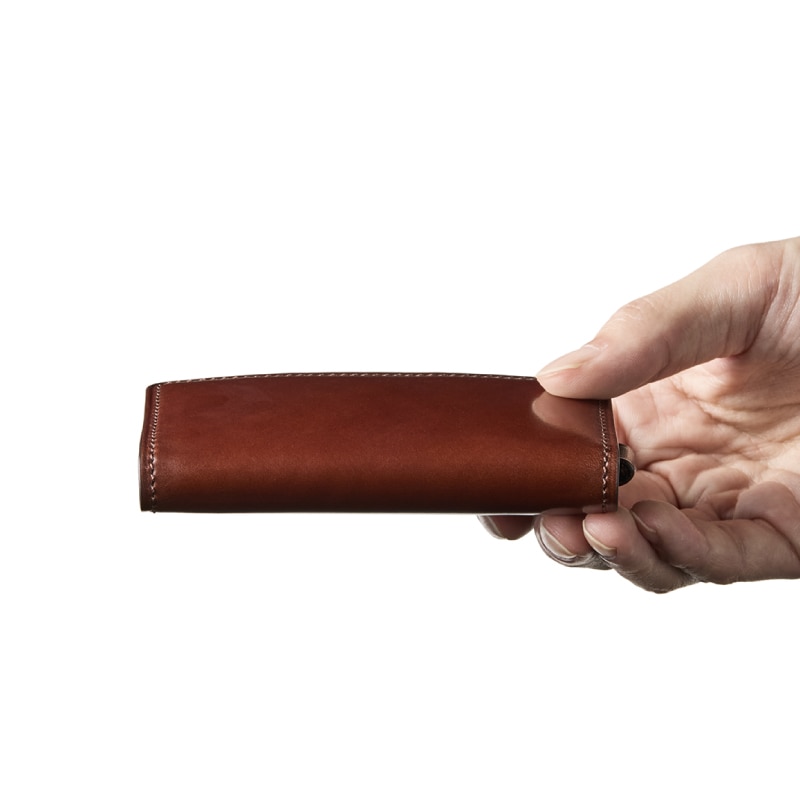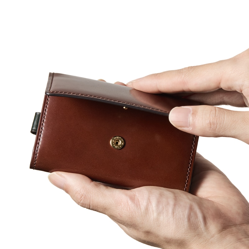 シェルコードバン一筋の職人が製作することで、細部まで美しく仕上がったオイルコードバンの財布小物が作られます。基本の技術力が高いのは勿論、日々の製作の中でその技術は更に研ぎ澄まされています。手に持つ時の感覚や、見た目の美しさにハッキリとした“違い”を感じ取る事が出来ます。