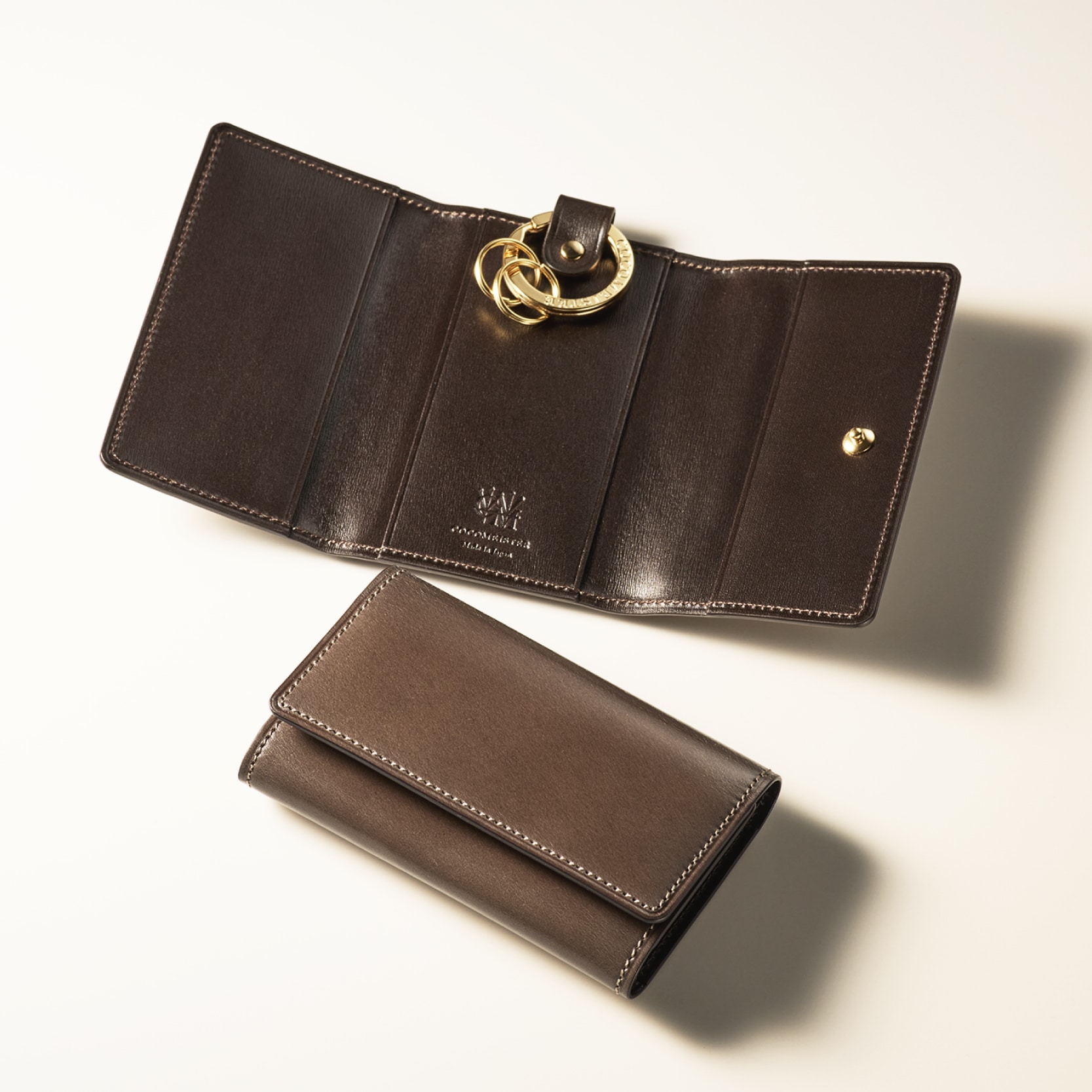 日本製最高級のオイルコードバンを外装に使用し、内装にはフランス産のボックスカーフを使用したコードバンヘリテージ。シェルコードバン一筋の職人が仕立てることで、一層の品格と日本の財布作り文化をご堪能頂けます。ミルバンクはシンプルなキーケースです。大リングと小リング2つを組み合わせたシンプルスタイリッシュなデザインが魅力です。