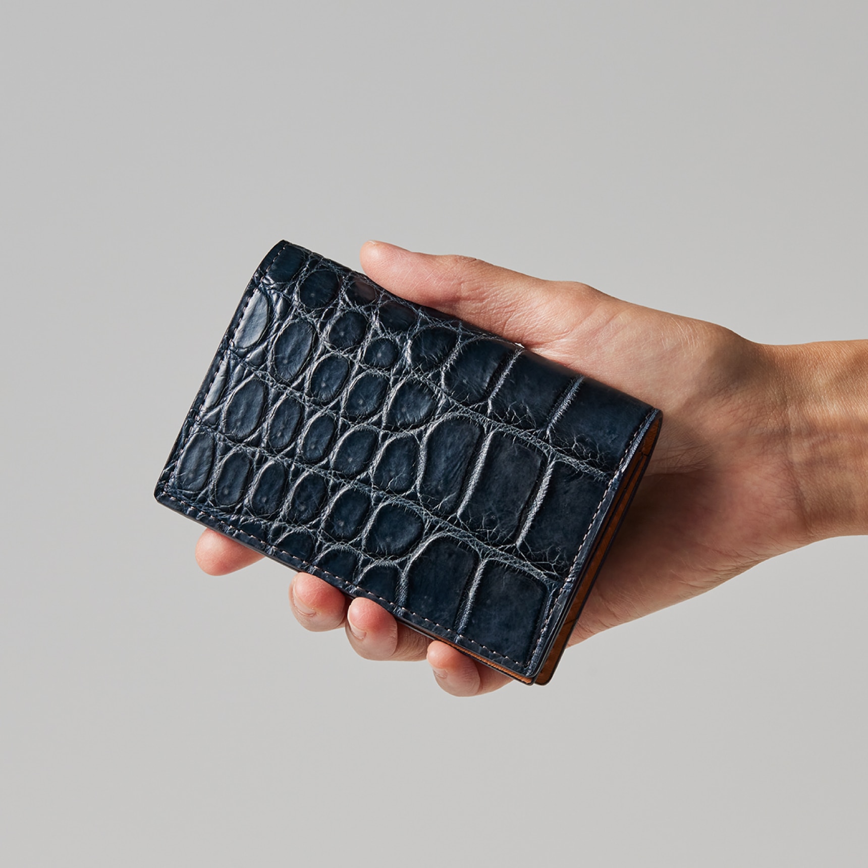 ダイナミックで芸術的な究極クロコダイルコレクション。独自の感性により生まれたフランス産の最高級クロコダイルレザー。現代のライフスタイルに合う様に、日本のクロコダイル熟練工が仕立てます。日本伝統の通しマチと呼ばれる製法で製作したクラシカルタイプの名刺入れです。容量が大きく、入れやすく取り出しやすいのが魅力です。