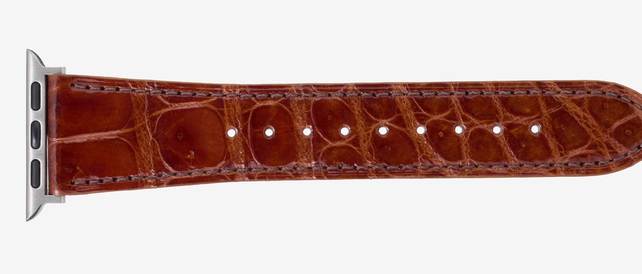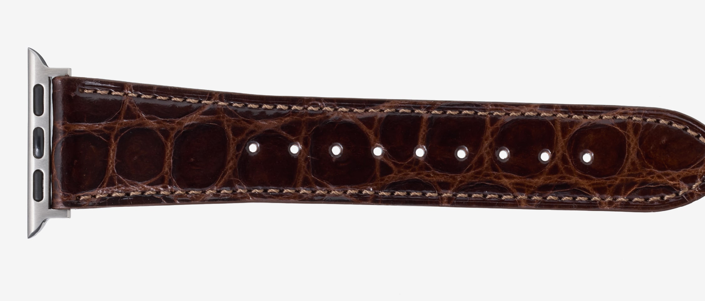どんな服装でも、どんな場所でもお洒落にしてくれるクロコダイルのApple Watchバンド。天然皮革の品質から醸し出す品格は、馴染みが良く主張も上品です。